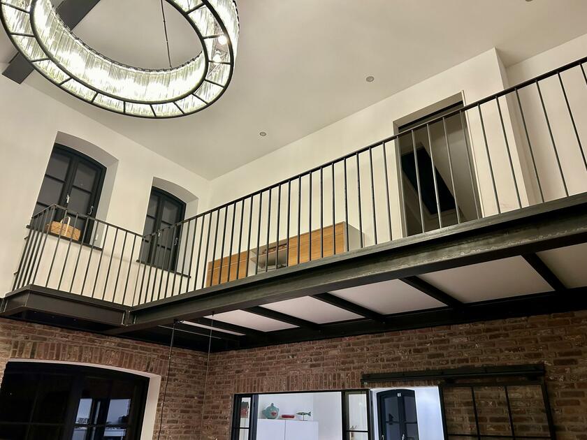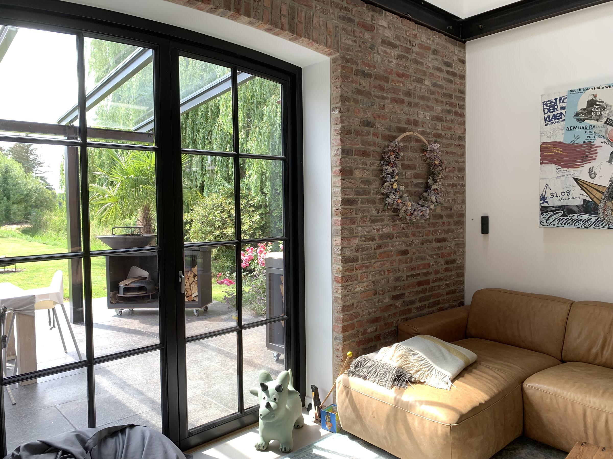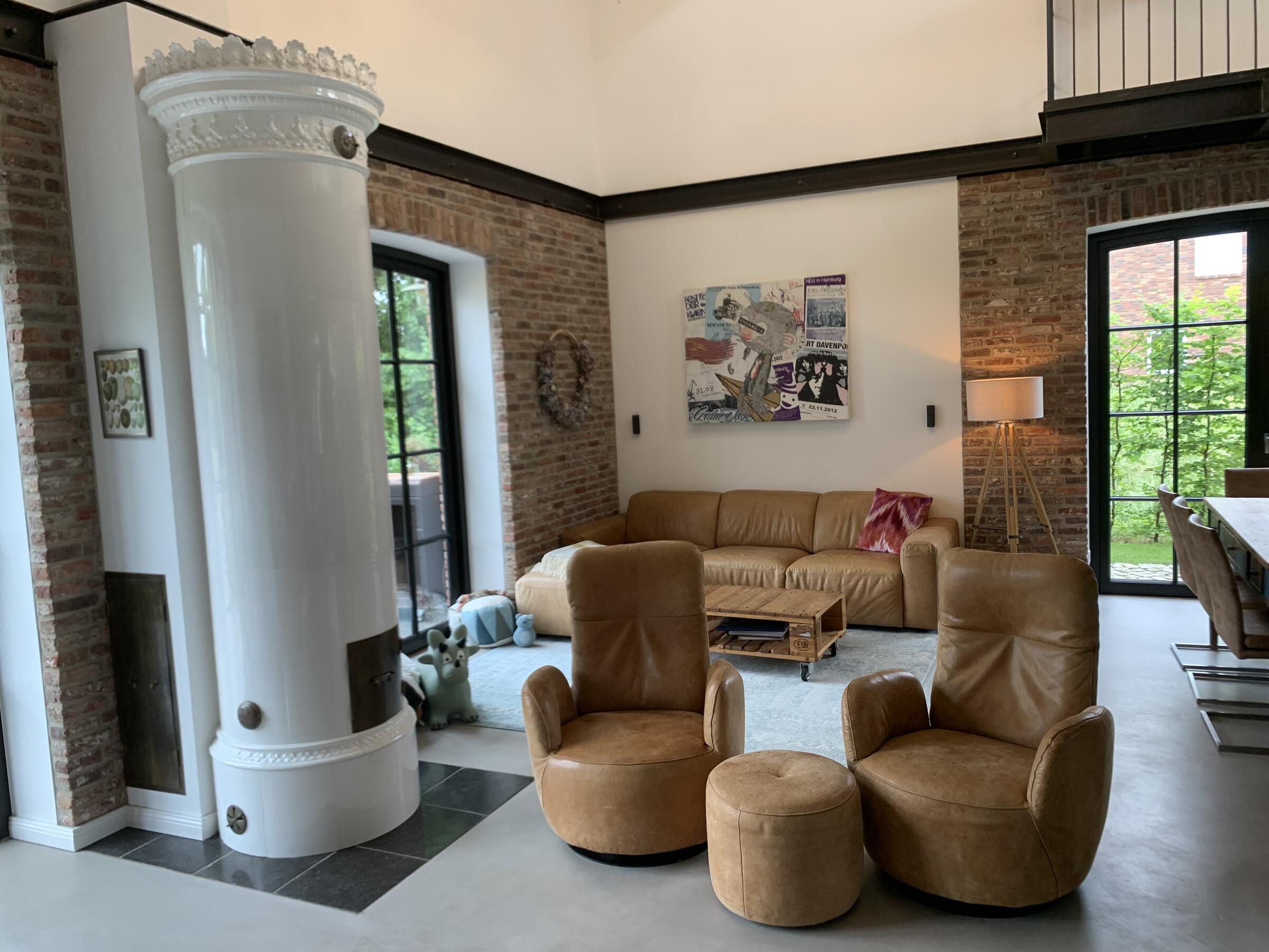 Bei unserem charmanten Neubau trifft ländliche Idylle auf historisches Loftdesign. Das großzügige Architektenhaus wurde im Jahr 2019 in Anlehnung an eine alte Schmiede gebaut. Das Haus kombiniert auf sehr gelungene Art eine traditioneller Bauweise mit modernem Loft-Flair im Inneren des Hauses. Das Haus ist sehr hochwertig ausgestattet. Ein hochwertiger hellgrauer Designboden (Mikrozementputz im Betonlook) dient als Bodenbelag im EG. Der industrielle Look wird ideal durch die Sichtmauerwerkswände im Innenbereich ergänzt. Weiterhin komplettieren aufwendige sichtbare Stahlelemente den Look. Eine offene Küche, die sich mit einem Schiebefaltelement aus Stahlsprossen schließen lässt, fügt sich gut in den Stil ein. Als Highlight des ca. 50 m² großen und 6 m hohen Wohnbereichs, lassen sich der betriebsbereite historische schwedische Kachelofen sowie die Galerie in Stahlbauweise nennen. Unser ca. 1300 m² großes Gartengrundstück grenzt direkt an einen großen Parkplatz.