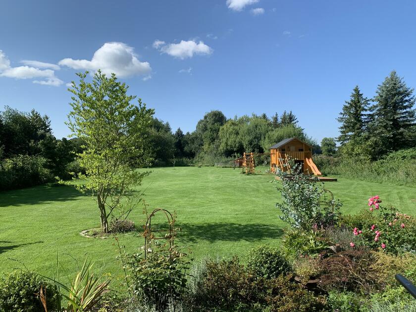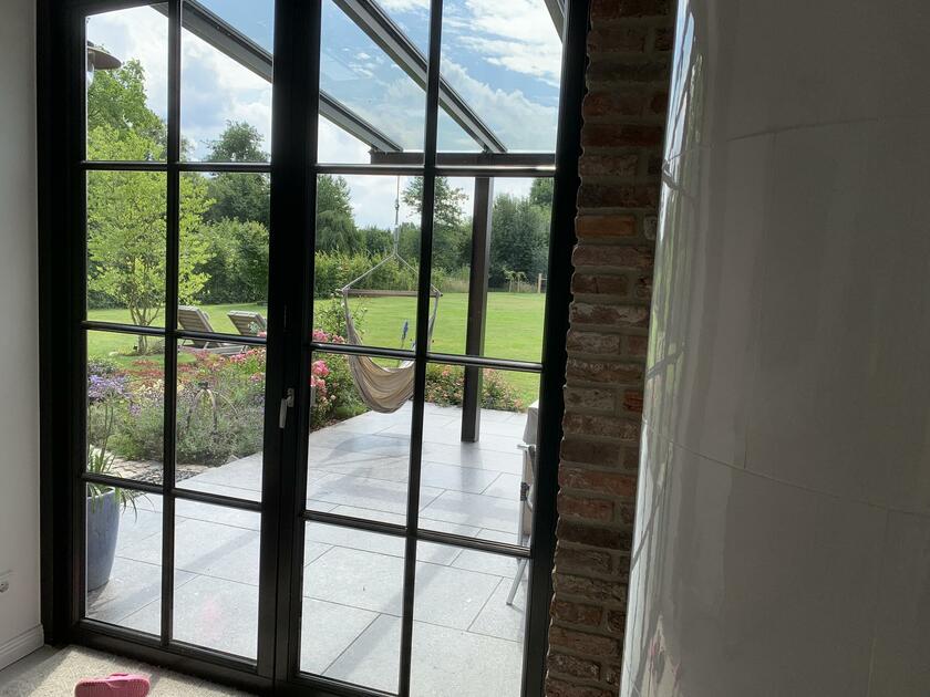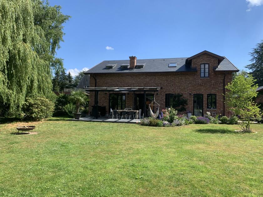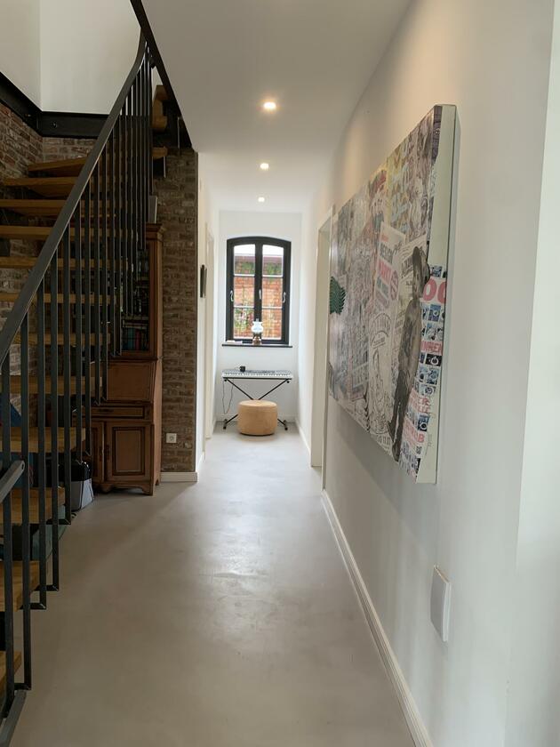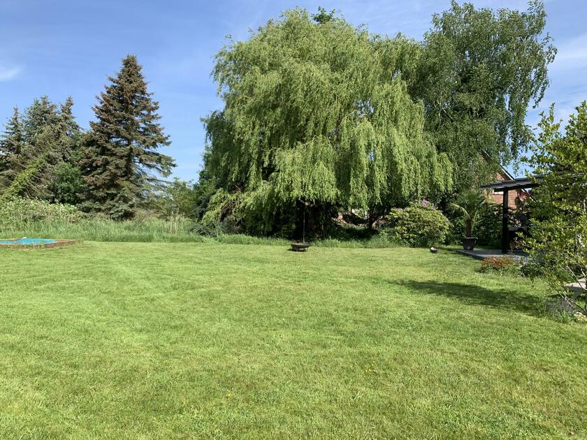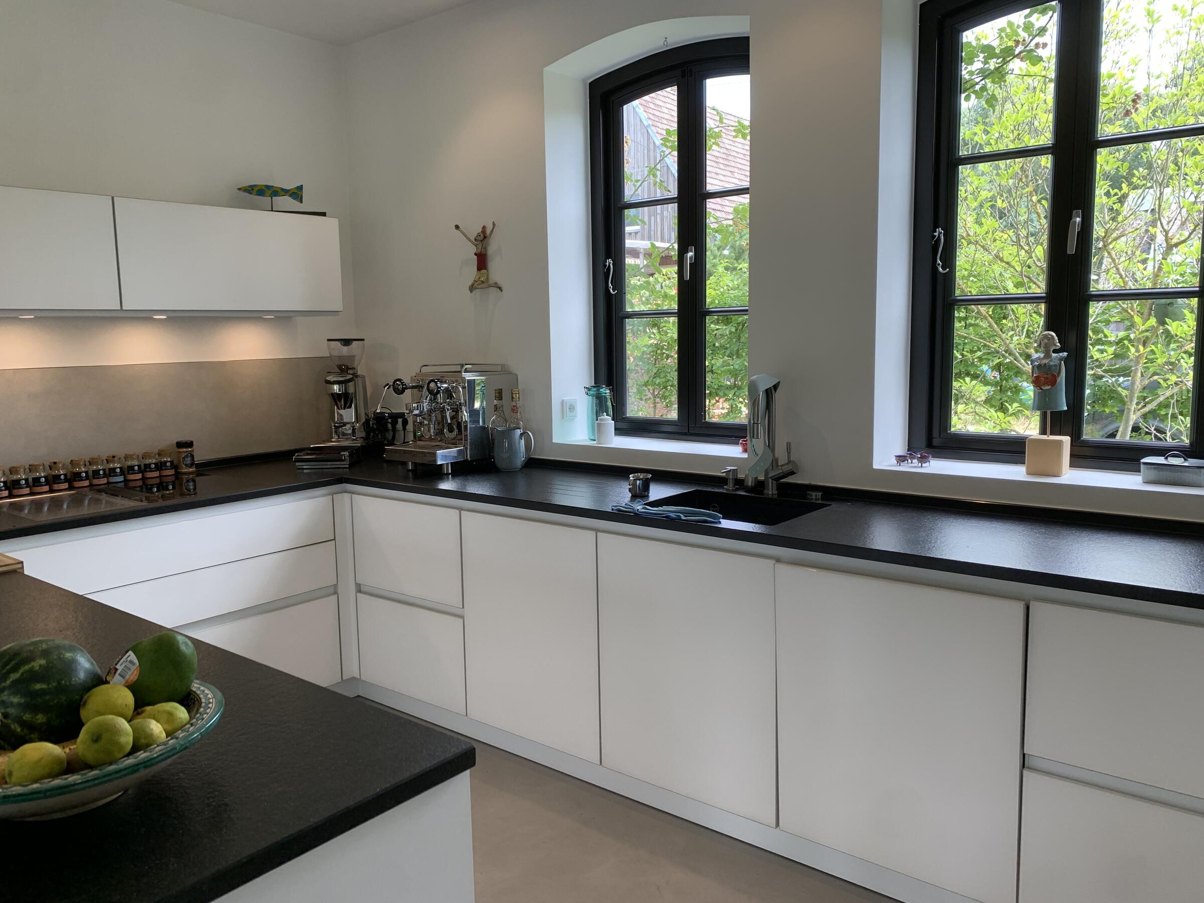 Bei unserem charmanten Neubau trifft ländliche Idylle auf historisches Loftdesign. Das großzügige Architektenhaus wurde im Jahr 2019 in Anlehnung an eine alte Schmiede gebaut. Das Haus kombiniert auf sehr gelungene Art eine traditioneller Bauweise mit modernem Loft-Flair im Inneren des Hauses. Das Haus ist sehr hochwertig ausgestattet. Ein hochwertiger hellgrauer Designboden (Mikrozementputz im Betonlook) dient als Bodenbelag im EG. Der industrielle Look wird ideal durch die Sichtmauerwerkswände im Innenbereich ergänzt. Weiterhin komplettieren aufwendige sichtbare Stahlelemente den Look. Eine offene Küche, die sich mit einem Schiebefaltelement aus Stahlsprossen schließen lässt, fügt sich gut in den Stil ein. Als Highlight des ca. 50 m² großen und 6 m hohen Wohnbereichs, lassen sich der betriebsbereite historische schwedische Kachelofen sowie die Galerie in Stahlbauweise nennen. Unser ca. 1300 m² großes Gartengrundstück grenzt direkt an einen großen Parkplatz.