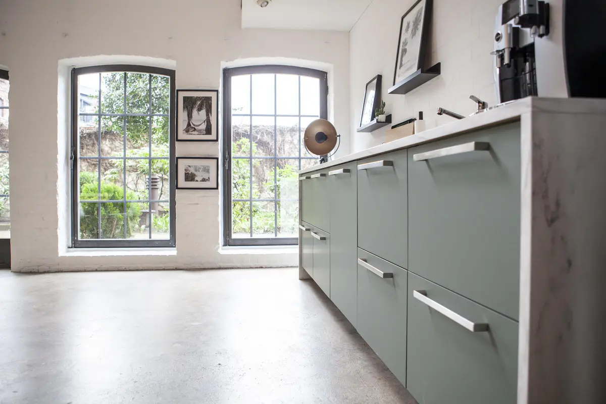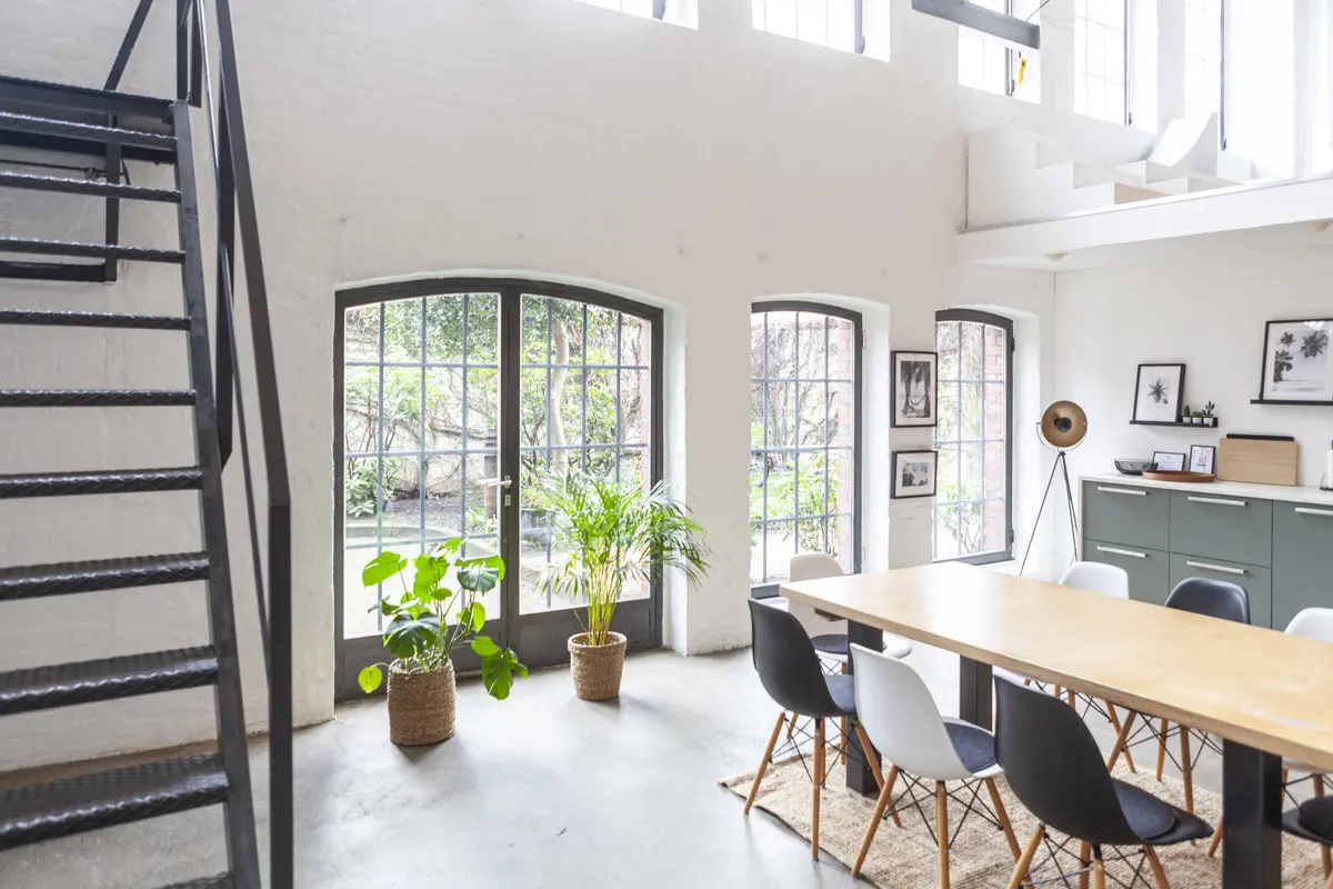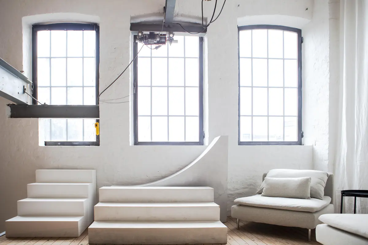 Unser Studio befindet sich im Zentrum von Hamburg-Ottensen und nur ca. 500 m von der nächsten S-Bahnstation entfernt. Das Studio ist ebenerdig und hat eine maximale Deckenhöhe von 6 m. Es sind 2 Starkstromanschlüsse mit jeweils 16 A vorhanden. Der Küchenbereich ist mit einer Kaffeemaschine, einem Kühlschrank und einer Spülmaschine ausgestattet. Der Essbereich bietet einen großen Esstisch mit 8 Stühlen. Der kleine Vorraum mit Garderobe, 2 Toiletten, eine Dusche und ein separate Raum für Maske und Styling stehen ebenfalls zur Verfügung. Die Sonne scheint vormittags durch die großen Industriefenster und wandert im Laufe des Tages hinter das Gebäude. Die Fenster können nur auf der oberen Ebene mit Jalousien abgedunkelt werden. Es stehen 2 Parkplätze vor dem Gebäude zur Verfügung.