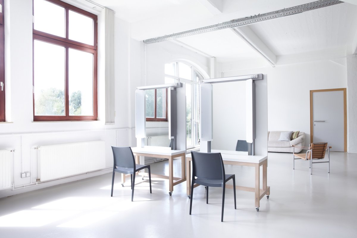 In unserem 600 m² großem Studio finden Produktionen ideale Bedingungen vor. Das Studio hat eine Deckenhöhe von 4 m und bietet 6 Produktionsplätze, die bei Bedarf abgedunkelt und flexibel erweitert werden können. Mehrere separate Make-Up Plätze, ein Garderobenbereich mit ausreichend fahrbaren Kleiderständern, eine vollständig ausgestattet Küche für Catering sowie ein Bereich für Teamaufenthalt stehen ebenfalls zur Verfügung. Auf Wunsch kümmert sich das Studio-Management gerne auch um spezielle Ausrüstung wie beispielsweise Ventilatoren, Möbel, Requisiten und andere Props.