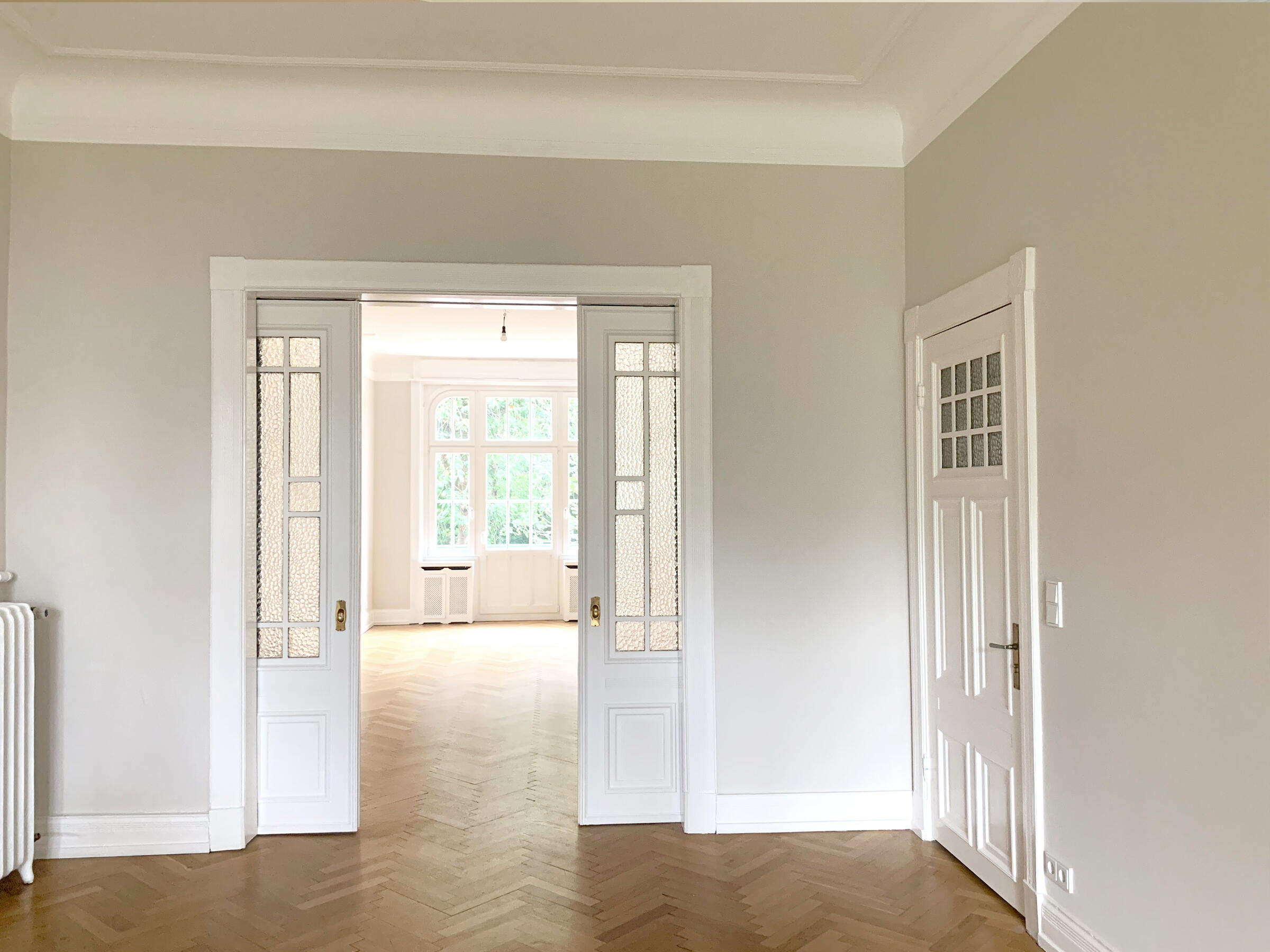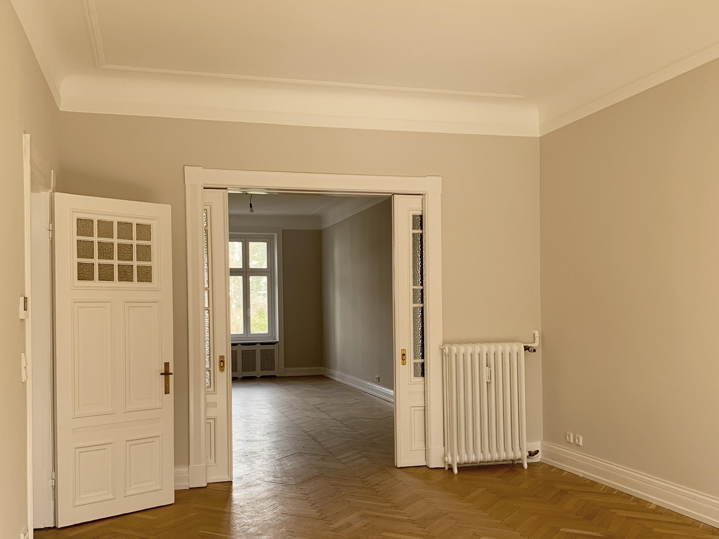 Bei dieser Location handelt es sich um eine herrschaftliche und neu renovierte Jugendstil-Altbauwohnung, ganz zentral gelegen in Hamburg. Die drei großen und hellen Räume gehen ineinander über, sind aber auch einzeln vom Flur begehbar und durch historische Flügeltüren voneinander trennbar. Wunderschöne Altbaumerkmale machen den Charme dieser traumhaften Wohnung aus - die Location steht vollständig leer, kann also unterschiedlichen Gegebenheiten frei angepasst werden. Zur Location gehören auch eine Kaffeeküche sowie ein WC. Zwei Terrassen bieten die Möglichkeit für eine Pause im Freien.