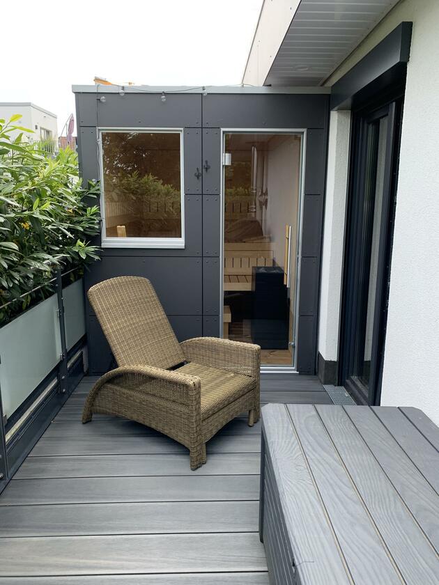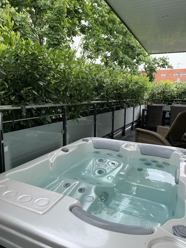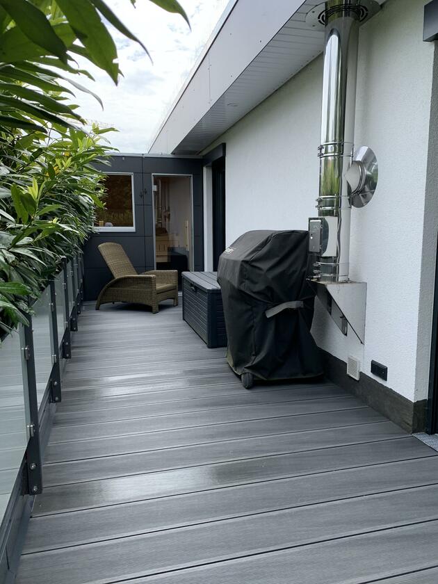 Die 4 Zimmer Dachgeschosswohnung befindet sich mitten in Hamburg-Altona, in der 3. Etage eines Neubau aus dem Jahr 2020. Die Wohnung bietet inklusive einer Dachterrasse eine Fläche von 140 m². Wenn man die Wohnung betritt, befindet sich auf der rechten Seite das Gästezimmer mit angrenzendem Gästebad. Dahinter folgt das Hauptbad mit einem Durchgang zur Ankleide und Zugang zum Schlafzimmer. Am Ende des Flurs kommt man direkt in den offenen Wohn-, Koch- und Essbereich sowie zu der 40 m² großen Dachterrasse mit integriertem Jacuzzi und Sauna. Alle Räume, außer dem Gästebad, haben Tageslicht und verfügen über mindestens ein Fenster. Außerdem gehört zu der Wohnung ein Tiefgaragenstellplatz.
