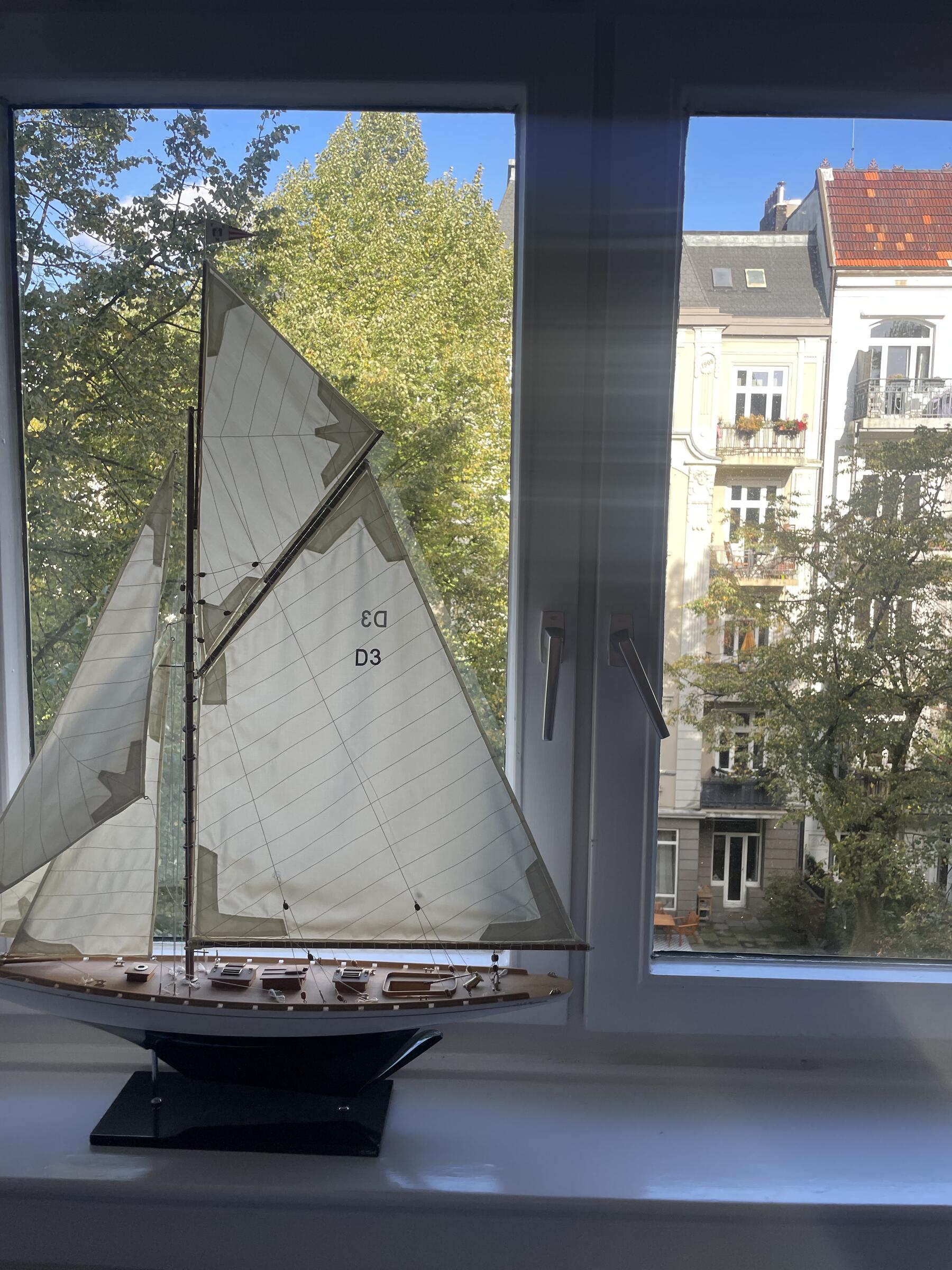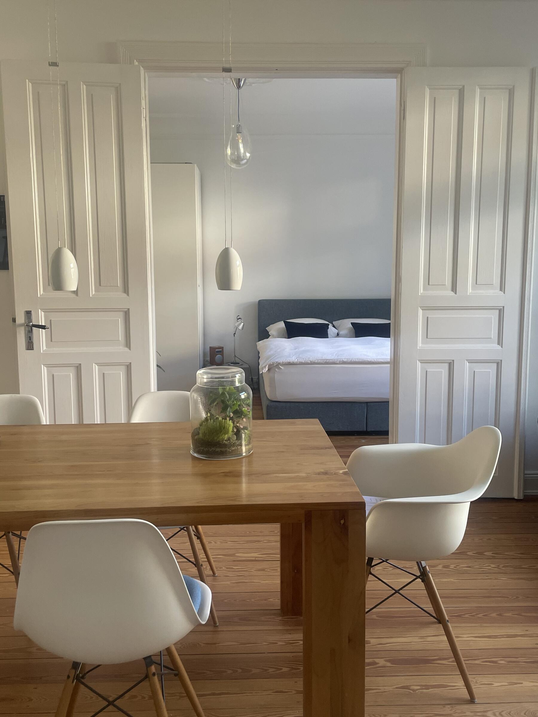 Die sanierte Altbauwohnung befindet sich in einem denkmalgeschützten Wohnhaus in Hamburg-Eimsbüttel, direkt am Weiher. Die lichtdurchflutete und über 85 m² große Wohnung bietet eine offene Raumaufteilung, ist mit stilvollen Design-Komponenten eingerichtet und luxuriös ausgestattet. Neben dem großen und hellen Wohnzimmer und Essbereich bietet die Wohnung ebenfalls eine moderne Küche, ein mit hellen Fliesen ausgestattetes Badezimmer sowie ein Schlafzimmer. Der Balkon hat vormittags direktes Sonnenlicht. Von allen Fenstern schaut man in wunderschöne Altbauten der Jahrhundertwende in der Nachbarschaft.