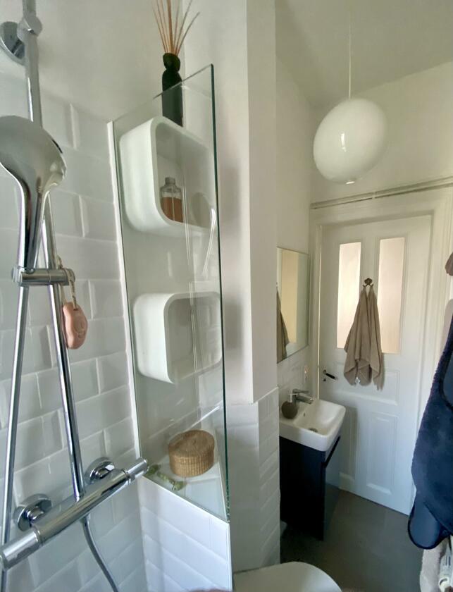 - Badezimmer (2. OG)Fläche: 2 m²Länge: 2,3 mBreite: 0,85 mHöhe: 2,97 mmöbliert: ja