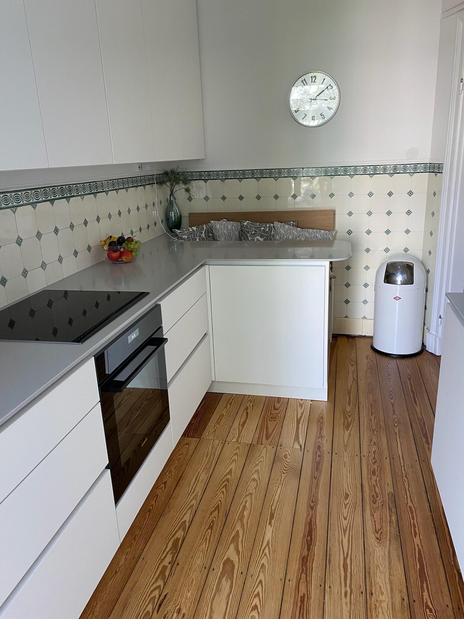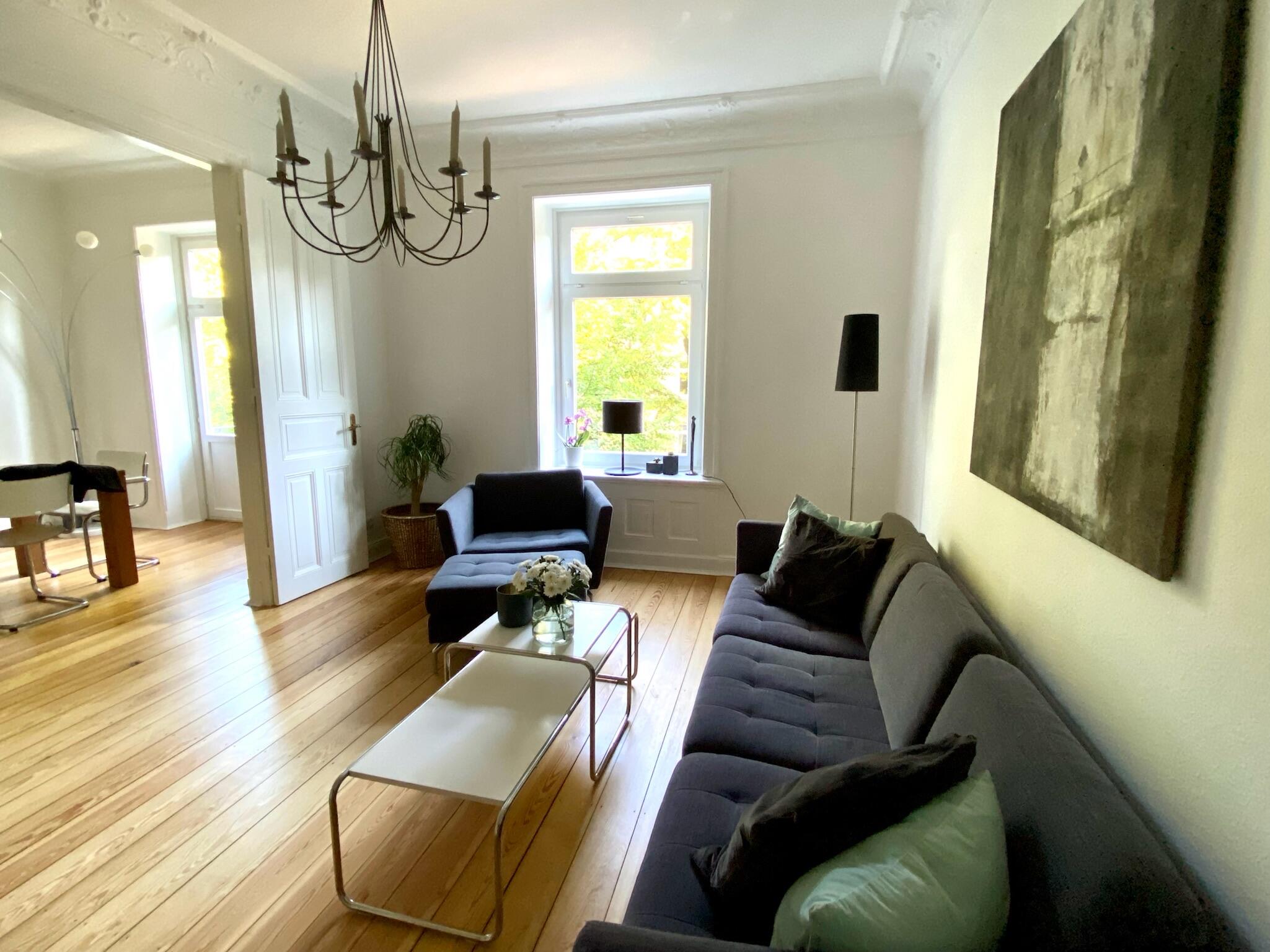In einem etwa 120 Jahre alten Jugendstilhaus in Eimsbüttel befindet sich diese liebevoll renovierte 3-Zimmer-Wohnung im 2. Obergeschoss mit kleinem Balkon. Das Wohnzimmer ist mit dem Esszimmer durch eine für diese Bauten typische Flügeltür verbunden und lässt beide Räume zu einem großen Ganzen werden. Die Küche ist puristisch eingerichtet und verfügt über einen integrierten Essplatz. Das Bad ist auch für die Bauweise typisch klein und schlauchig, aber stilvoll saniert. Die Wohn-, Ess-, und Schlafräume sind nach Süden ausgerichtet und daher hell und freundlich. Das Haus befindet sich in einer ruhigen Sackgasse mit Kopfsteinpflaster.