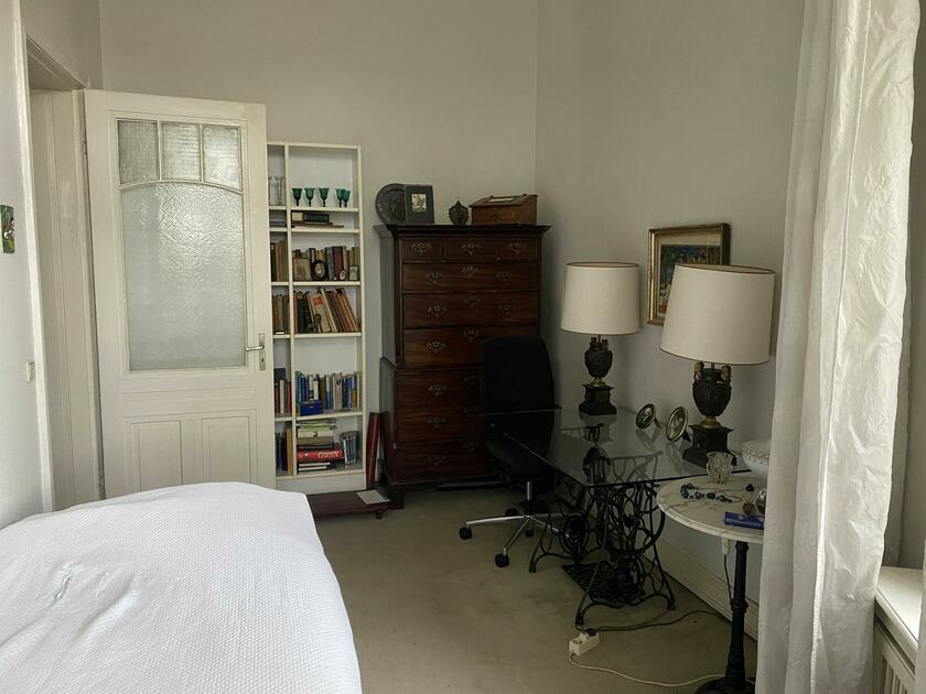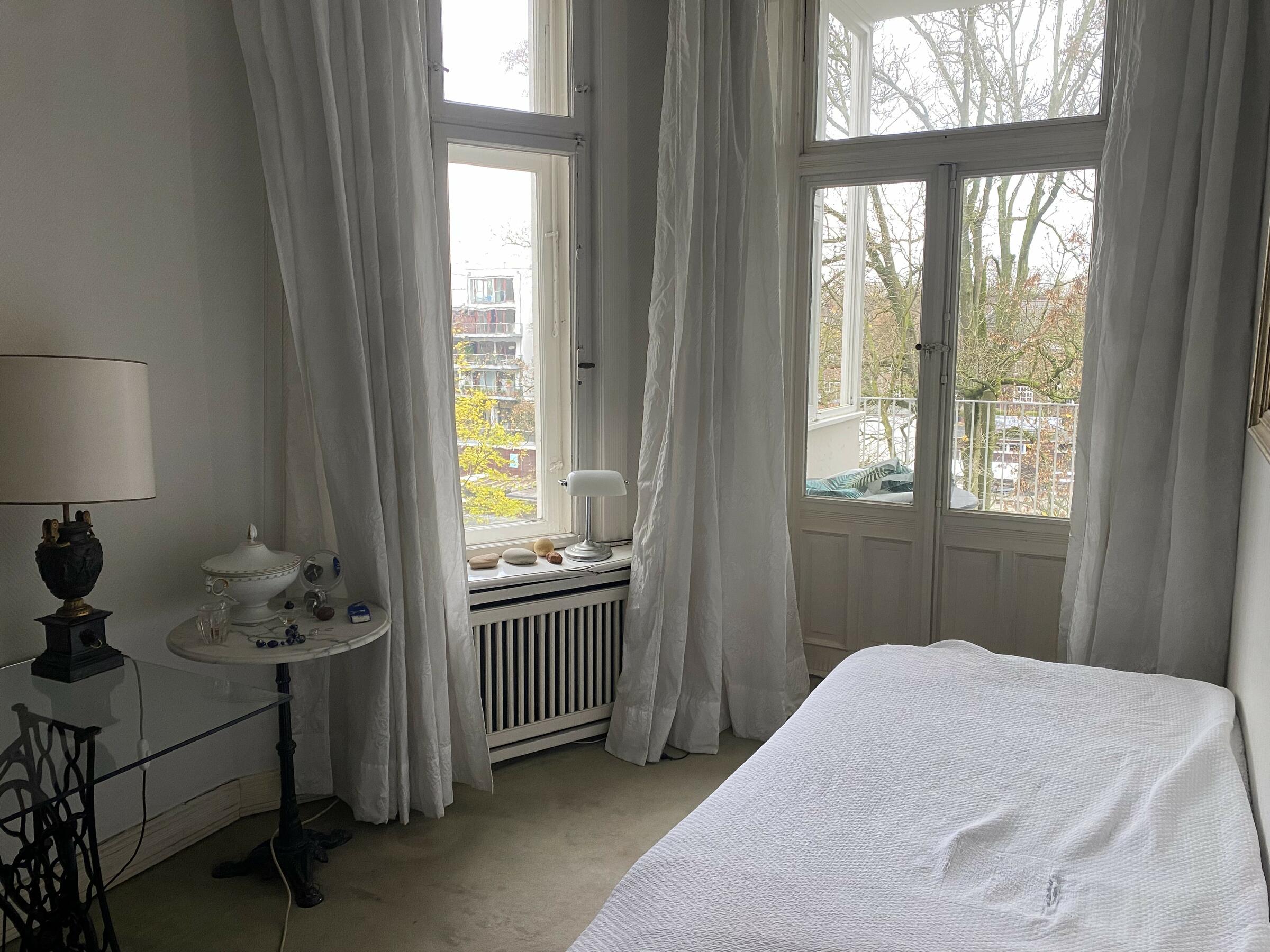 Meine Altbauwohnung befindet sich in einem Wohnhaus in Eppendorf an einer ruhigen Straße, nahe des Isebekkanals. Die Wohnung bietet für Altbauten typische große Räume mit hohen Decken. Die Räume sind minimalistisch und mit polierten Holzmöbeln eingerichtet. Hervorzuheben ist die Bibliothek mit ihren deckenhohen Bücherregalen an allen Wänden. Durch die großen Fenster fällt viel Tageslicht in die Wohnräume. Die Fenster können teilweise mit Rollos abgedunkelt werden. Die Räume dürfen nach Absprache umgestaltet werden. Öffentliche Parkplätze befinden sich an der Straße vor dem Haus.