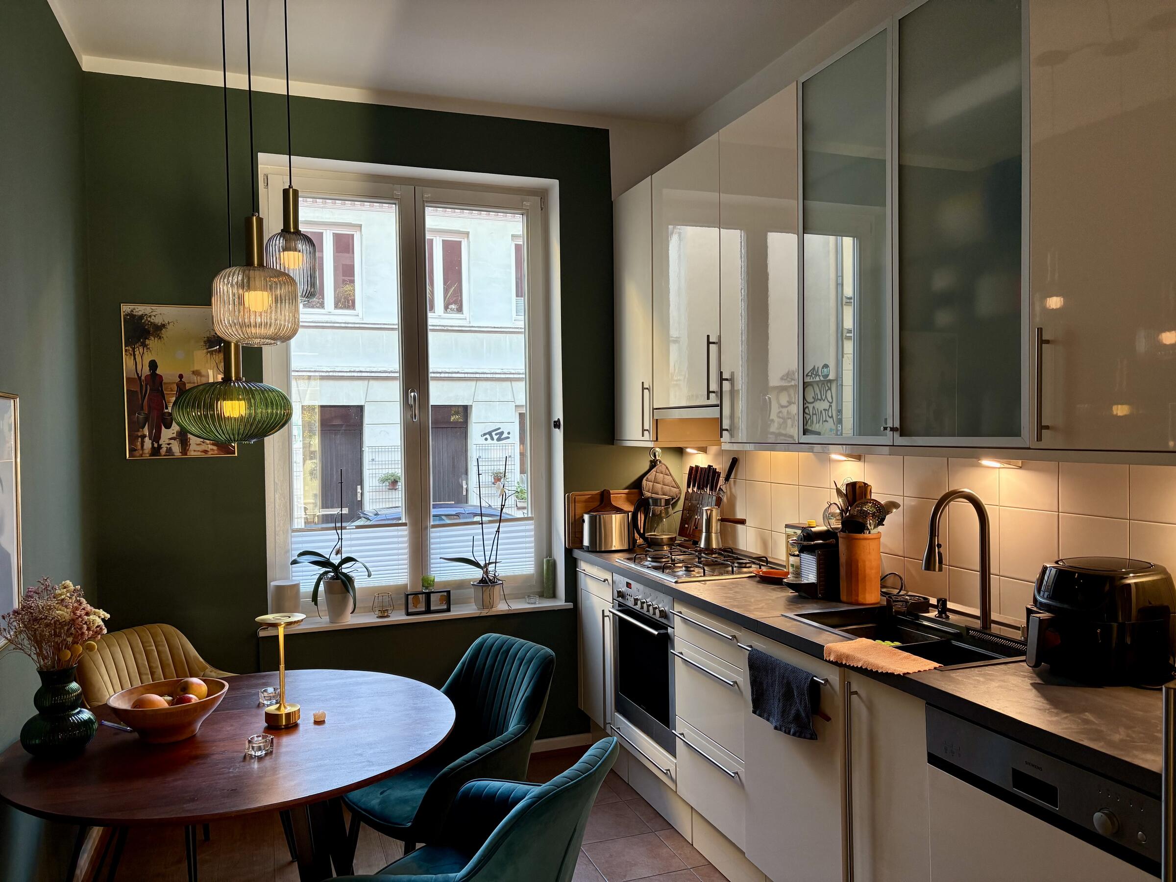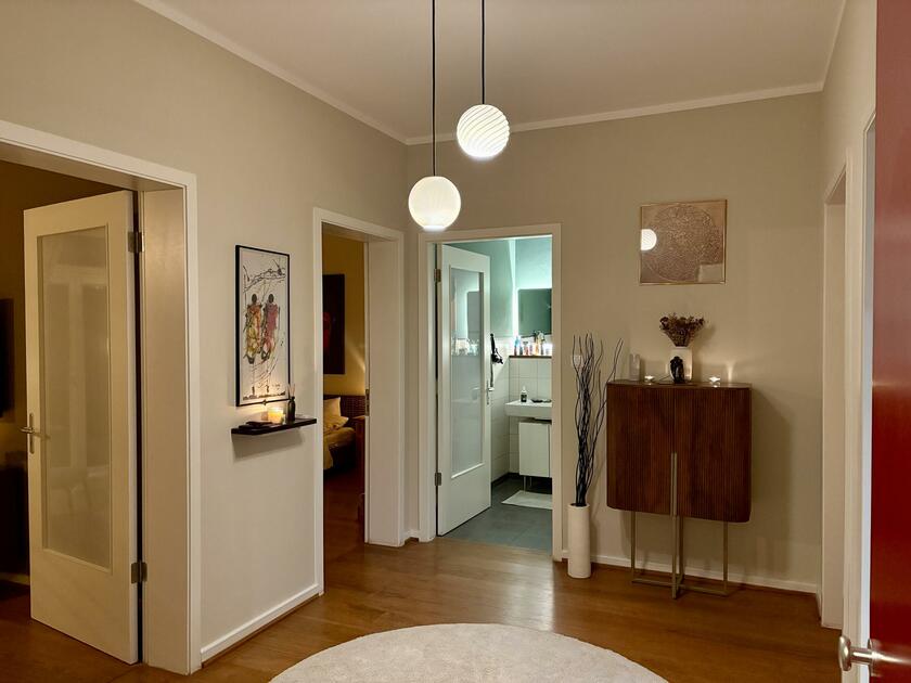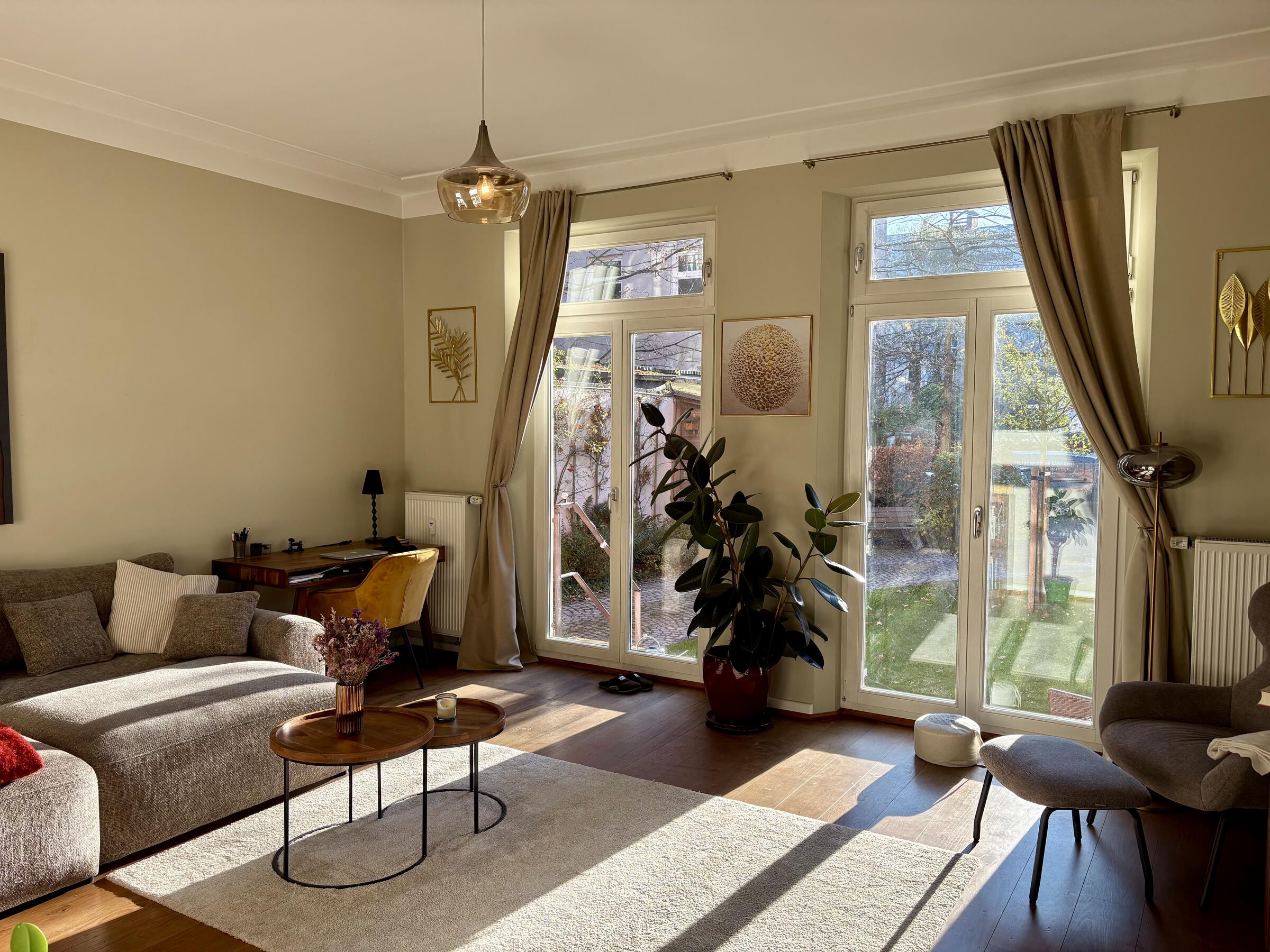 Meine Wohnung befindet sich in einem ruhig gelegenen Wohnhaus in Ottensen. Die Räume sind hell und freundlich eingerichtet. Die teilweise bodentiefen Fenster ermöglichen viel Tageslicht in den Räumen. Die Fenster können mit Hilfe von Vorhängen verdunkelt werden. Auf den Böden der Wohnbereiche ist hochwertiges, dunkles Laminat verlegt. Das Badezimmer ist gefliest. Meine Wohnung bietet im Außenbereich eine Terrasse und einen kleinen Garten, die ebenfalls für Produktionen genutzt werden können. Parkplätze gibt es an der am Haus vorbeiführenden und wenig befahrenen Einbahnstraße.