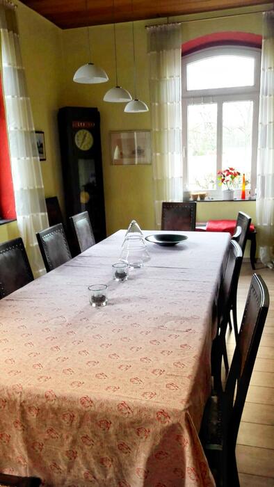 Die Hofanlage ist ein Platz voller Historie. In mitten von grünen Wiesen und Feldern liegt der Hof in der Nähe von Wesel am Niederrhein. Das Haupthaus mit seinen Stallungen wurde 1880 erbaut. Auf zwei Ebenen befinden sich ca. 250 m² Wohnfläche. Das Haupthaus besitzt einen kleinen Gewölbekeller sowie mehrere großzügige Dachböden. Teilweise befindet sich an den Decken noch Stuck. Das Mobiliar ist Antik und modern gehalten. Zum Hof gehören zudem eine alte Fachwerkscheune sowie eine alte Ständerscheune aus dem 16. Jahrhundert. Die Außenfläche, bestehend aus Streuobstwiese, Kuhweide sowie Garten - beträgt mehrere Hektar. Parkflächen sind für unzählige Autos/LKW vorhanden. Der Hof ist verkehrsgünstig zu den Autobahnanschlussstellen (A57/A3) gelegen, sodass schnelle Verbindungen zu den Zentren Düsseldorf und Köln gewährleistet sind.