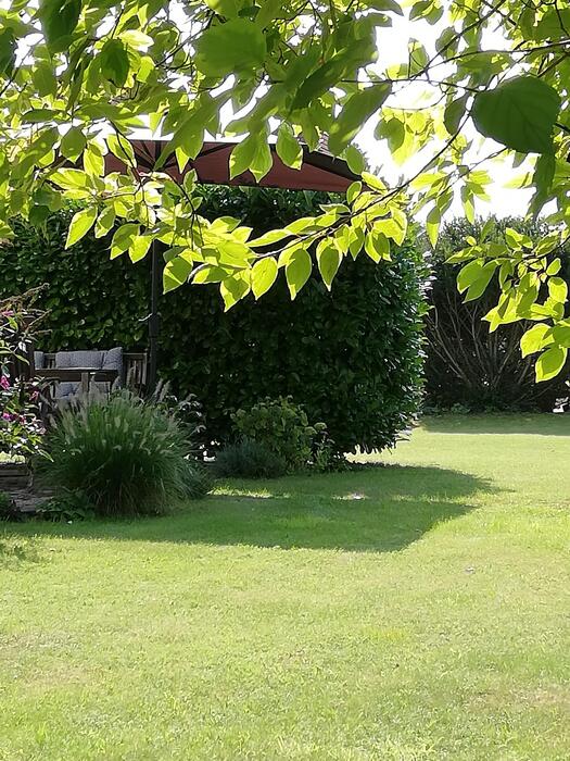 Unser skandinavisch anmutendes, gemütliches Holzhaus wurde 1999 erbaut. Es befindet sich im beschaulichen niedersächsischen Dorf Handorf, in der Nähe von Lüneburg. Das Haus ist frisch gestrichen und der Garten gepflegt und idyllisch. Der Außenbereich hat viele schöne Ecken wie z.B. Teich, Balkon, Terrasse, Walnussbaum mit Hängematte. Hervorzuheben ist der großzügige Eingangsbereich, durch die Eingangstür gelangt man in eine Diele, von der aus die Galerie im 1. Stock folgt. Im Inneren ist es sehr hell und wohnlich, der Essbereich befindet sich in einem Erker mit vielen Fenstern.