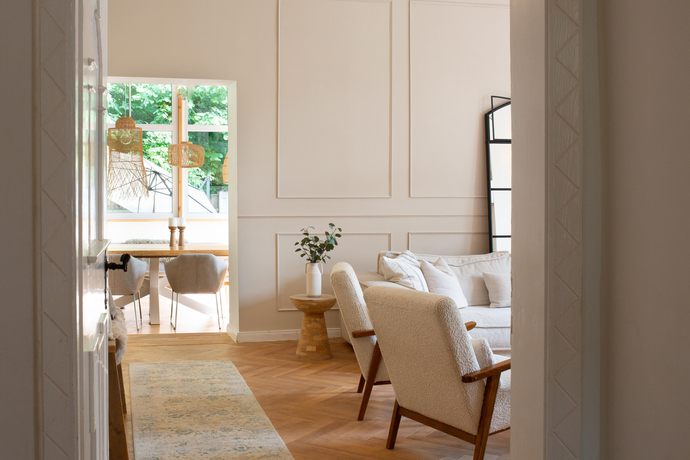 Wir vermieten unsere ca. 200 m² große Altbauwohnung in Hannover für Filmproduktionen und Fotoshootings. Die Wohnung wurde 2021 kernsaniert und befindet sich im Hochparterre und Souterrain eines 4-Familienhauses im Baustil des Klassizismus.