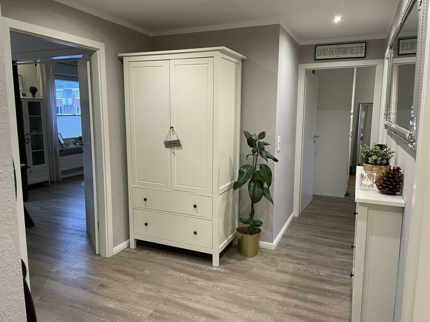 Meine Wohnung befindet sich im 3. Stock eines Mehrfamilienhauses an der deutsch-dänischen Grenze, zwischen Nord- und Ostsee. Die Wohnung wurde im Jahr 1970 erbaut und im Jahr 2016 vollumfänglich saniert. Der große Wohn- und Essbereich ist nach Südwest ausgerichtet und über den Tag durchweg lichtdurchflutet. Die kleine Küche ist schlicht und gemütlich. Das Badezimmer ist in hellen Farben und im skandinavischen Stil gehalten. Die Böden der gesamten Wohnung sind mit einem pflegeleichtem Vinylfußboden in beige/grau verlegt und die Raumwände sind weiß gestrichen. Vor dem Haus stehen ausreichend Parkplätze zur Verfügung. Ich freue mich auf Ihre Anfragen.