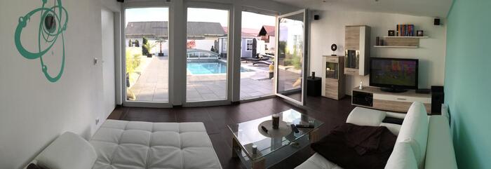 Unser freistehendes Einfamilienhaus liegt am Ortsrand einer kleinen Gemeinde im Landkreis Regensburg und bietet neben seinen individuell gestalteten Wohnräumen einen vielseitigen, exklusiven und luxuriösen Außenbereich für Film- und Fotoproduktionen an. Im Innenbereich erwartet Sie ein großer Wohn- und Essbereich mit Zugang zur Terrasse sowie eine vollständig eingerichtete Küche mit Insel. Kinderzimmer sowie Schlafzimmer und ein Büro liegen im Obergeschoss des Hauses. Ein Bad bietet bodenebene Fliesen in der Dusche und eine Regenbrause. Alle Zimmer sind individuell und einzigartig gestaltet.
