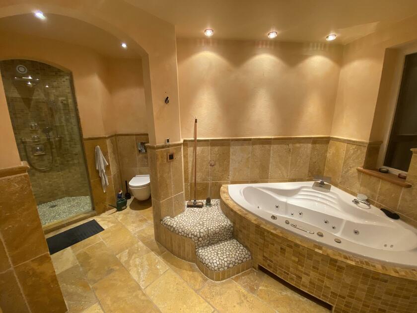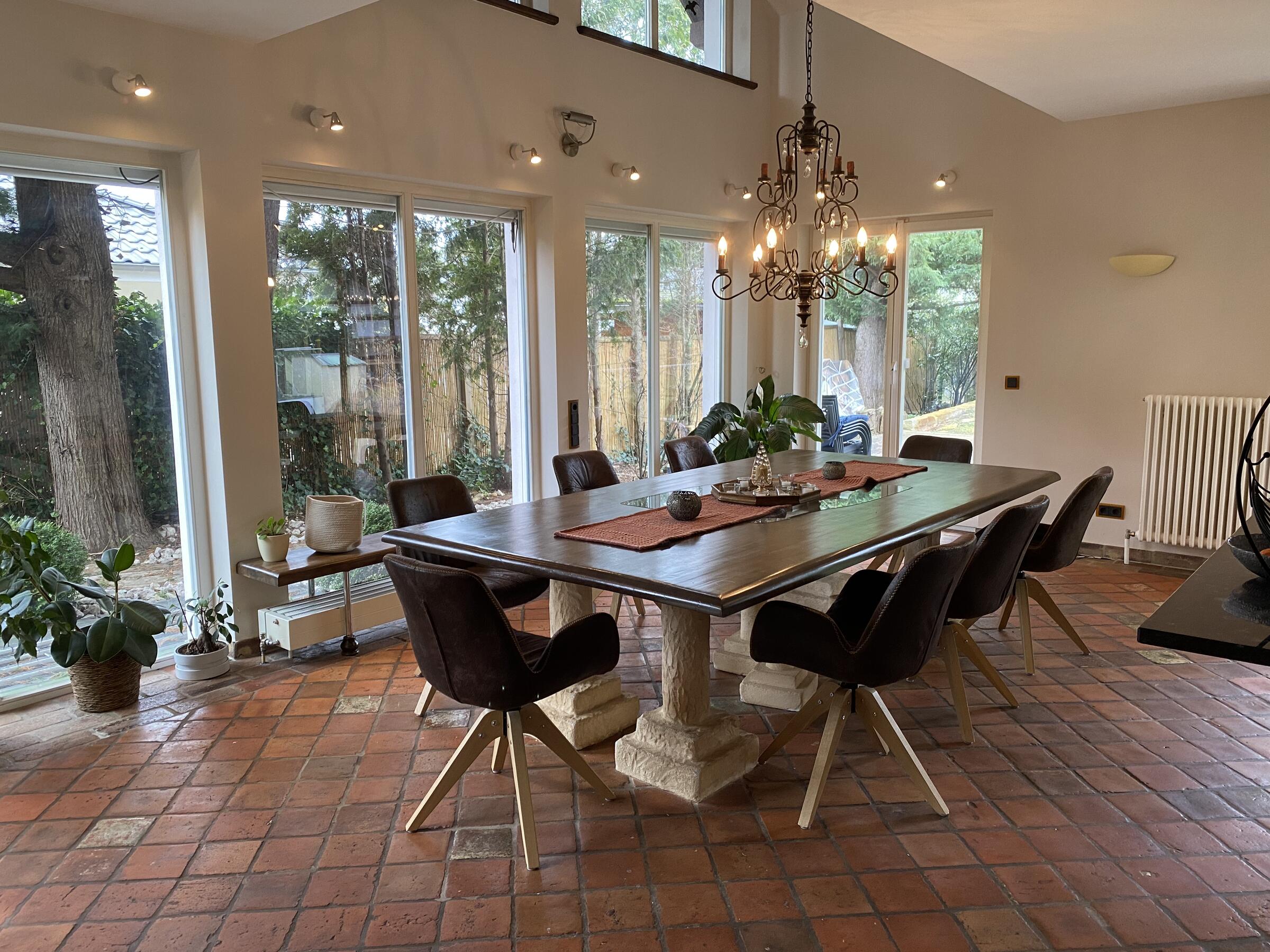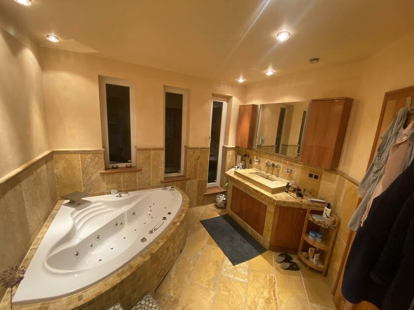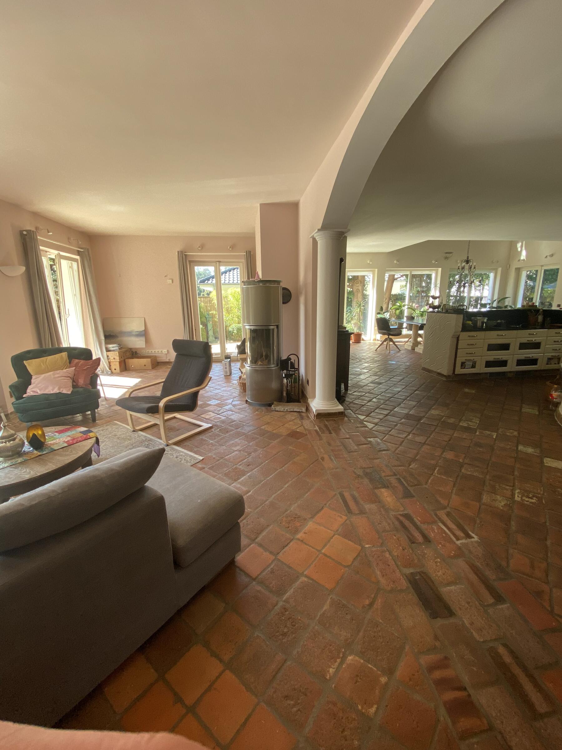 Willkommen in unserer Villa, eingebettet in die unberührte Schönheit eines ruhigen Waldes. Mit einer großzügigen Wohnfläche von 400 m² und einem beeindruckenden Grundstück von 1250 m² stehen Ihnen hier viele Möglichkeiten für Ihre Produktion zur Verfügung. Der große Wohn- und Essbereich ist offen gestaltet. Der große Küchenbereich geht direkt in den Wohnbereich über und bietet unter anderem einen freistehenden Küchenblock. Der Boden des großen und lichtdurchfluteten Wohnbereiches besteht aus einem Steinboden einer ehemaligen Französischen Burg. Die Fenster sind teilweise mit Vorhängen verdunkelbar. Im Außenbereich steht Ihnen der große Garten und die Terrasse zur Verfügung. Parkplätze befinden sich auf unserem Grundstück.
