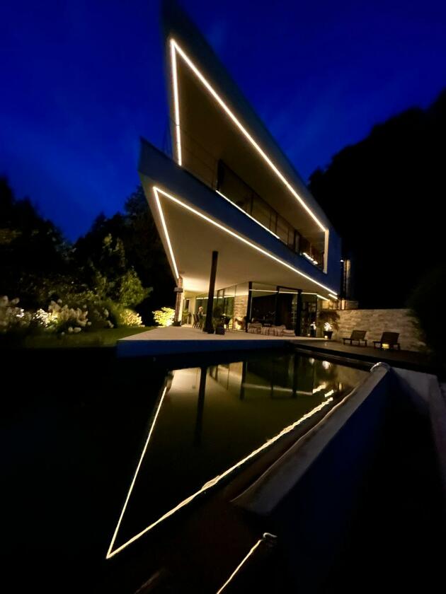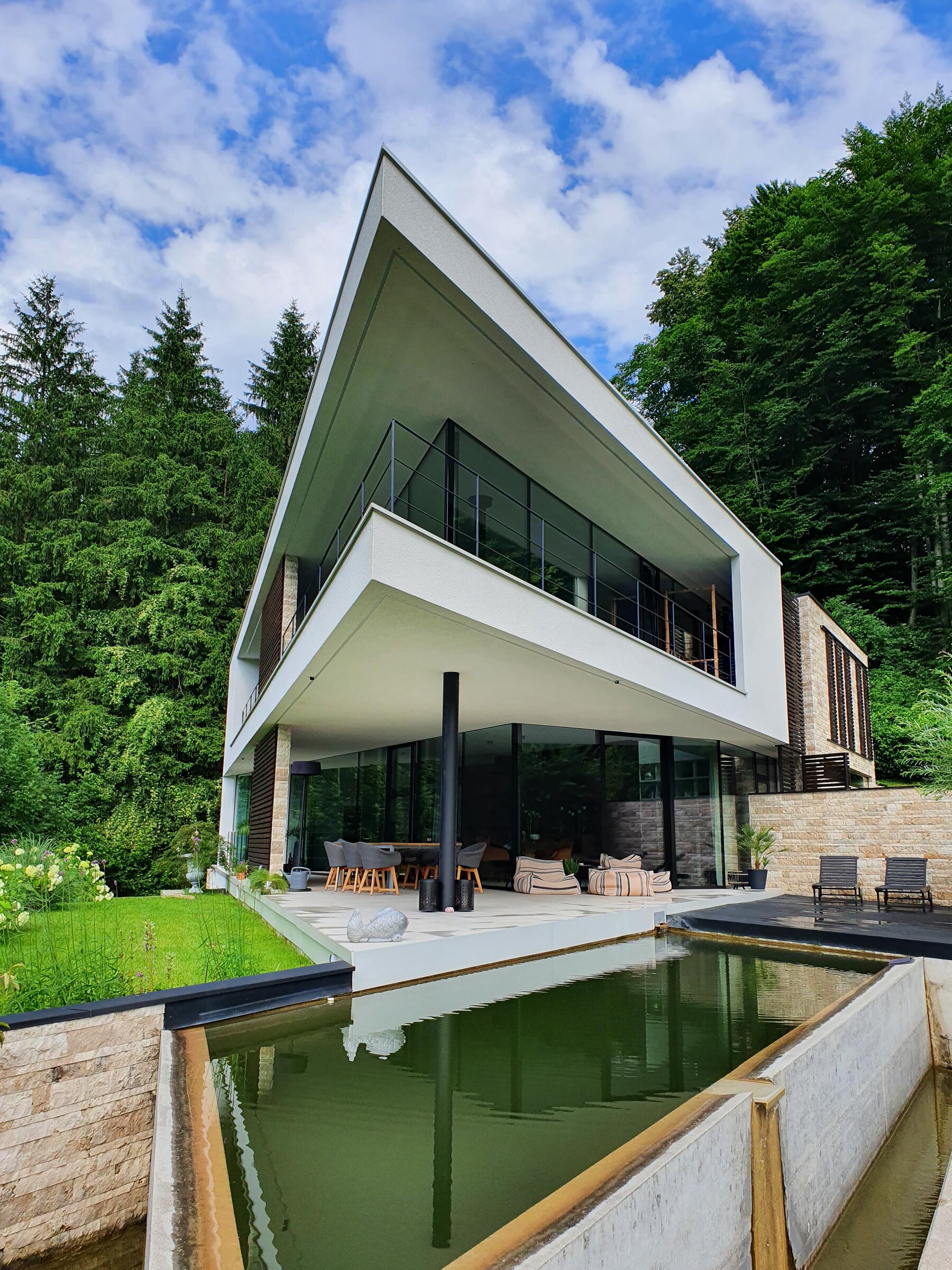 Diese einzigartige und lichtdurchflutete Designer-Villa ist mit edlen Designermöbeln ausgestattet. Die Räume überzeugen durch ihre Großzügigkeit und enormer Außenlichteinstrahlung. Die Villa in absoluter Alleinlage ist nahezu vollständig verglast und bietet einen einmaligen Blick in das umgebende Naturschutzgebiet direkt an der Grenze zu Deutschland (Burghausen) und nur 80 km von München entfernt. Im Erdgeschoss dominieren große Travertinfliesen, die sich harmonisch in die vorherrschenden Farben weiß und schwarz einfügen. Im Obergeschoss sind schwarzgeräucherte Landhausdielen verlegt die durch weiße Möbel das Gesamtbild abrunden. Wir freuen uns auf Ihre Anfrage für Ihre nächste Filmproduktion oder Ihr nächstes Fotoshooting.