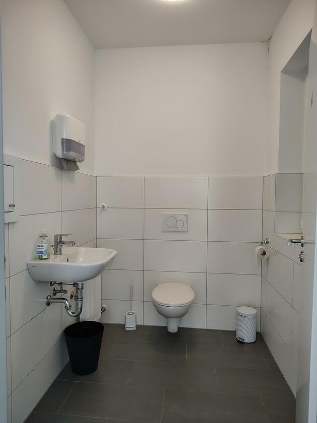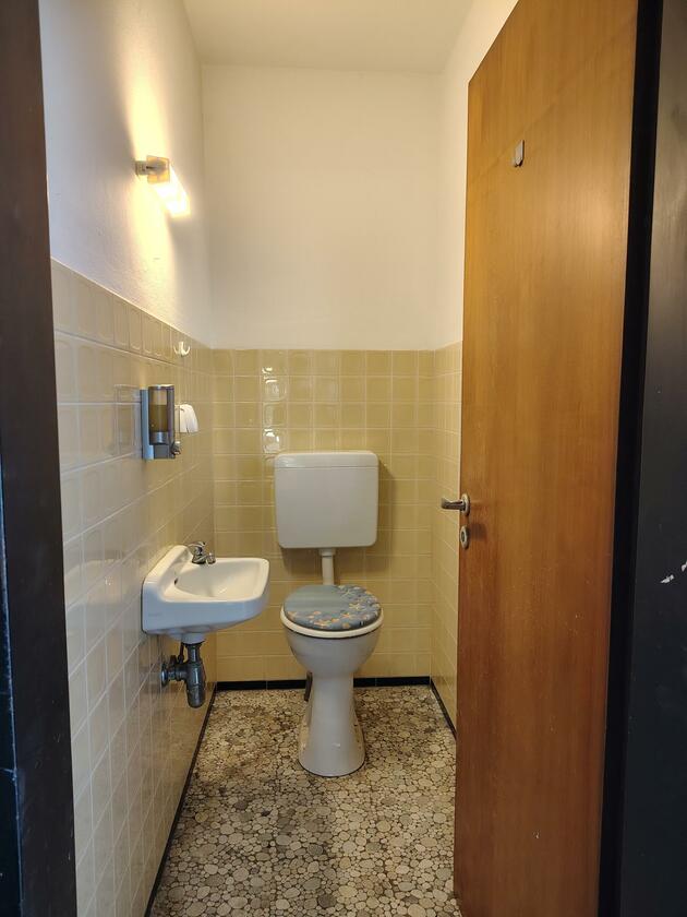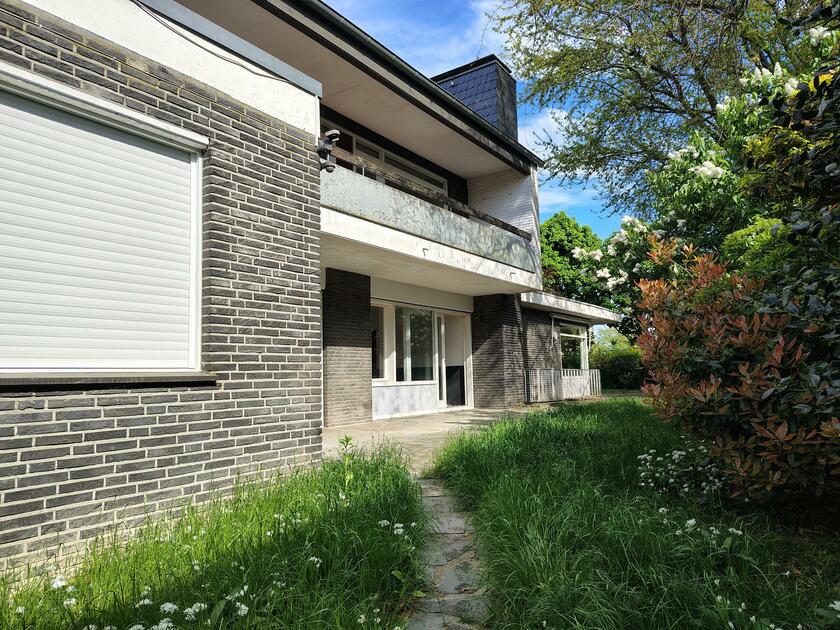 Das leerstehende, sanierte Haus befindet sich am Stadtrand. Das untere Stockwerk verfügt über ein großes Wohnzimmer mit Parkettboden und Zugang zur Terrasse, einer große Küche mit anliegendem Esszimmer, dem Eingangsbereich mit begehbarer Garderobe und einem Gäste-WC. Die Küche und das Esszimmer haben ebenfalls einen Zugang zum Garten. Durch die großflächige Verglasung im Wohnzimmer fällt viel Tageslicht in den Raum. Im Erdgeschoss befindet sich auch eine ehemals genutzte Arztpraxis. Im oberen Stockwerk befinden sich ein großes Zimmer mit eigenem Badezimmer und vier weitere Zimmer. Drei der Zimmer teilen sich einen langen Balkon. Der trockene Keller bietet vier Räume. Der größte Raum hat einen Heizkörper, sowie Fenster und einen Gartenzugang. Die Wände sind mit Holz vertäfelt. Weiteren Stauraum bietet der Dachboden mit altem hölzernen Dachstuhl und Zugang über eine Klappleiter. Parkplätze gibt es vor dem Haus.