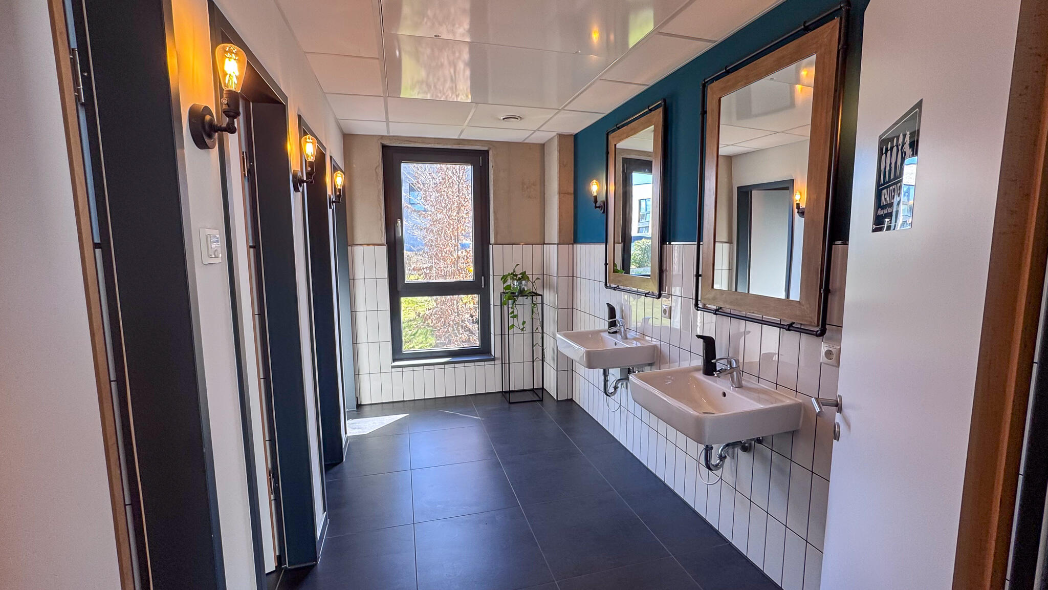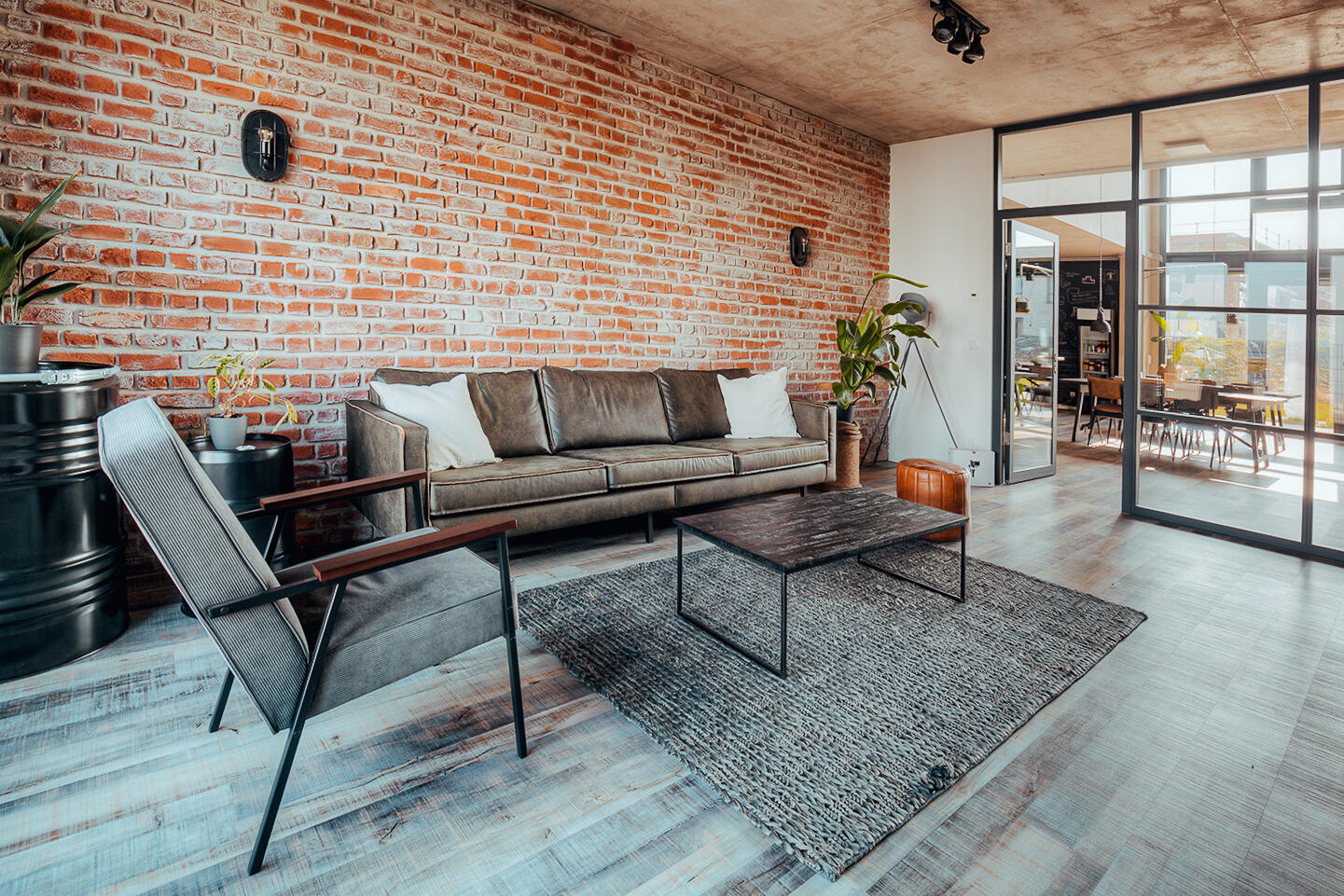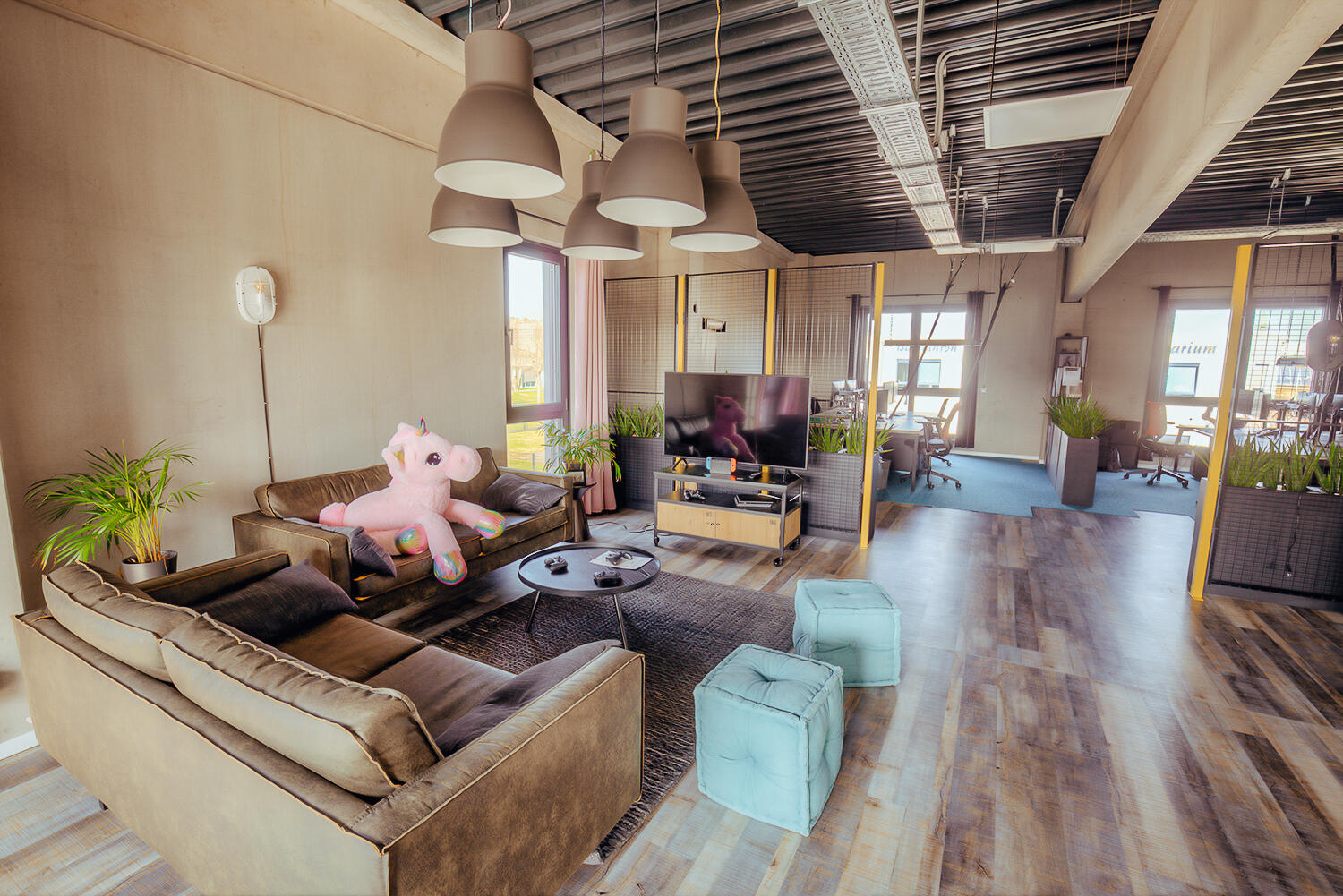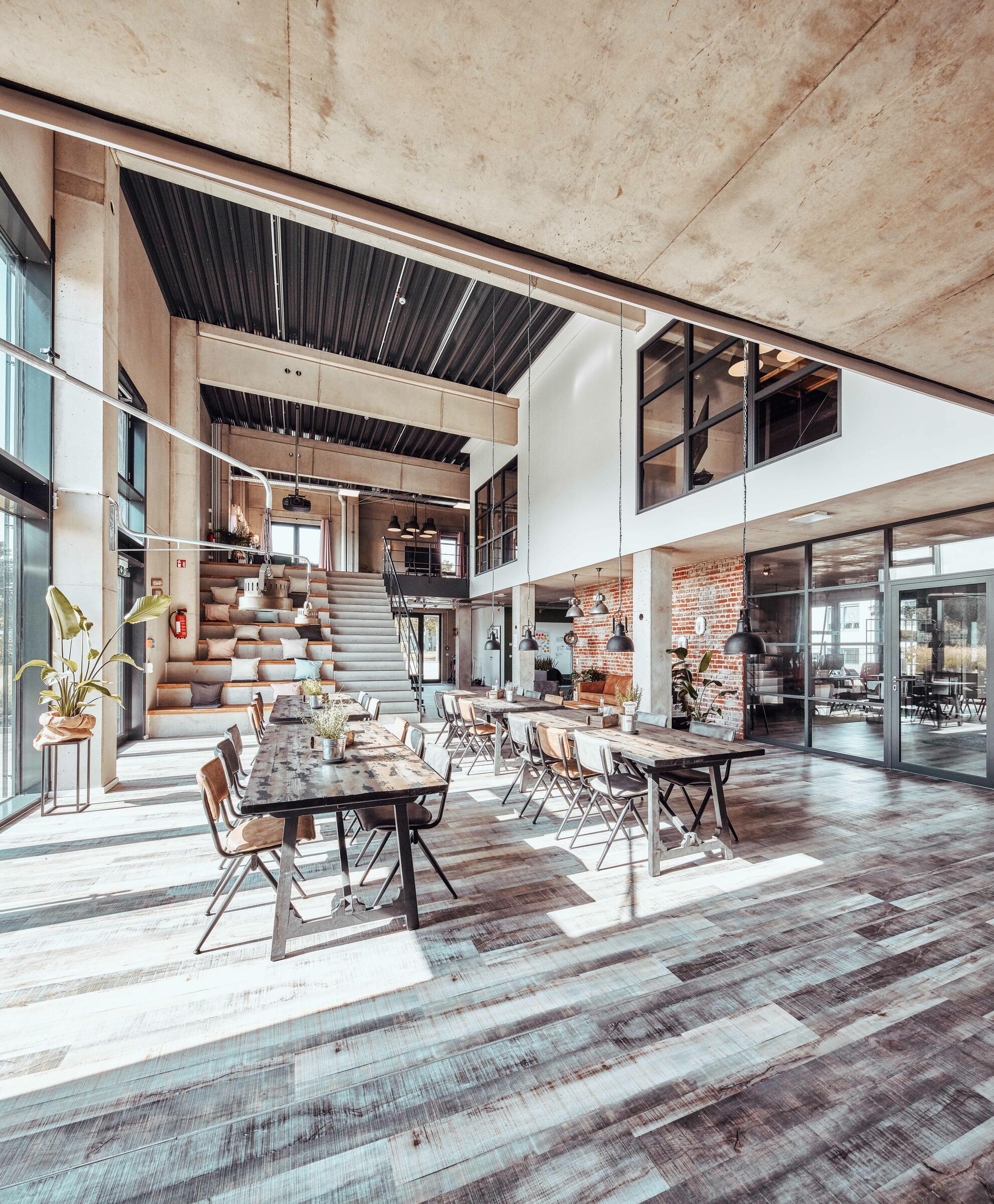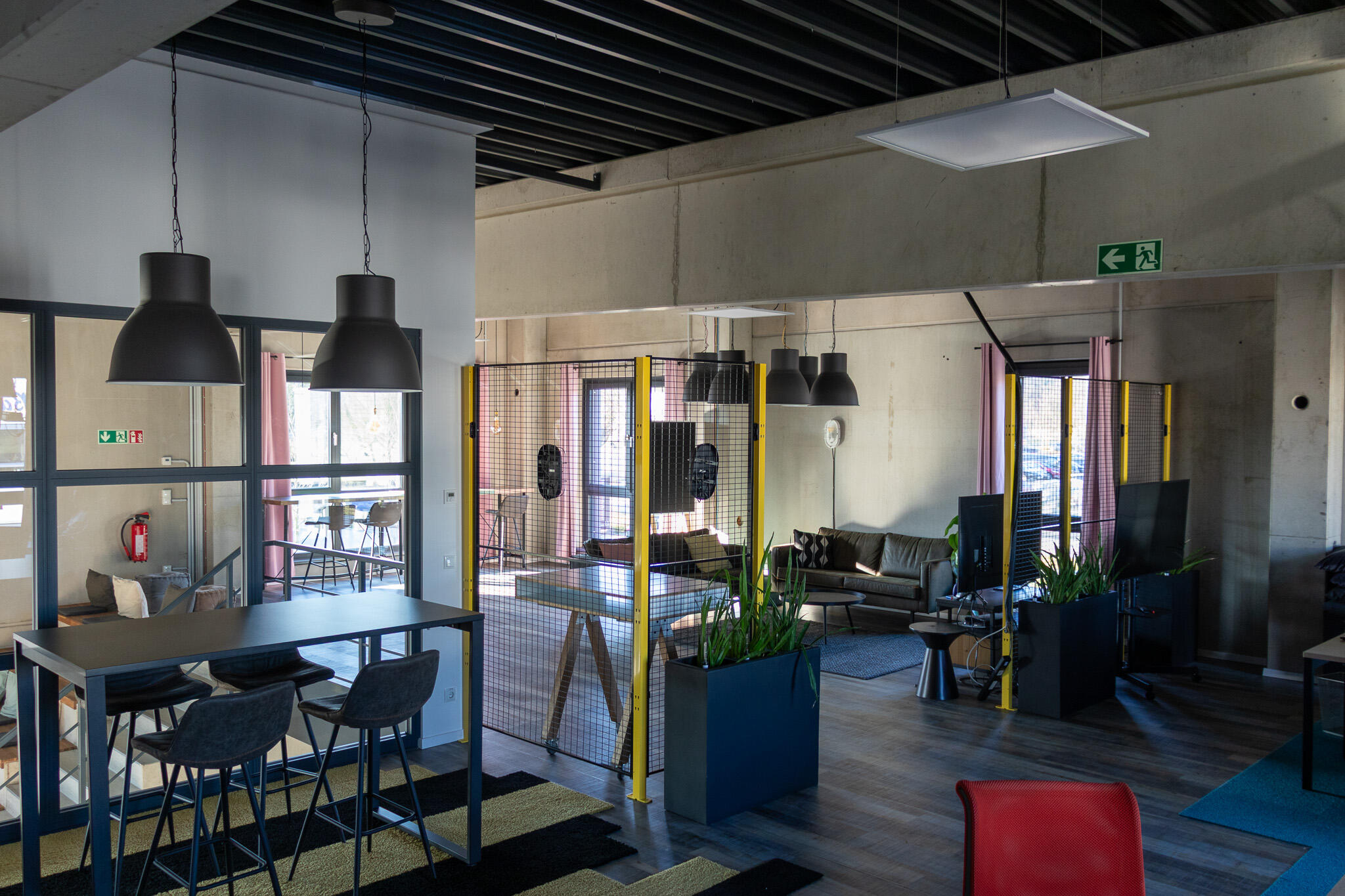Das Gebäude liegt in einer ruhigen Nebenstraße ohne direkte Nachbarn und bietet auf 570 m² Innenfläche vielseitige Nutzungsmöglichkeiten. Die Räume sind offen gestaltet und können flexibel an Produktionsanforderungen angepasst werden. Große Fenster sorgen für viel Tageslicht, während die Beleuchtung/Tageslicht individuell mit elektrischen Jalousien einzeln gesteuert werden kann.