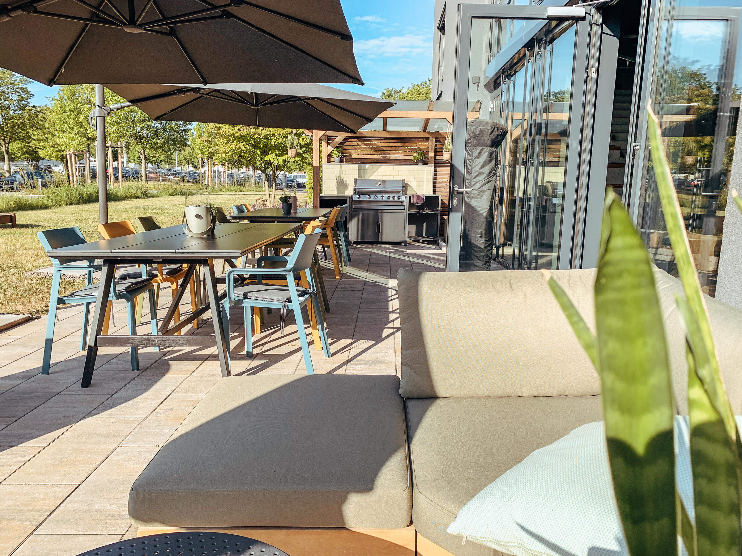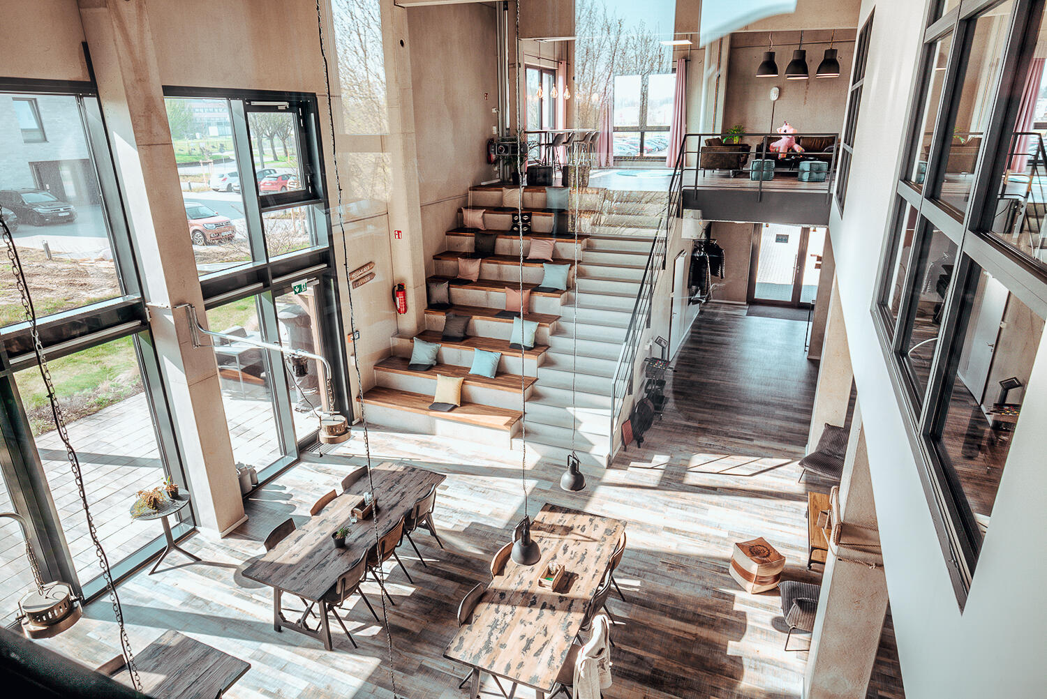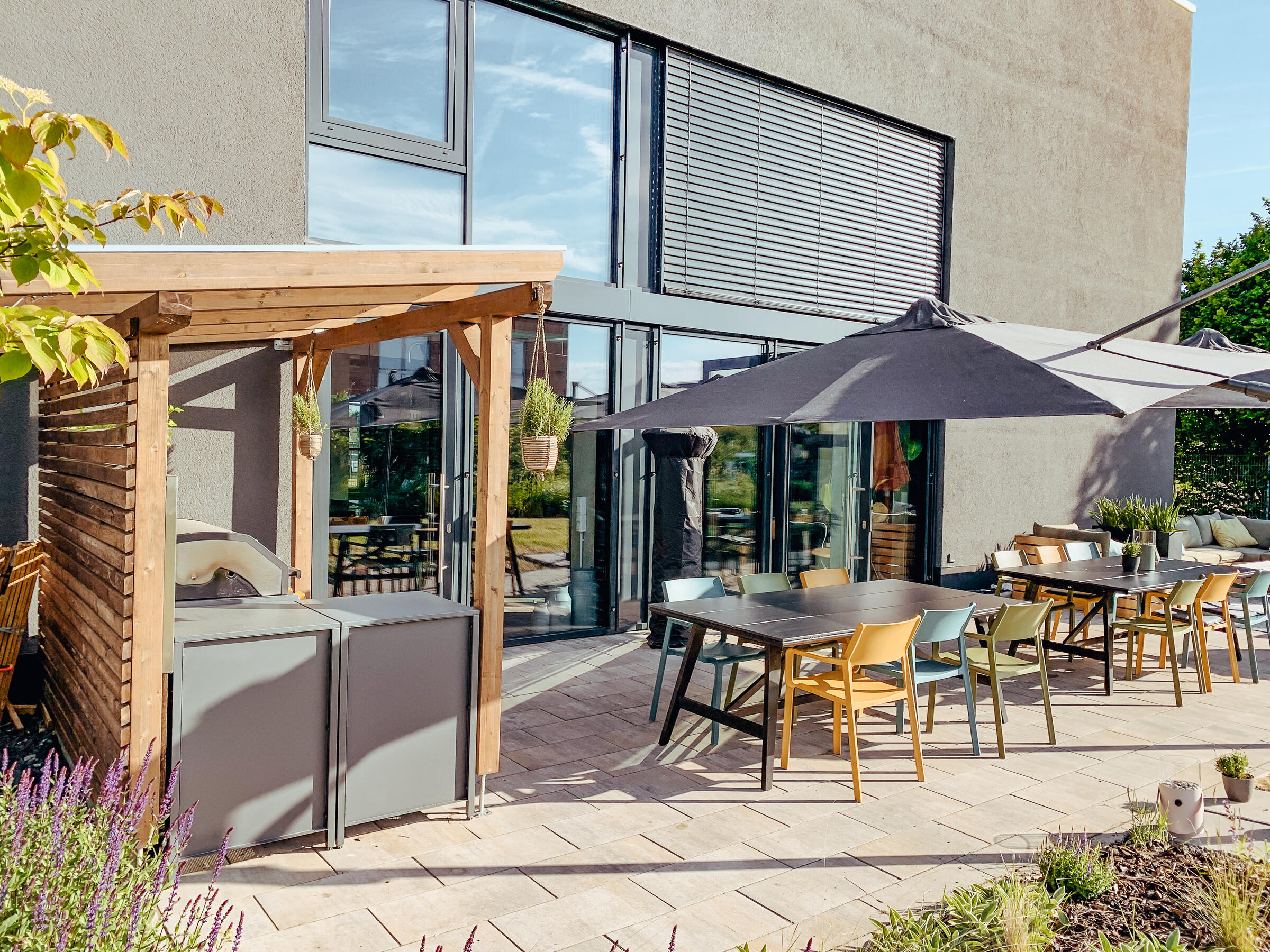 Direkt am Gebäude steht ein eigener Parkplatz mit zwei Ladestationen für Elektrofahrzeuge zur Verfügung. Zusätzliche kostenfreie Stellflächen befinden sich in direkter Umgebung.