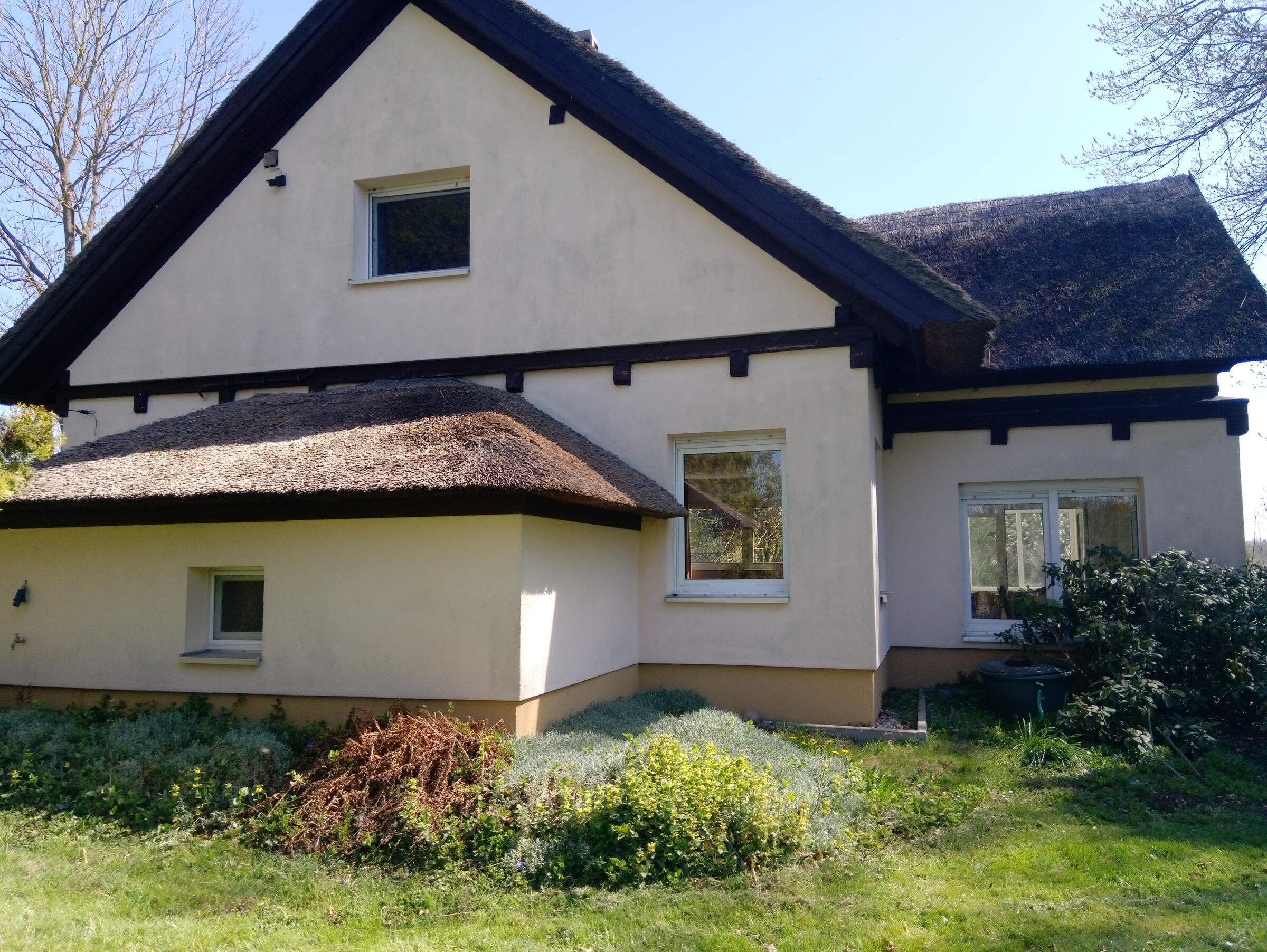 Unser Haus befindet sich nur 30 Minuten von Berlin und Potsdam entfernt in der malerischen Fischerstadt Ketzin und erstreckt sich auf insgesamt über 23.000 m² im Außenbereich. Die lange und breite gepflasterte Zuwegung auf dem Grundstück bietet Platz für mehrere Fahrzeuge, ebenso die Wiese vor der Scheune. Auf das Grundstück kann man mit Fahrzeugen von der Frontseite aus über das große elektrische Zufahrtstor, und/oder zu Fuß über das östliche Tor gelangen. Das Grundstück verfügt über eine ca. 20 Meter lange und 4 Meter breite gepflasterte Einfahrt, die das reetgedeckte Haupthaus (Baujahr ca. 1900) in dem die Familie wohnt, und das moderne Gästehaus von 2003 mit 30 m² großer offener Garage, verbindet. Das Grundstück liegt L-förmig am zu 2/3 eigenen See mit Wasserfläche 17500 m² Eigentum, keine weiteren Anlieger, und ist mit vielen Bäumen u. a. diversen Obstbäumen, bewachsen. Eingebettet ist das Grundstück zwischen Feldern und Wiesen und dem See. Ein Highlight bildet dabei die ca. 15 Meter hohe Eiche, an der eine Schaukel an überlangen Seilen befestigt ist entsprechend romantische Motive bietet.