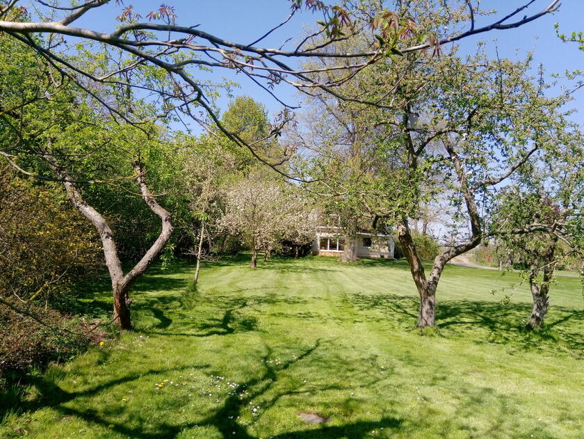 Neben dem am Wasser befindlichen Gästehaus mit 2 Zimmer mit Küche, Badezimmer mit Sauna und extra Zugang zum Hobbyraum, befindet sich die original erhaltene Holzscheune mit von außen begehbarem Heuboden. Über der Terrasse des Gästehauses wachsen Weinreben, die ebenfalls wunderbare Motive abgeben. Abgerundet wird dieses wildromantische Grundstück von einem versteckt errichteten ehemaligen Kartoffelkeller, der durch seinen Bewuchs von Gras und blühenden Rankepflanzen, auch als Bunker durchgehen kann.Die ursprüngliche und doch gepflegte Bepflanzung und Bebauung des Grundstückes bietet zu jeder Jahreszeit attraktive Foto und Filmmotive. Hier wäre ebenso ein Set für romantische und historische Filmaufnahmen denkbar, wie auch für Heimat- oder Gruselfilme.Der durch die L-förmige Lage des Grundstückes aus verschiedenen Perspektiven wunderbar aufnehmbare See mit dem Wildbewuchs, Schilf und große alte Bäume an den Ufern und mit dem vor Ort befindlichen Angelkahn, bietet weitere Motive und Möglichkeiten. Der in der Nacht und morgens aufsteigende Nebel über dem Wasser eignet sich zudem gut als Motiv für weitere Filmgenres.