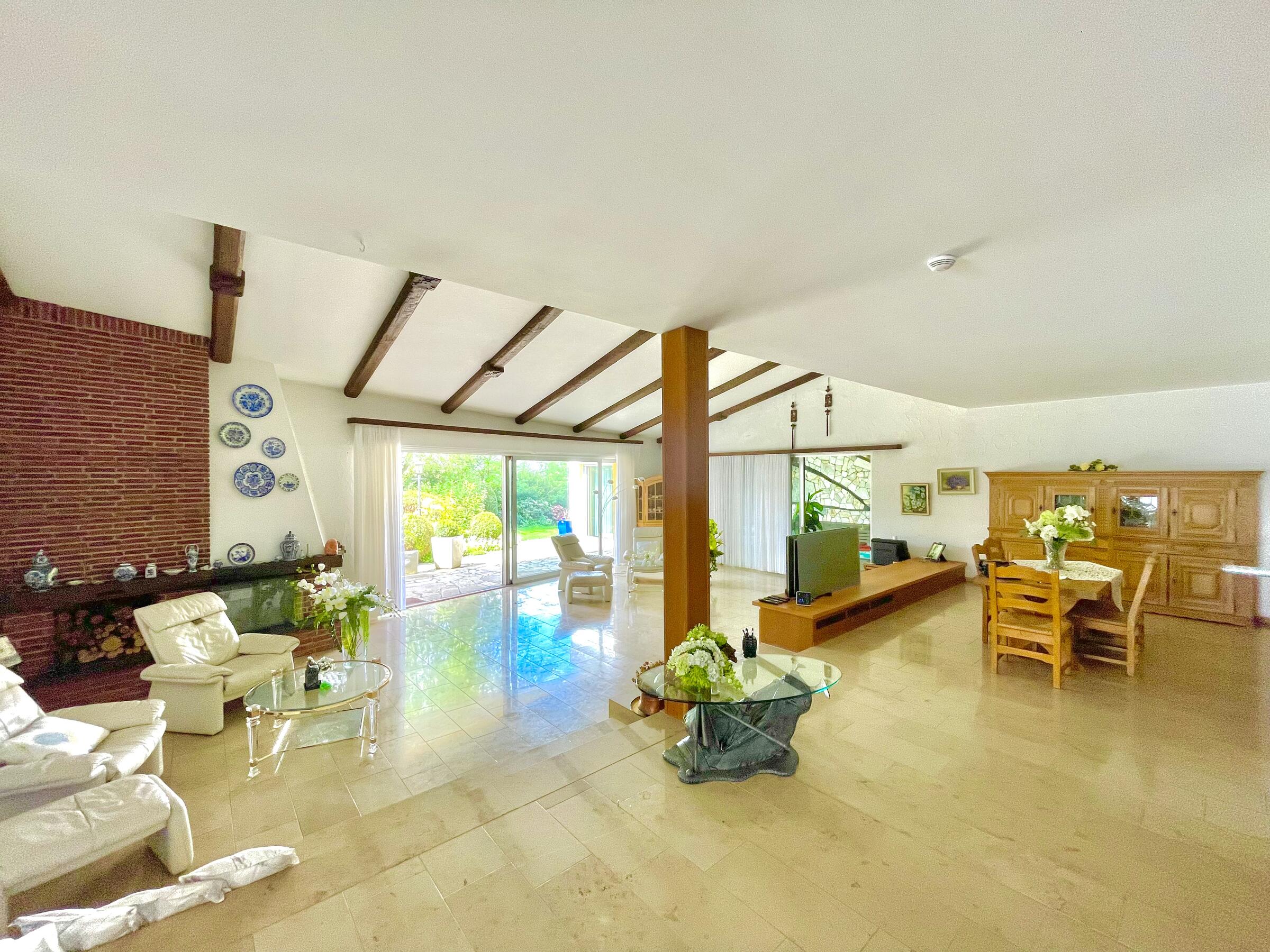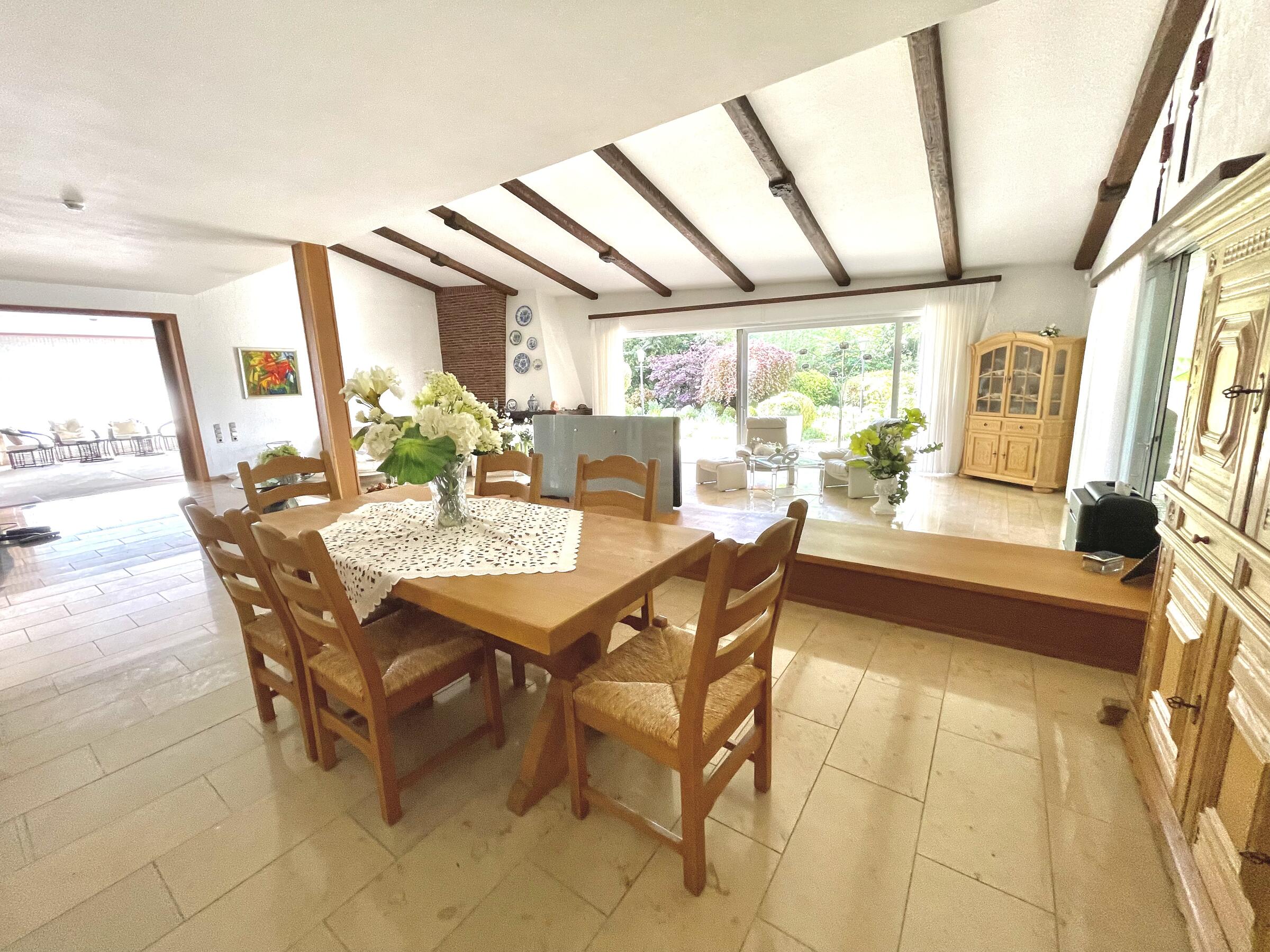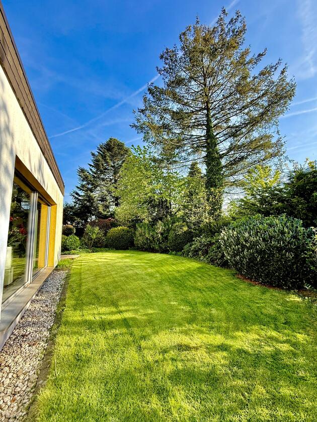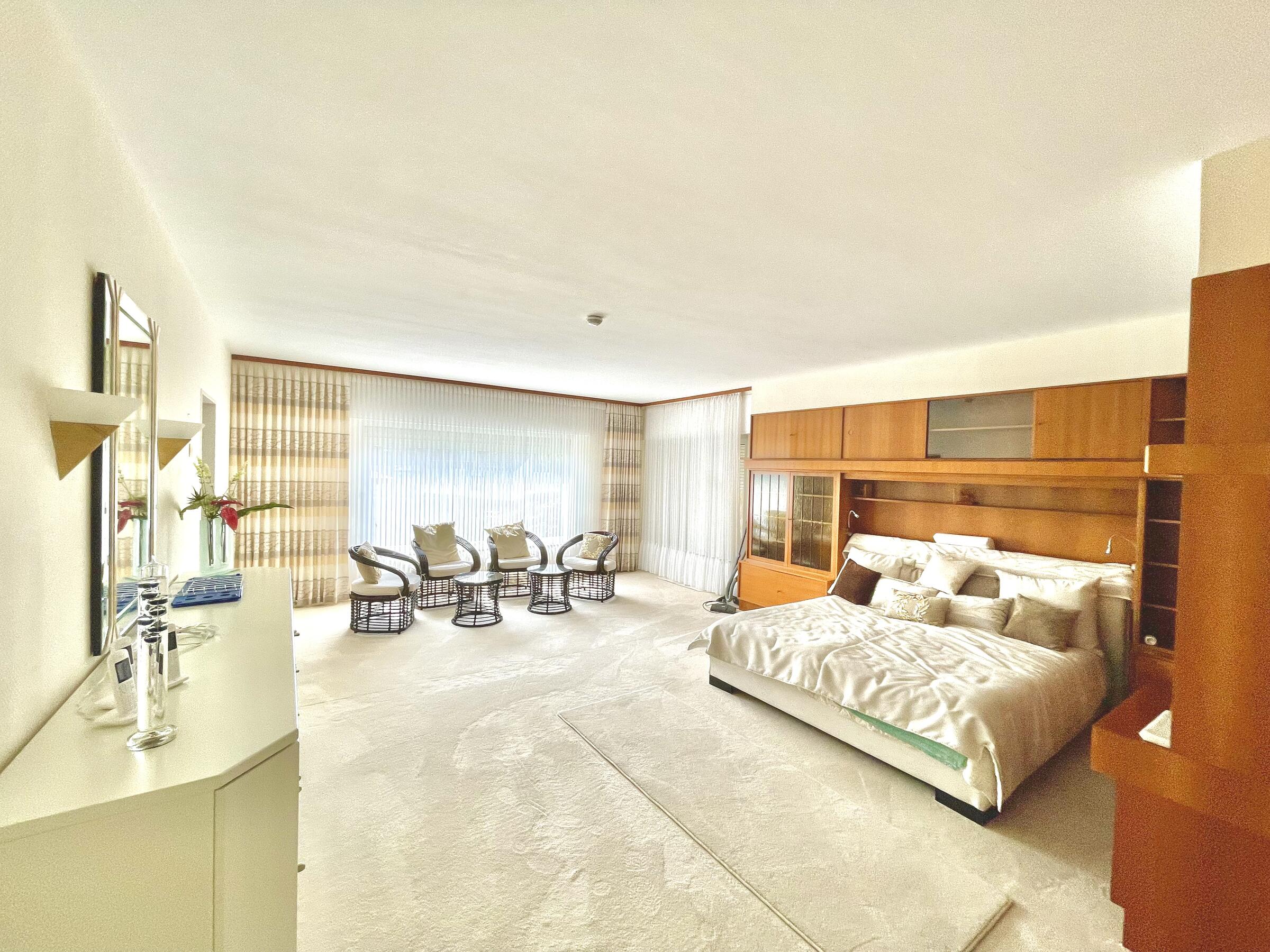 Die freistehende Villa bietet neben seinen großzügigen und hellen Wohnräumen auch einen Wellnessbereich mit großem Indoor-Pool, Sauna und Dampfbad. Das Wohnzimmer und die Terrasse sind nach Südosten ausgerichtet. Durch eine breite Holzschiebetür gelangt man vom Wohnbereich in das Schlafzimmer mit Doppel-Wasserbett und weißem Hochflor-Teppich. Hier befinden sich ebenfalls ein luxuriöses Badezimmer mit hochwertigem Marmor und ein Ankleidezimmer. Das Schlafzimmer hat direkten Zugang zur Terrasse. Die Räume dürfen nach Absprache umgestaltet werden. Alle Fenster des Hauses können mit Rollläden verdunkelt werden. Der Indoor-Pool ist nicht beheizt. Im Außenbereich stehen der große Garten, die Terrasse mit Außenkamin sowie Pkw-Parkplätze zur Verfügung. Weitere kostenfreie Stellflächen, auch für Lkw, befinden sich auf der am Grundstück vorbeiführenden und wenig befahrenen Straße.