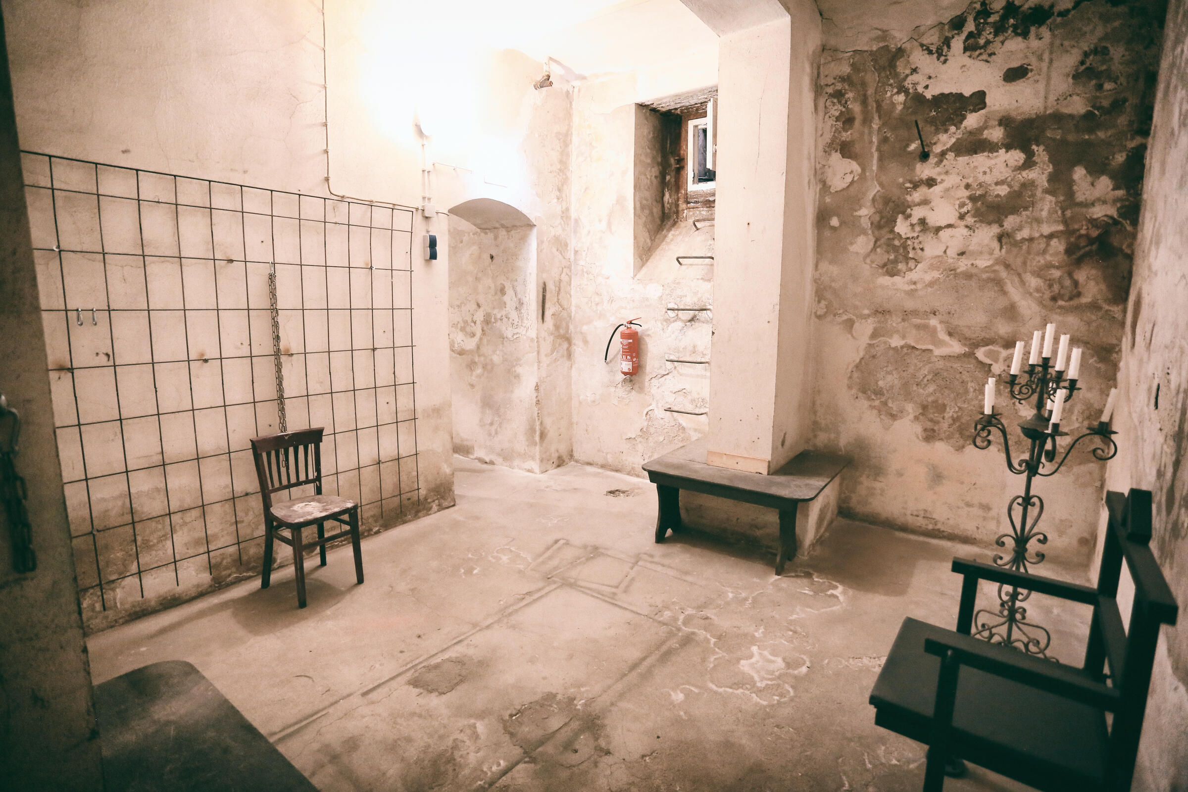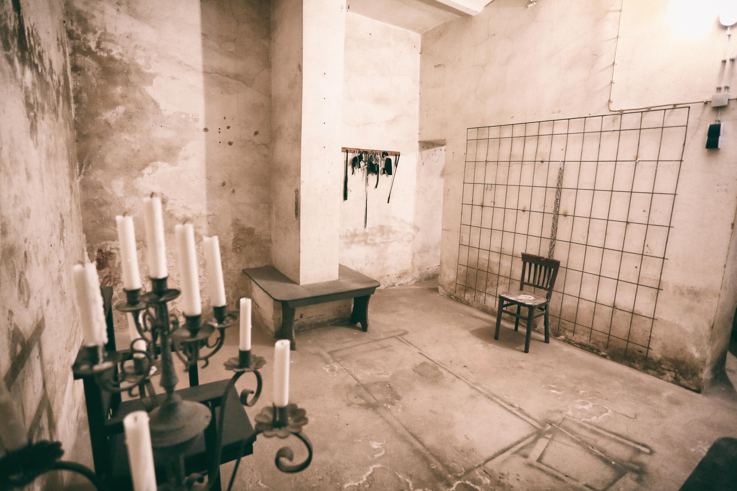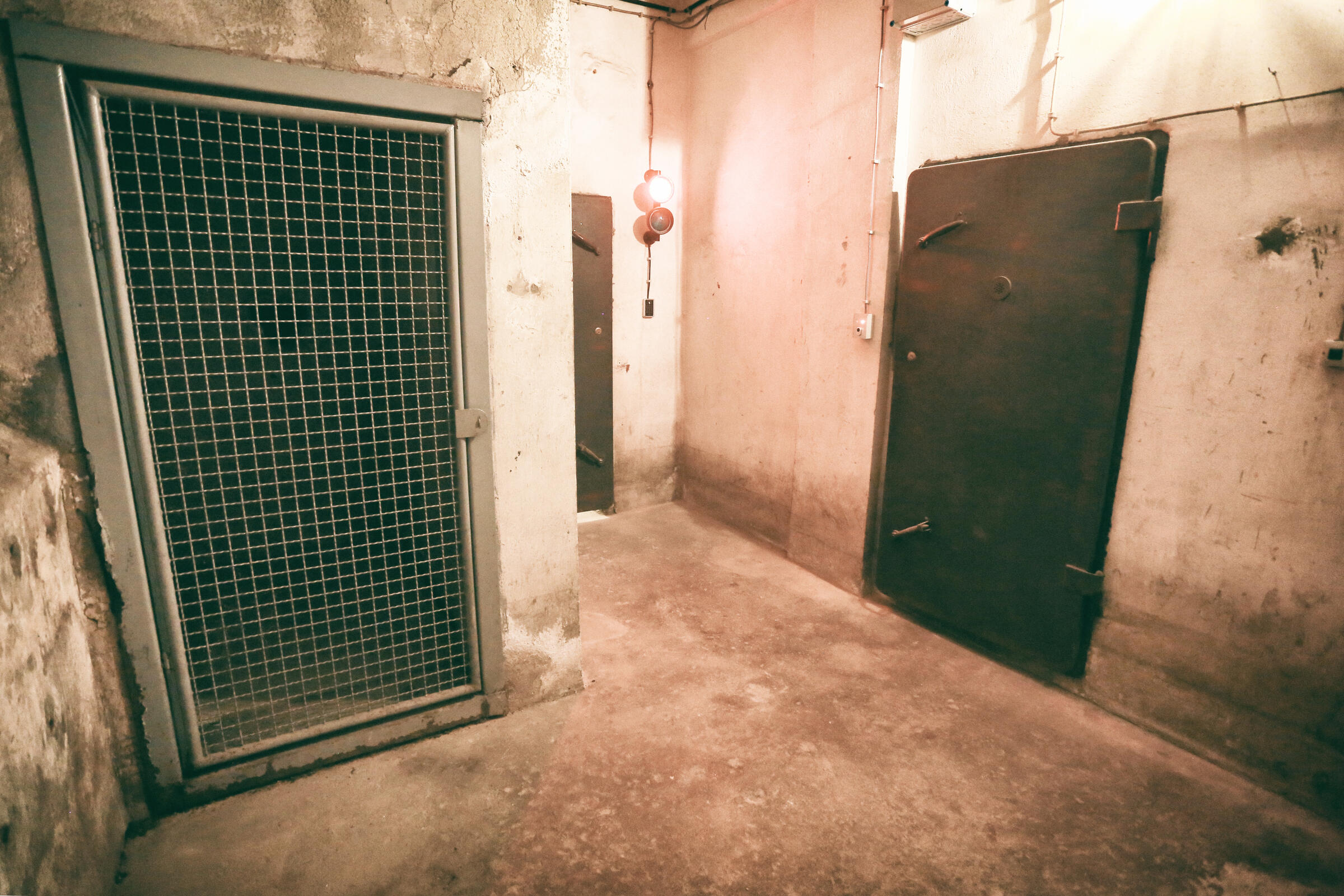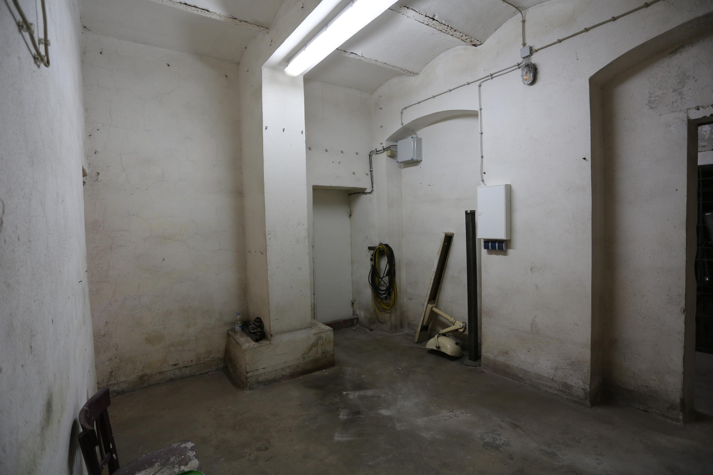 Wir bieten unseren Tiefbunker unter unserem Fotostudio in Köln als Film- und Fotolocation an. Im Keller der Halle befindet sich ein Tiefbunker (ca. 80-90 m²), der von der Halle aus über eine Stahltreppe zu erreichen ist. Dieser besteht aus einem Vorraum ohne Möblierung mit Rohholzboden. Über eine Bunkertüre gelangt man in den eigentlichen Bunkerbereich. Ein Raum des Bunkers ist als Maske und Garderobe ausgebaut. Als Besonderheit gibt es in einem der alten Einbauschränke einen versteckten Kriechgang (begehbar) hinter einer Schranktüre. Ein weiterer Vorraum mit 3 Bunkertüren und einem Gitterverschlag münden in einem Gang, der in 2 weitere Räume führt. Die 2 hinteren Kellerräume werden als Fotostudio für den SM-Bereich genutzt und sind teilmöbliert. Die SM-Möbel sind entfernbar. Der Keller ist durch Bauheizer elektrisch beheizbar und besitzt einen Drehstromanschluss 16 A. Parkplätze vor der Halle sind in reichlicher Anzahl vorhanden.