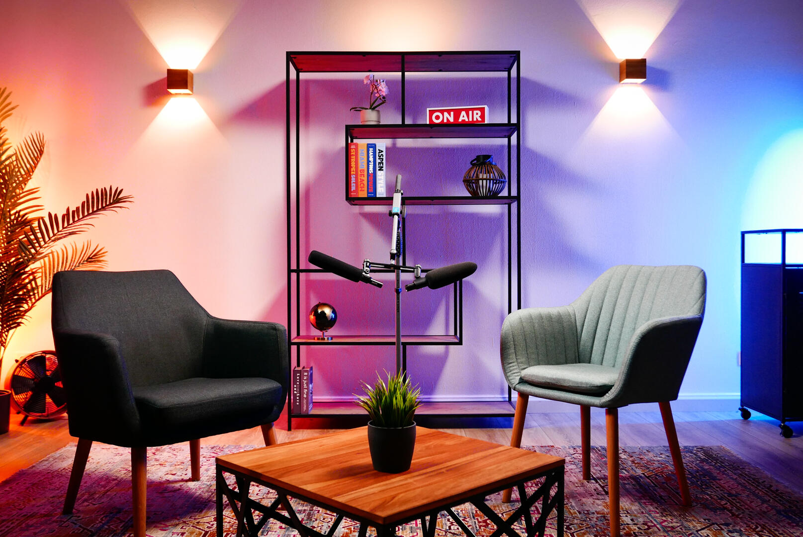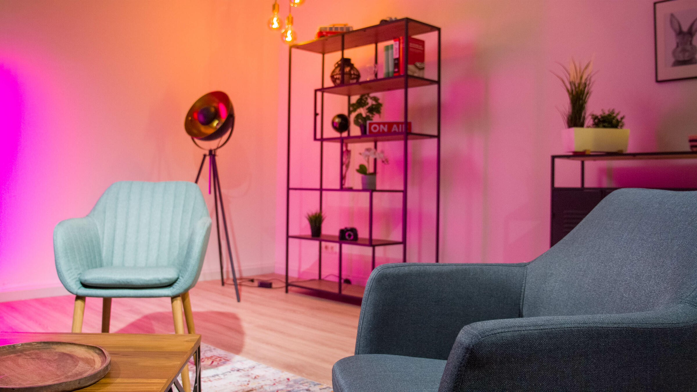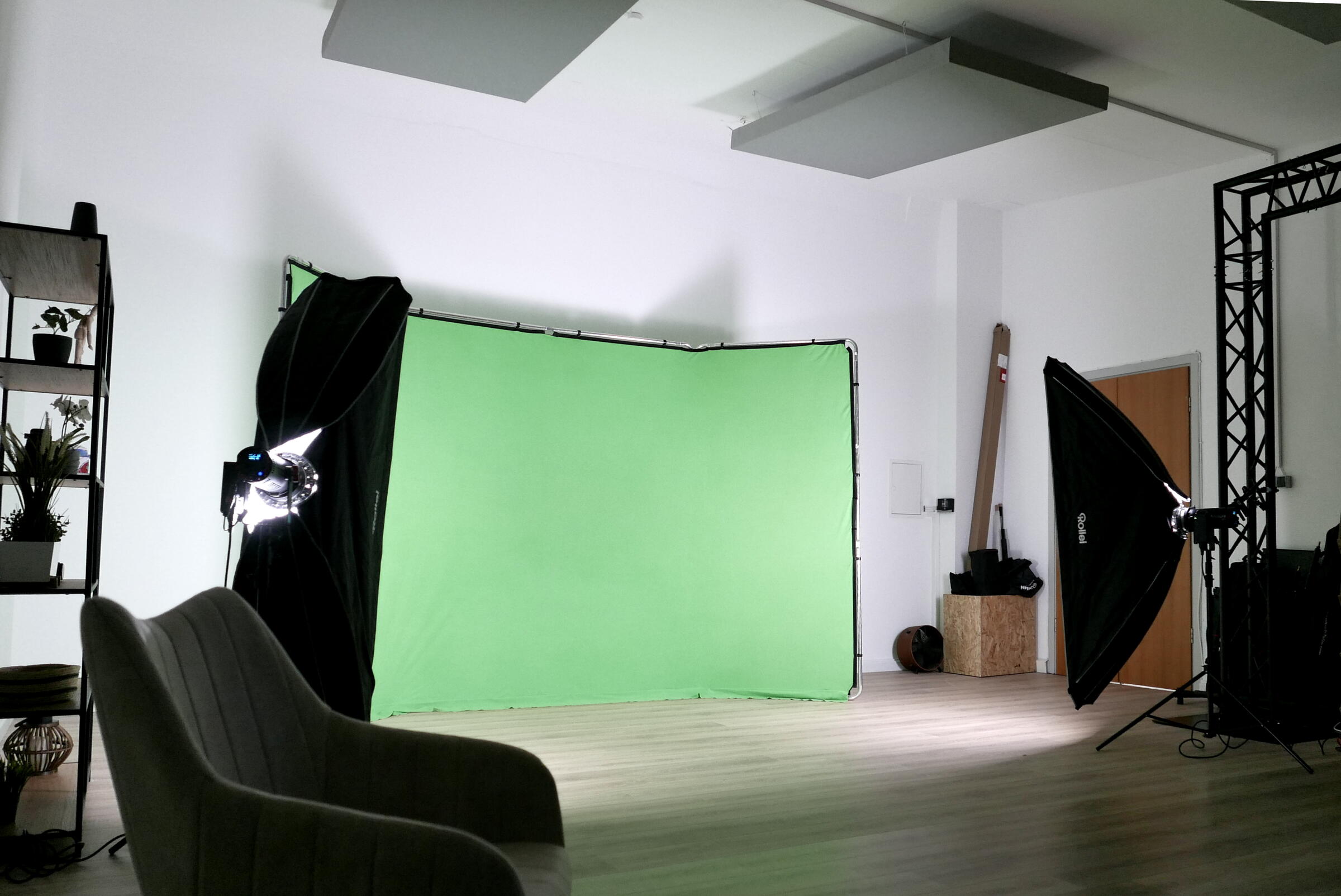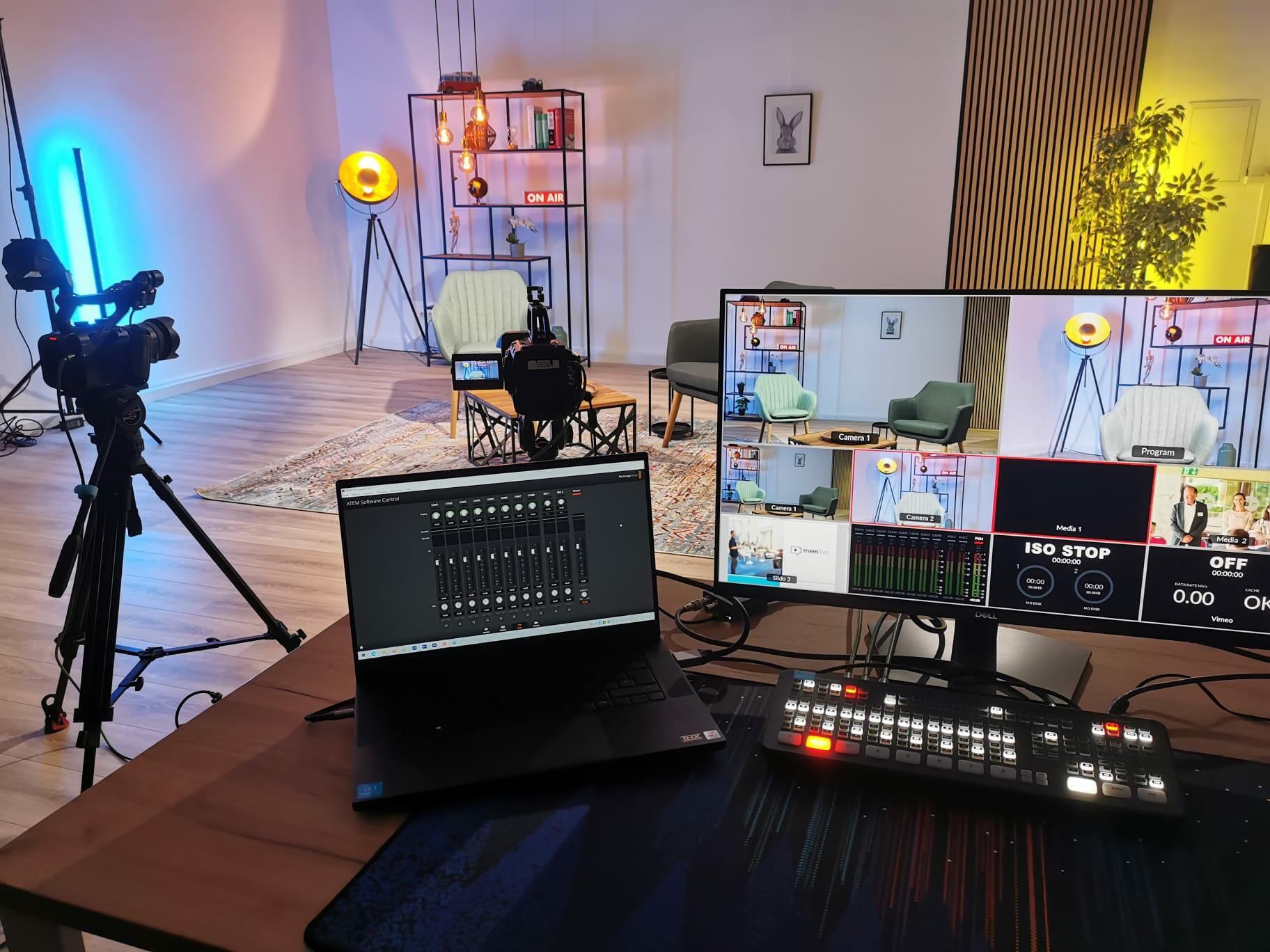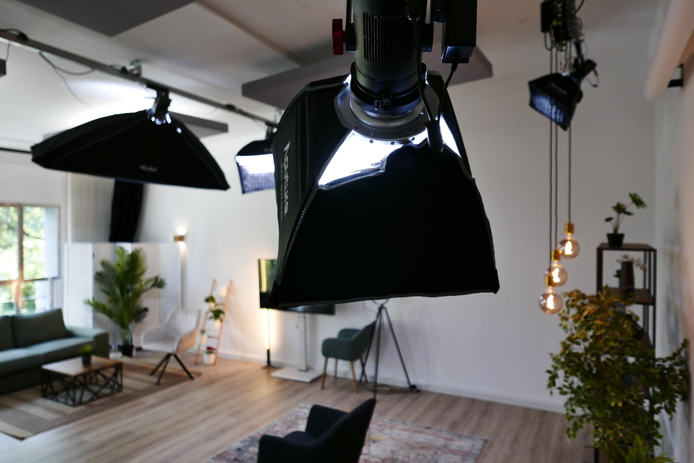 Wir verfügen über eine Auswahl an professionellen Lampen der Marke Aputure, sowie Ton- und Kameratechnik und eine komplette Videoregie.
