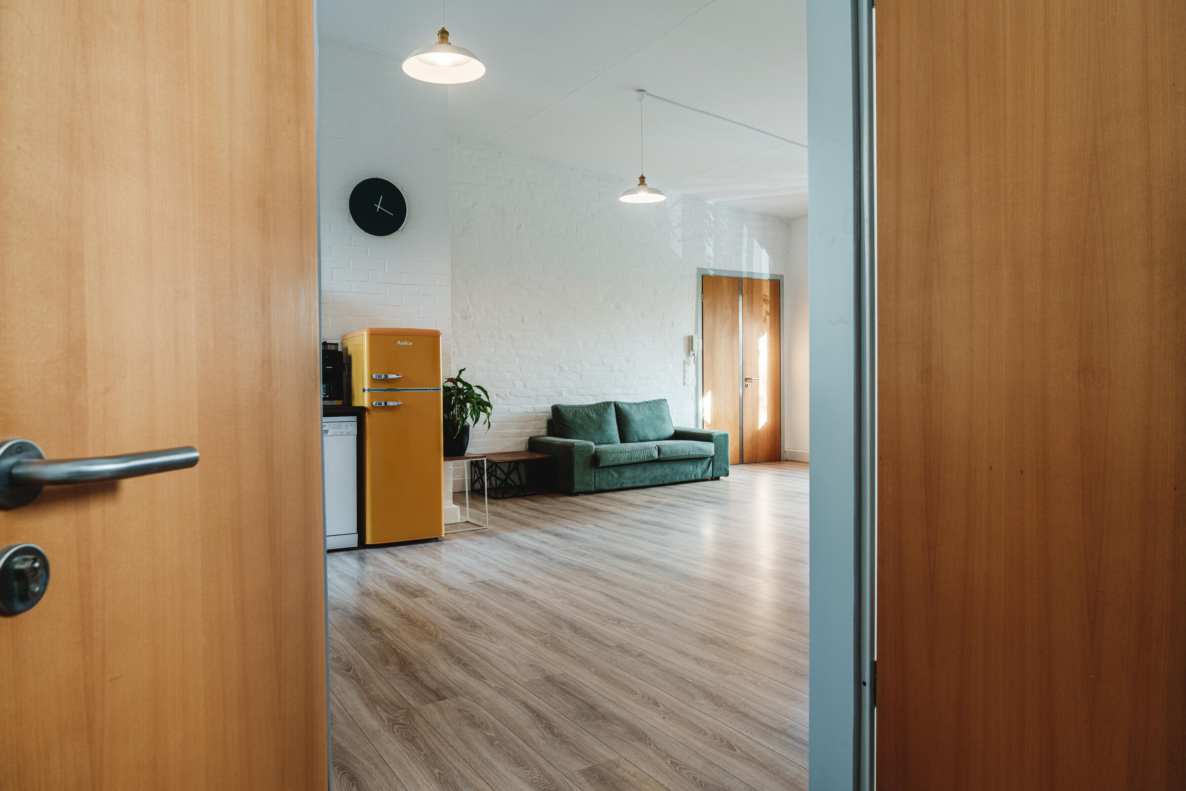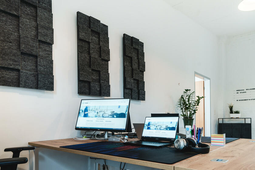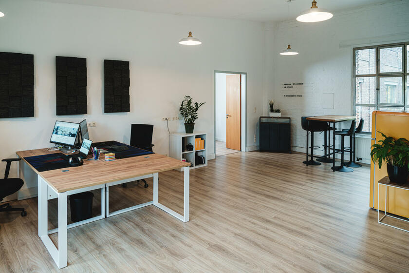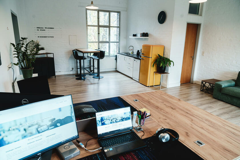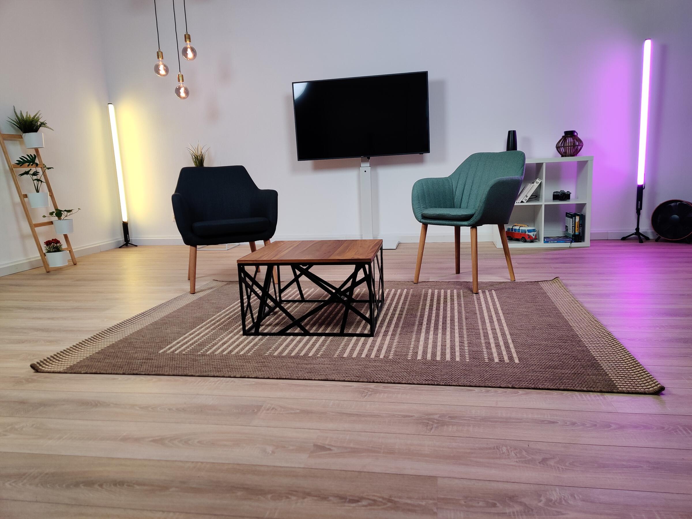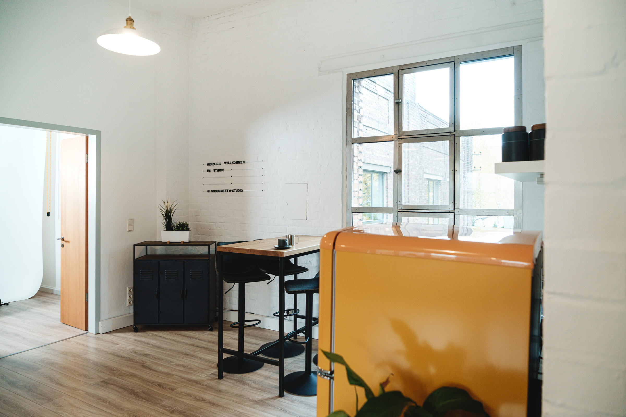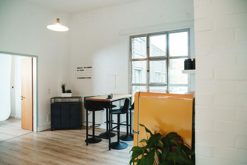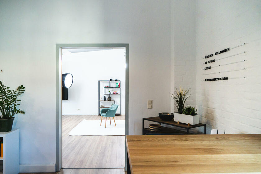 Unser großes lichtdurchflutetes Mietstudio mit 3 m – 3,8 m hohen Decken ist ideal für Foto- und Videoproduktionen geeignet. Für Livestreams können wir eine Glasfaserleitung zur Verfügung stellen. Die Studiofläche ist durch akustische Elemente für die Tonqualität bei Videoproduktionen optimiert worden. Das geräumige Badezimmer bietet die Möglichkeit zum Umkleiden und Schminken. Nutzen Sie verschiedene Requisiten für Ihr Szenenbild. Auch unsere Videotechnik kann hinzugebucht werden. Das Studio bietet verschiedene Möbel und Dekoartikel. Der vordere Raum bietet viel Platz für Pausen. In der offenen Küche stellen wir Ihnen gerne Kaffee und weitere Getränke bereit.