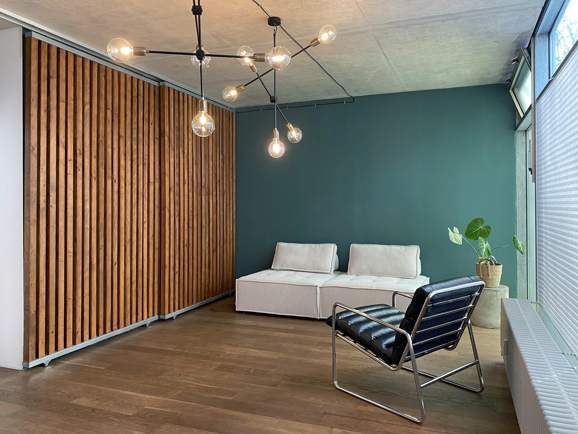 Das Loftstudio befindet sich in Köln-Ehrenfeld. Charakteristisch sind Tageslicht, Sichtbeton, teilweise bis zu 6 m hohe Decken und Holzelemente. Das Design der Inneneinrichtung ist an die Architektur des von Arno Brandlhuber entworfenen Hauses angelehnt. Die Schiebetüren aus Holz machen es möglich den Raum zu teilen. Ein Umkleideraum, ein Badezimmer sowie ein Loungebereich mit kleiner Teeküche stehen ebenfalls zur Verfügung. Das Studio ist optimal als Fotostudio oder auch für kleine Video- und Filmproduktionen geeignet, da sich schnell eine wohnliche Atmosphäre schaffen lässt. Das Studio befindet sich im Erdgeschoss mit direktem Zugängen zur Straße und zum Hinterhof.