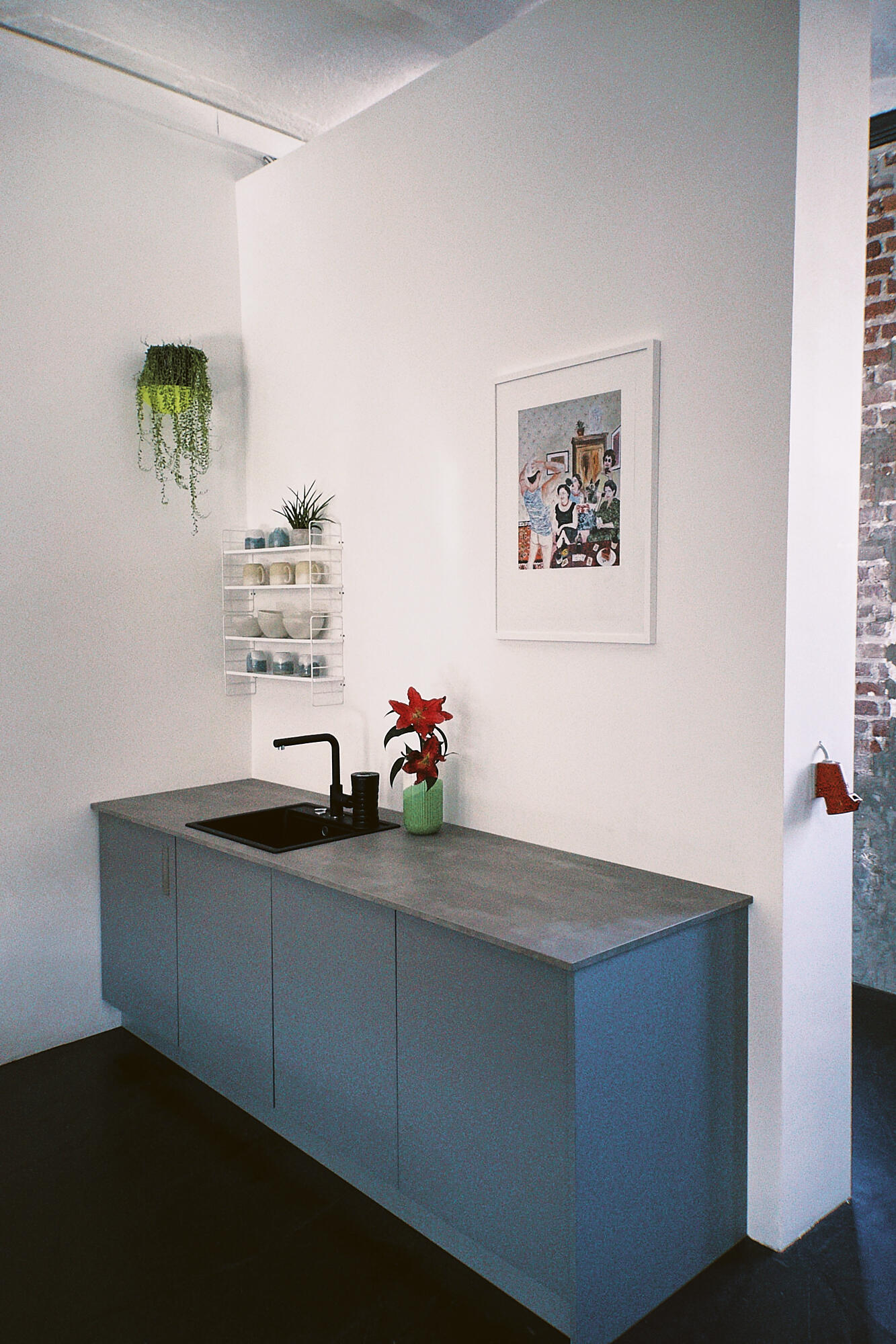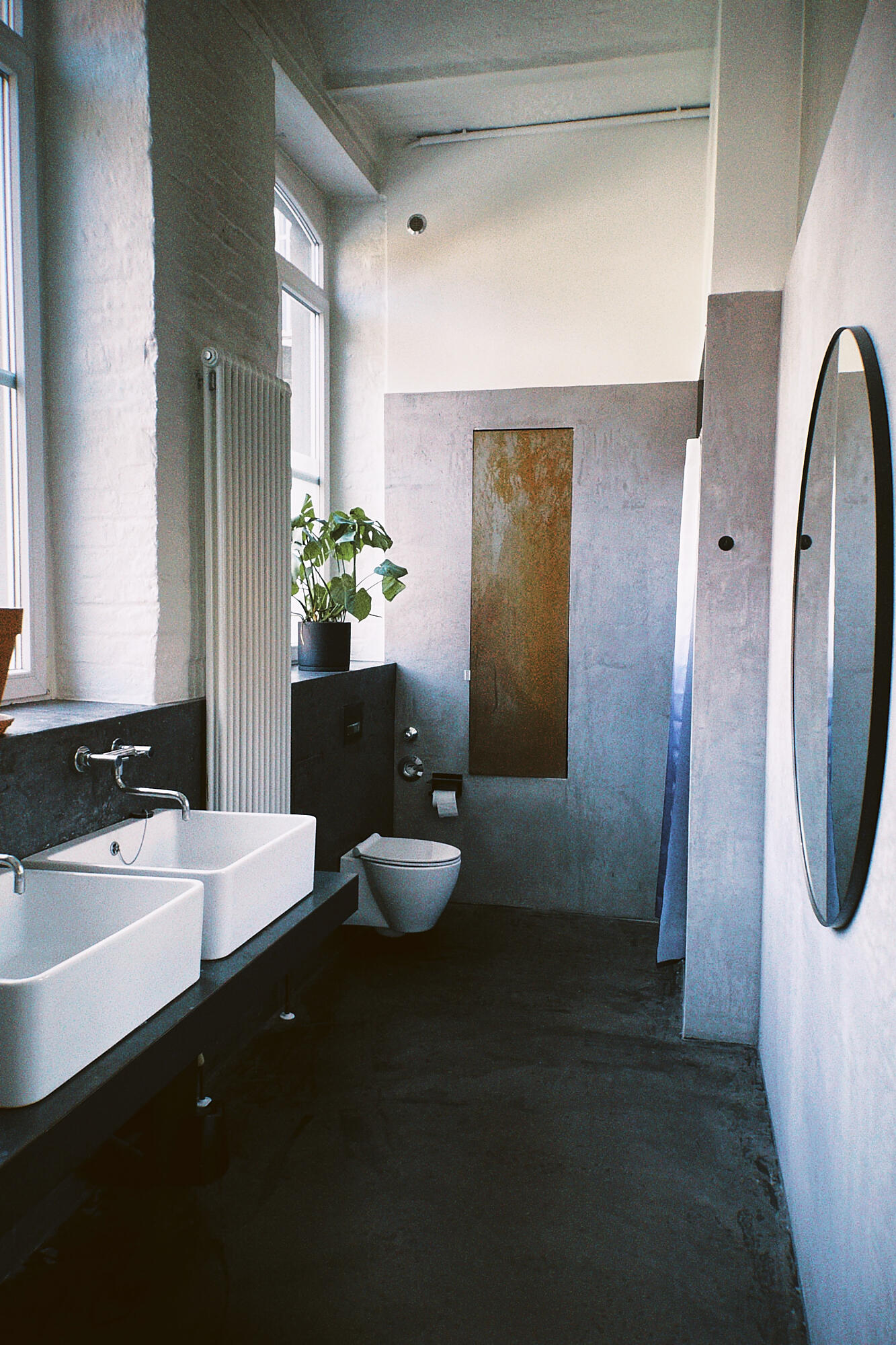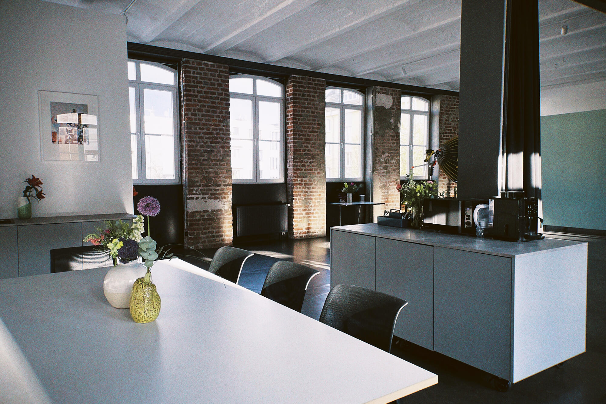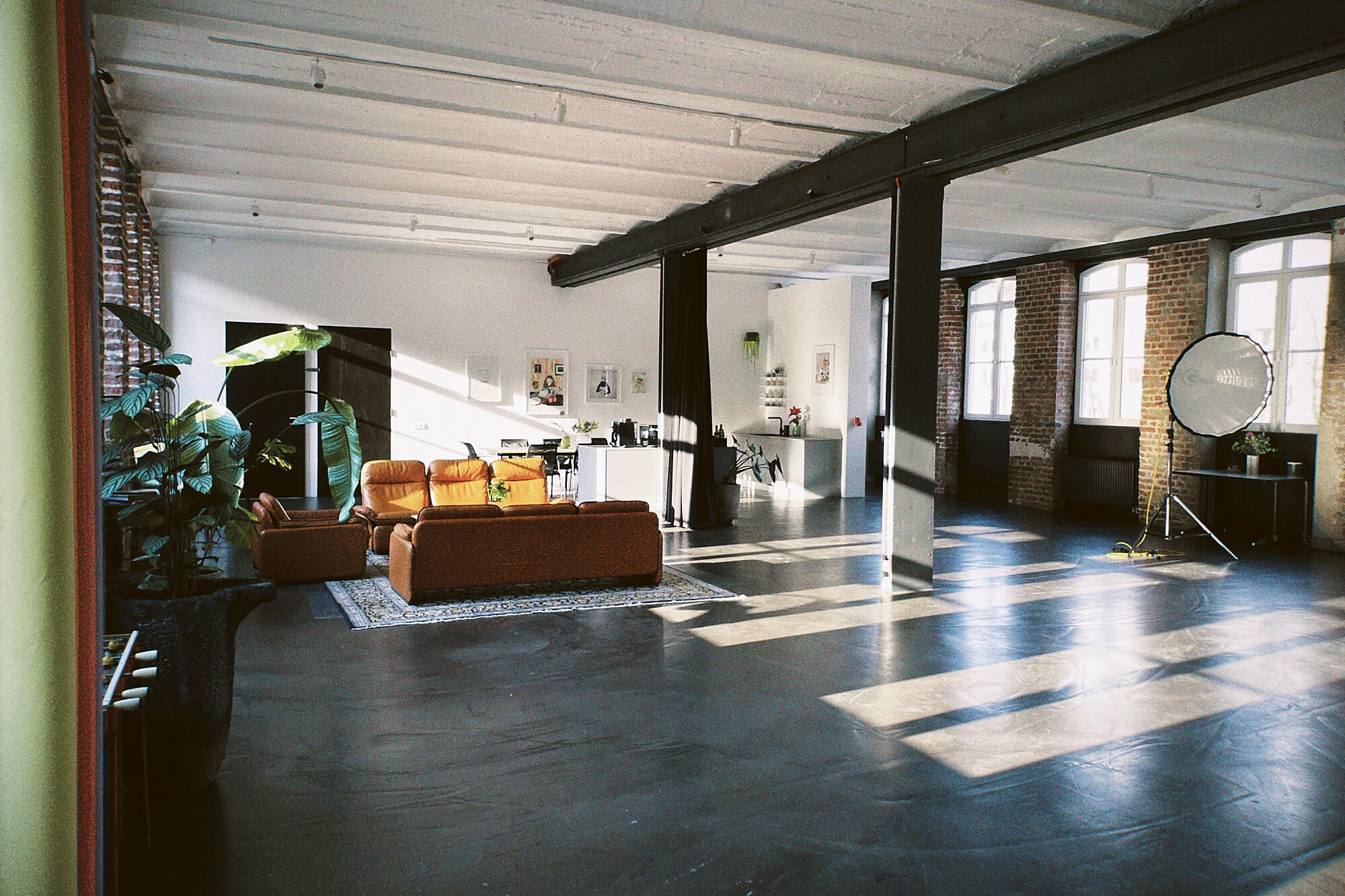 Unser Loftstudio befindet sich im Kölner Norden im Stadtteil Nippes. Auf ca. 200 m² Fläche bietet unser Studio viel Tageslicht von zwei Seiten. Die Deckenhöhe (preussische Kappendecke) beträgt 3,65 m. Schöner, dunkelgrauer Industrieboden auf der gesamten Fläche, Backsteinwände zwischen den Fenstern, Stahlträger unter der Decke - ein tolles Loft mit viel Freiheit für jegliche Produktionen inklusive Besprechungstisch, Lounge-Ecke, Bad mit Dusche, Styling-Bereich, Haare und Make-Up Bereich, Starkstrom 16 A. Die Räume sind leider nicht oder nur sehr eingeschränkt O-Ton-tauglich.