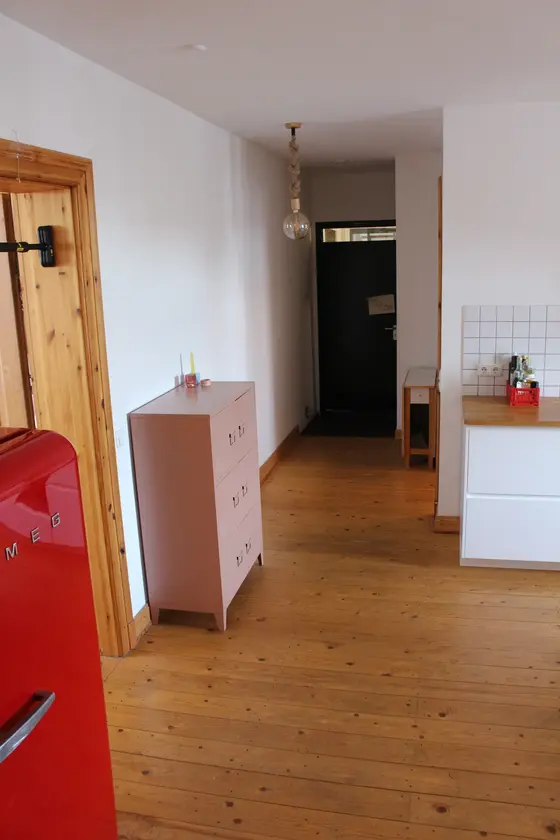 Die helle und moderne Maisonettewohnung im charmanten Kölner Stadtteil Sülz bietet großzügige Räumlichkeiten mit durchgehenden Massivholzdielen und eine voll ausgestattete Wohnküche, die vielseitig nutzbar ist. Während das Erdgeschoss mit Wohnzimmer, Schlafzimmer und Flur als Motiv dient, bietet der obere Bereich mit Arbeitsplatz und separatem Bad einen Rückzugsort für das Team. Mit Hilfe der Jalousien im Wohnzimmer lassen sich die Lichtverhältnisse optimal steuern. Die Wohnung kann nach Absprache individuell umgeräumt und an Produktionsvorgaben angepasst werden. Parkplätze sind vor dem Wohnhaus auf der vorbeiführenden Straße zu finden.