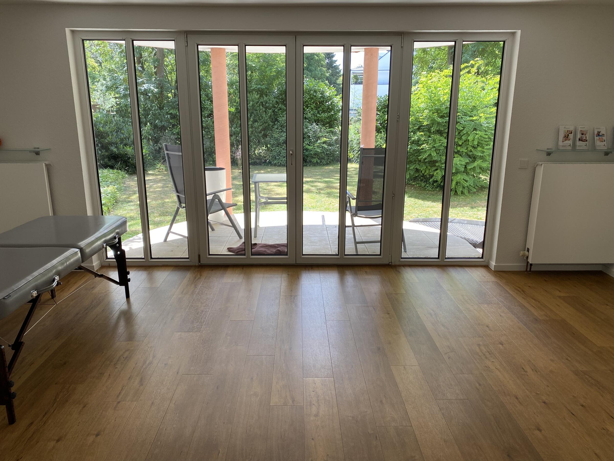 Unsere Praxis befindet sich in einem schönen freistehenden Mehrparteienhaus mitten in Köln-Lindenthal und unmittelbar gegenüber des Stadtwaldes. Über die Terrasse ist dieser ebenerdig begehbar und damit auch für Rollstuhlfahrer gut zu erreichen. Parkmöglichkeiten direkt auf dem Grundstück sind leider nicht vorhanden. Es kann jedoch im nahe gelegenen Umfeld auf öffentlichen Parkplätzen geparkt werden. Die Praxis verfügt derzeit über vier große, helle und freundliche Behandlungszimmer im Erdgeschoss. Zudem steht ein großer zusätzlicher Raum, der für Kurse bei uns genutzt wird, zur Verfügung.
