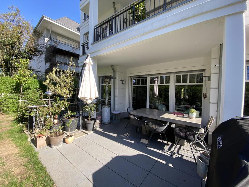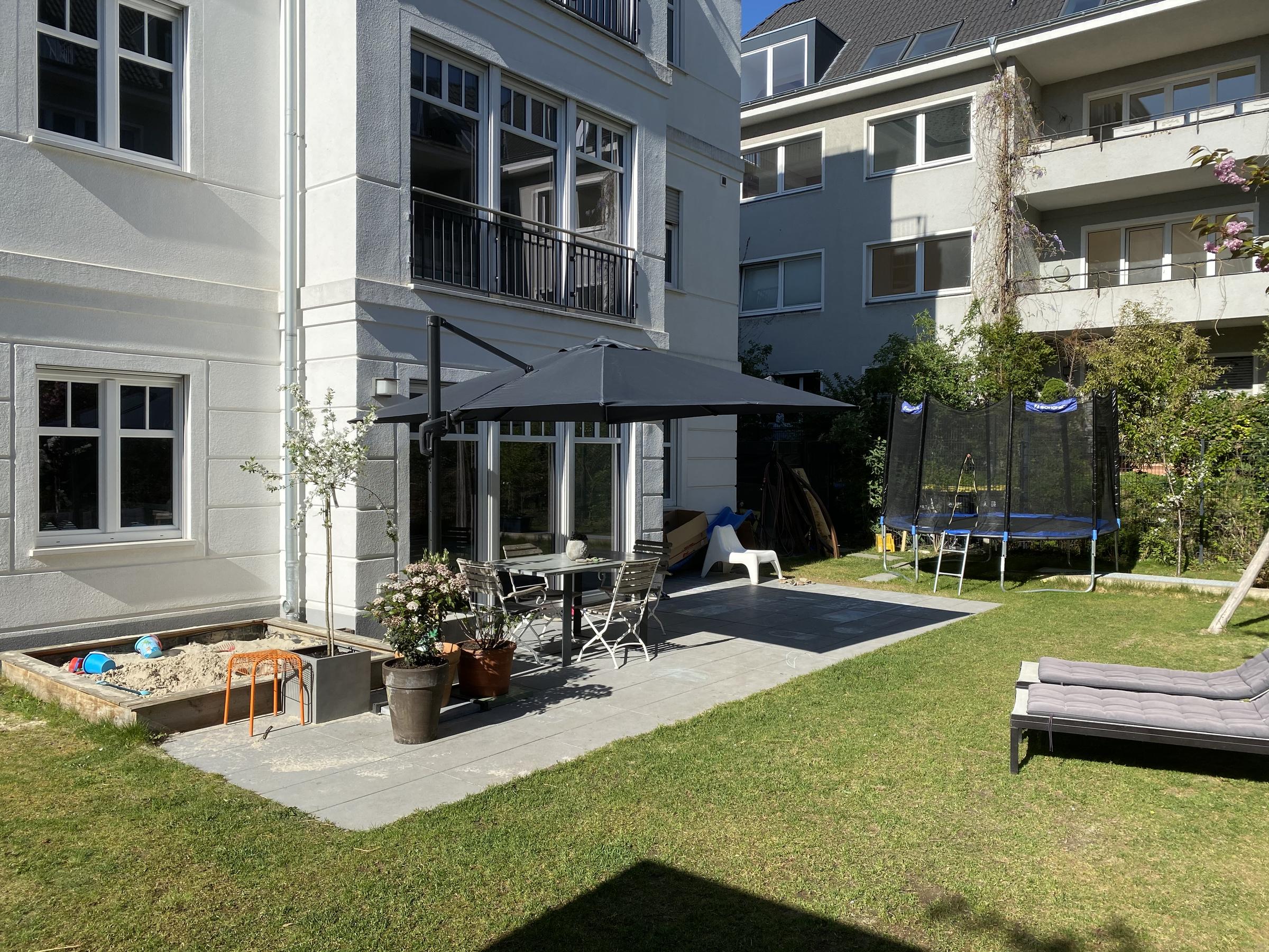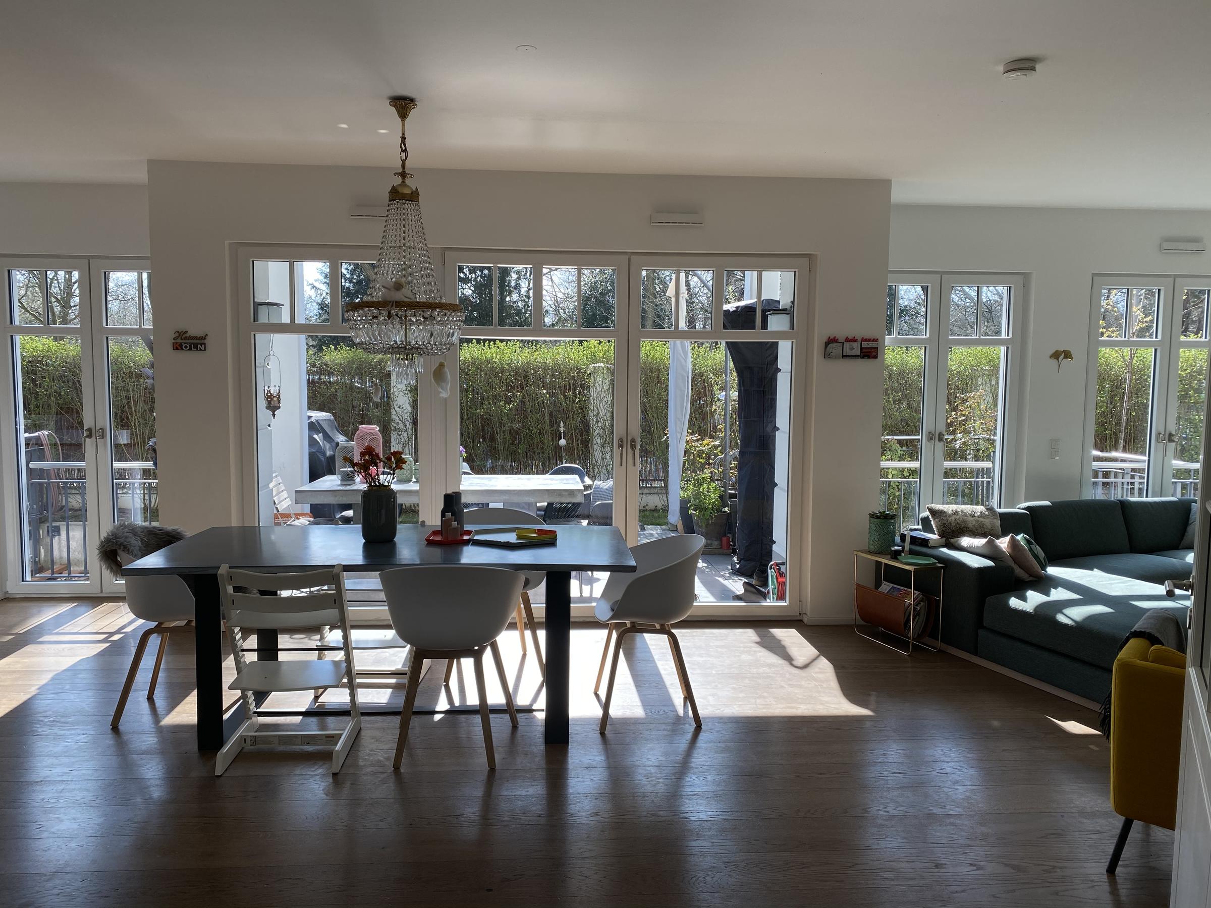 Die 190 m² große Wohnung liegt im Herzen der Kölner Südstadt und erstreckt sich über zwei Ebenen. Im lichtdurchfluteten Erdgeschoss mit vielen bodentiefen Fenstern, befindet sich eine moderne offene Küche mit angeschlossenem Wohn- und Essbereich und Zugang zu einer Terrasse. Über einen großzügigen Flur gelangt man in das Schlafzimmer mit einem hellen Badezimmer und in das Kinderzimmer. Diese Zimmer grenzen an einen Garten. Im Souterrain befinden sich zwei weitere Räume und ein zweites Tageslichtbad. Beide Ebenen haben einen Zugang über den Hausflur mit Aufzug. Die Wohnung ist hochwertig und modern ausgestattet.