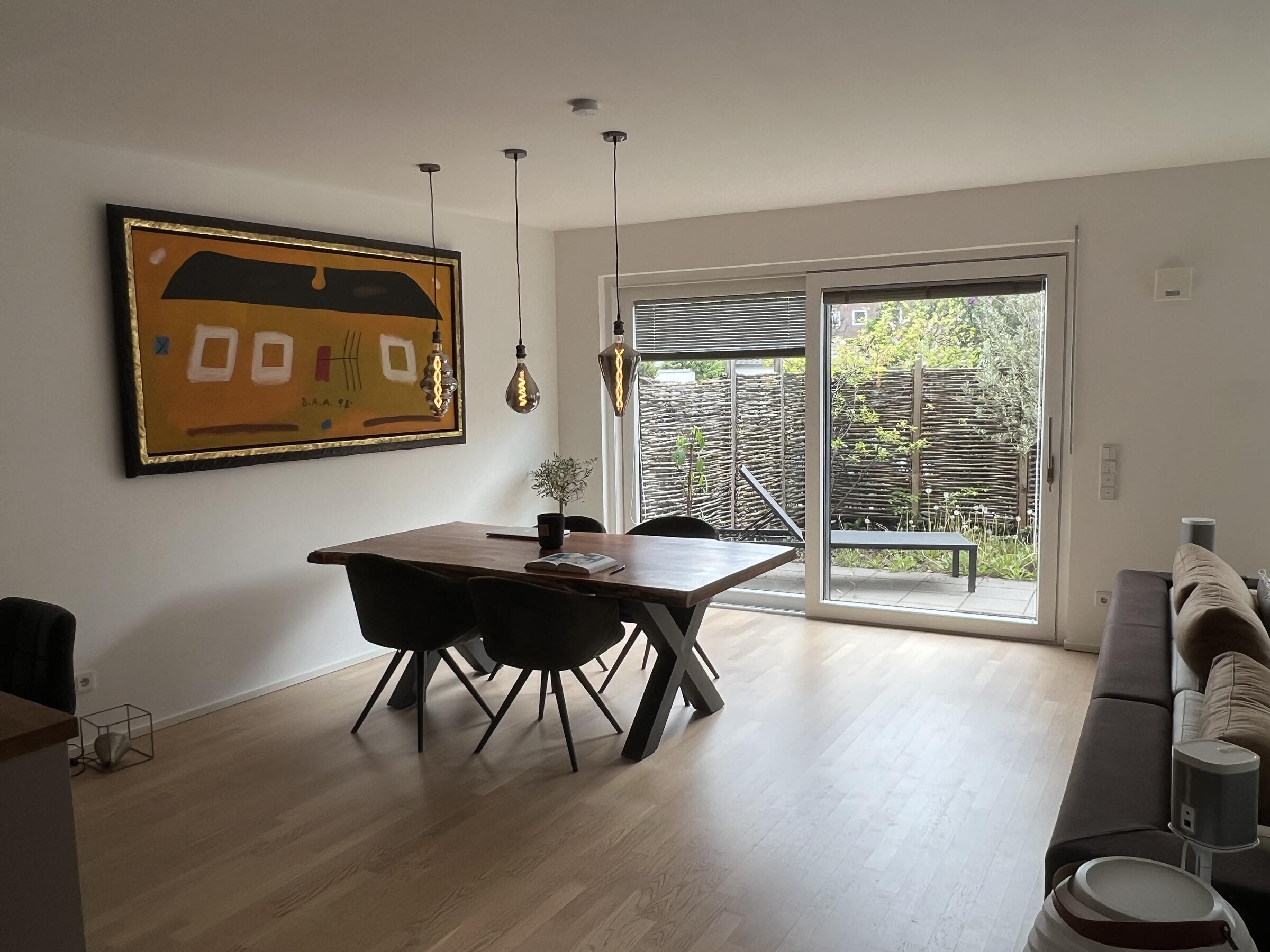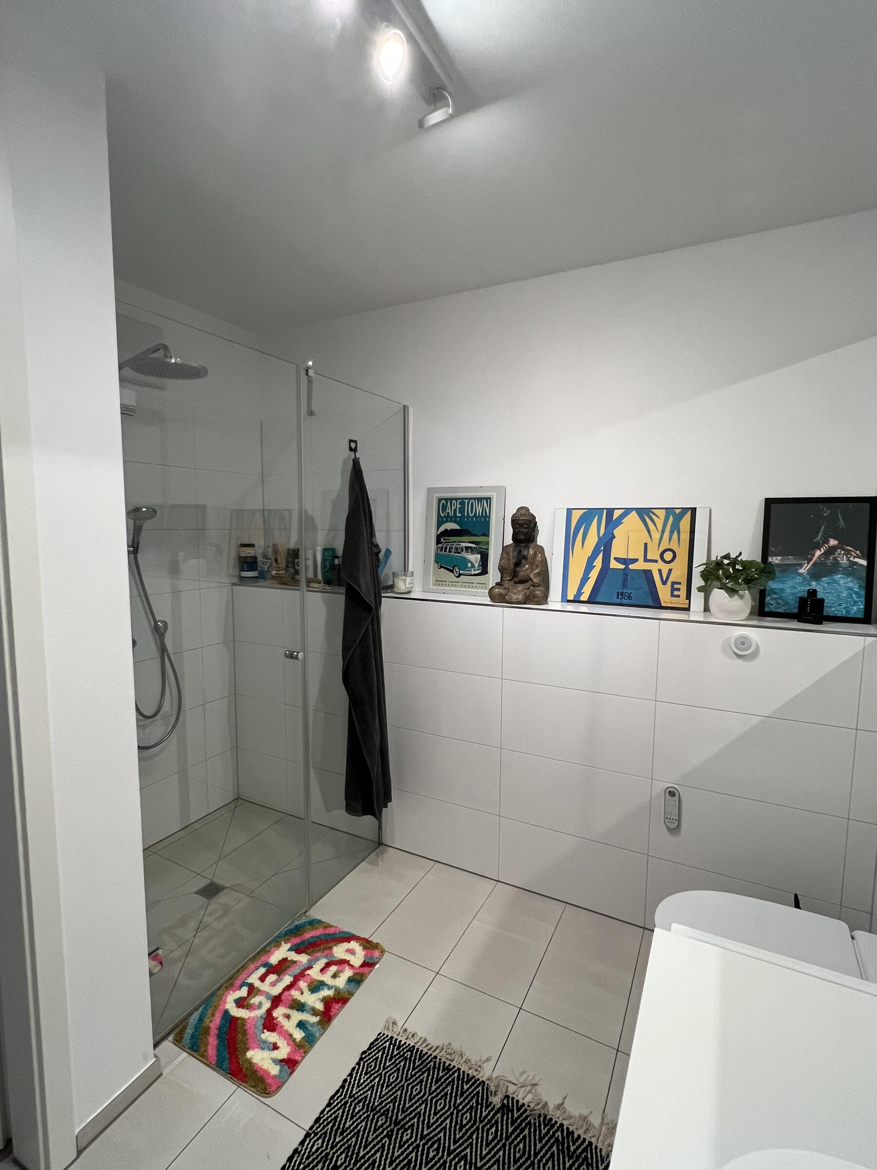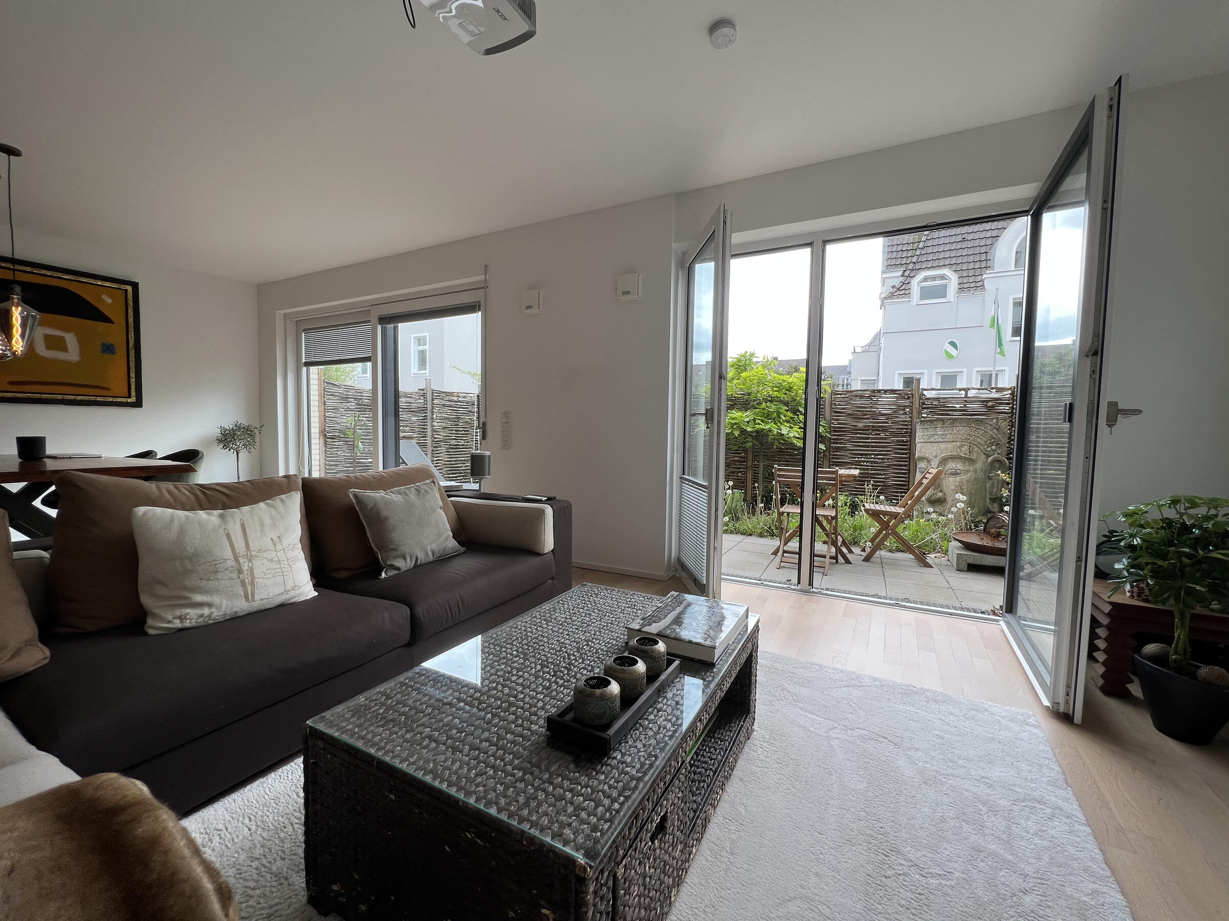 Meine moderne Neubauwohnung befindet sich in einem Wohnhaus in Köln-Lindenthal, direkt am Stadtgarten. Der Wohnräume sind offen gestaltet. Die Küche ist in den Wohnbereich übergangslos integriert und verfügt unter anderem über einen freistehenden Küchenblock. Die Böden der Wohnräume sind mit Holzparkett ausgelegt. Das Badezimmer ist gefliest. Die Einrichtung kann nach Absprache aus- und umgeräumt werden. Alle Räume können mit elektronischen Rollläden verdunkelt werden. Im Außenbereich kann die Terrasse mit einer Markise überdeckt werden. Es kann ein Tiefgaragenstellplatz genutzt werden. Weitere Parkplätze finden sich in naher Umgebung auf der Straße.