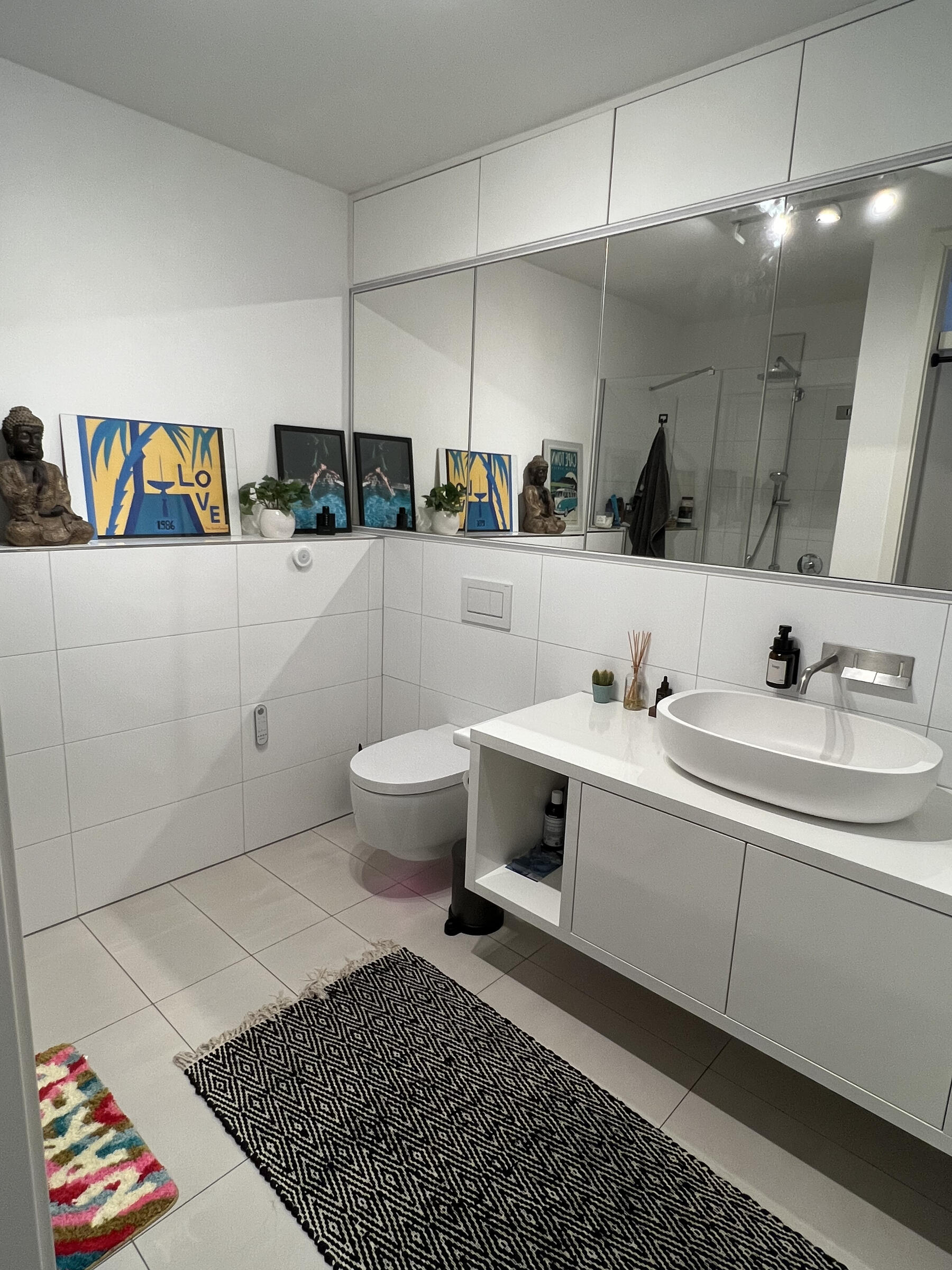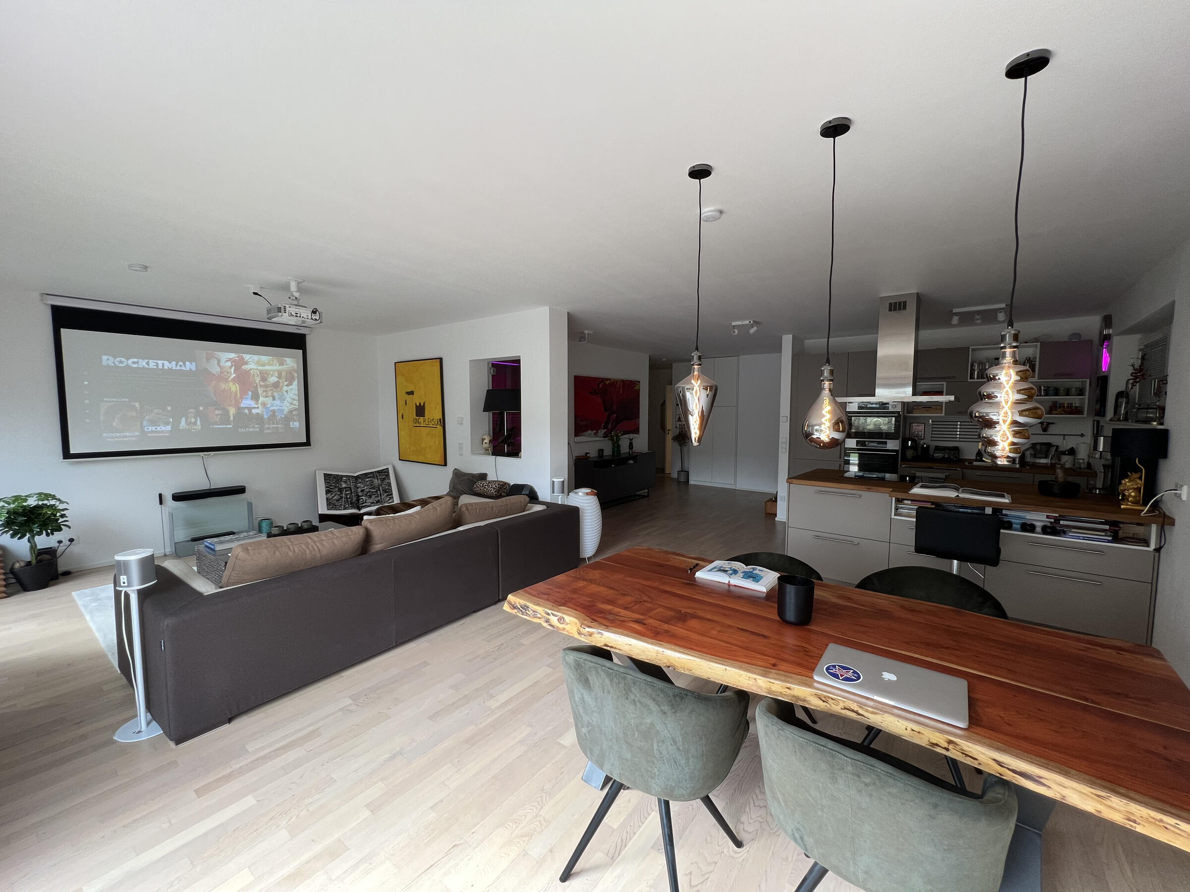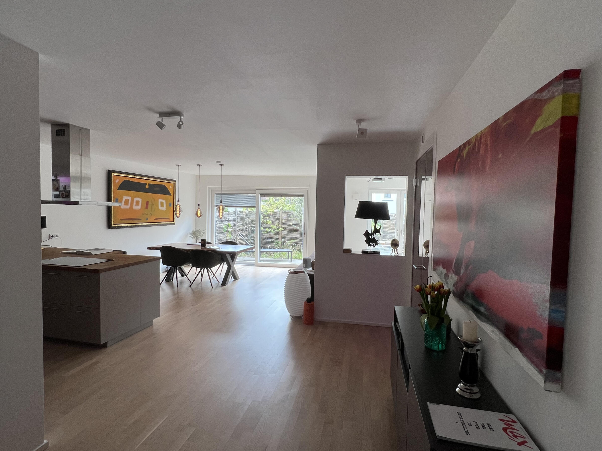Meine moderne Neubauwohnung befindet sich in einem Wohnhaus in Köln-Lindenthal, direkt am Stadtgarten. Der Wohnräume sind offen gestaltet. Die Küche ist in den Wohnbereich übergangslos integriert und verfügt unter anderem über einen freistehenden Küchenblock. Die Böden der Wohnräume sind mit Holzparkett ausgelegt. Das Badezimmer ist gefliest. Die Einrichtung kann nach Absprache aus- und umgeräumt werden. Alle Räume können mit elektronischen Rollläden verdunkelt werden. Im Außenbereich kann die Terrasse mit einer Markise überdeckt werden. Es kann ein Tiefgaragenstellplatz genutzt werden. Weitere Parkplätze finden sich in naher Umgebung auf der Straße.