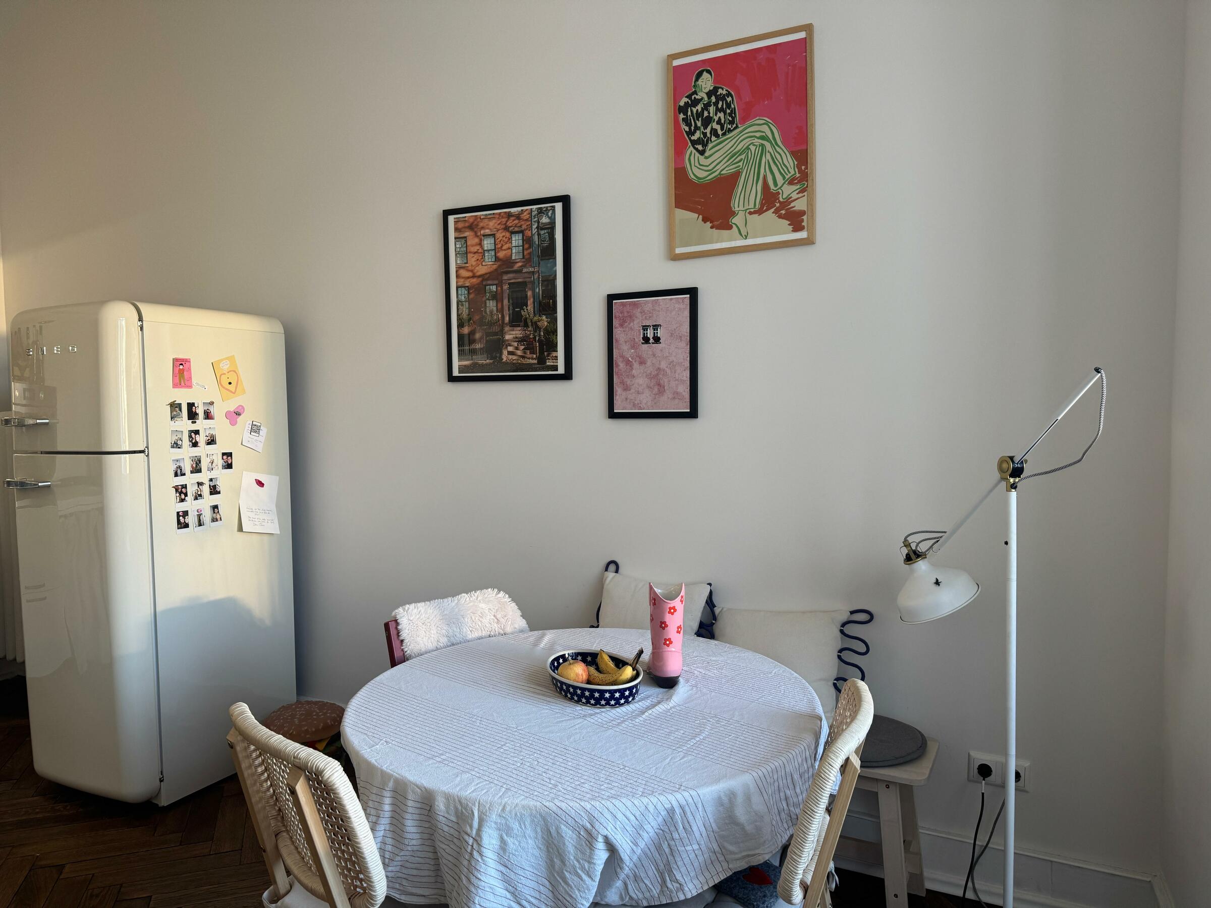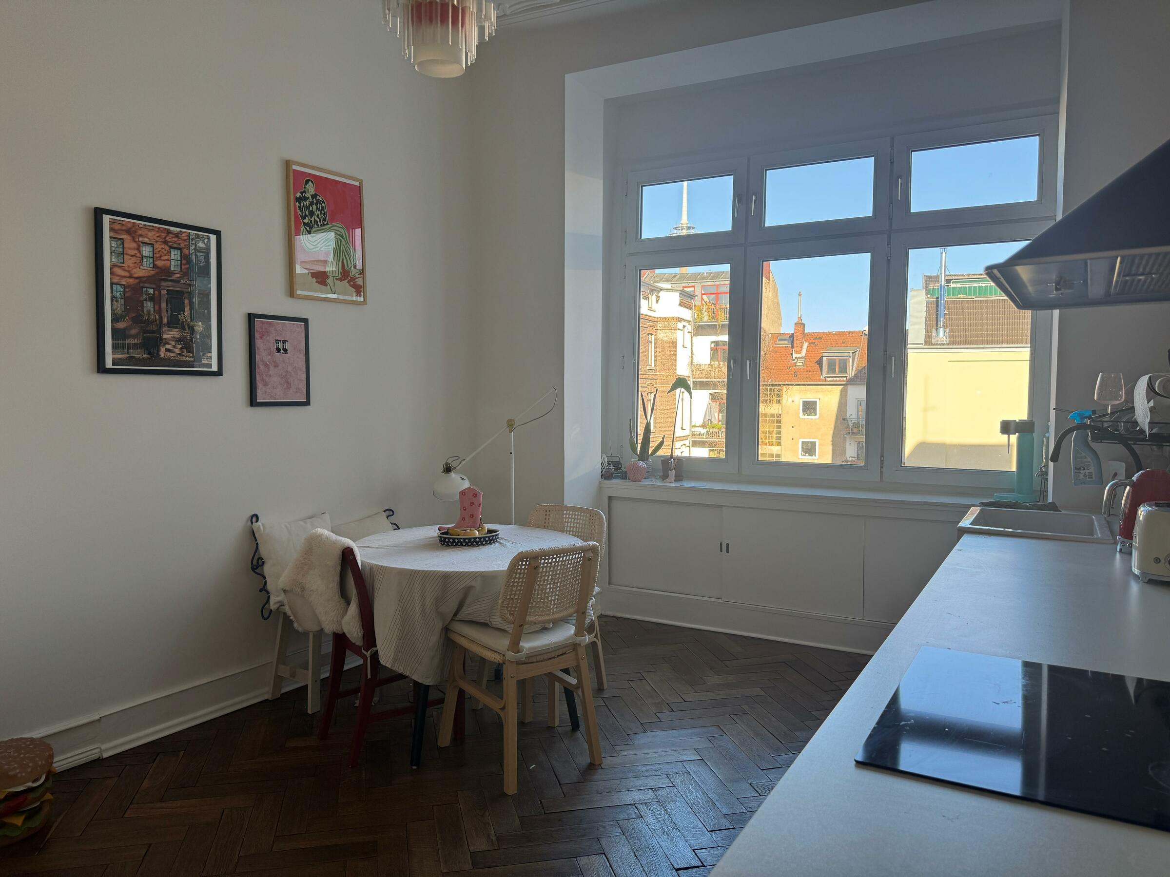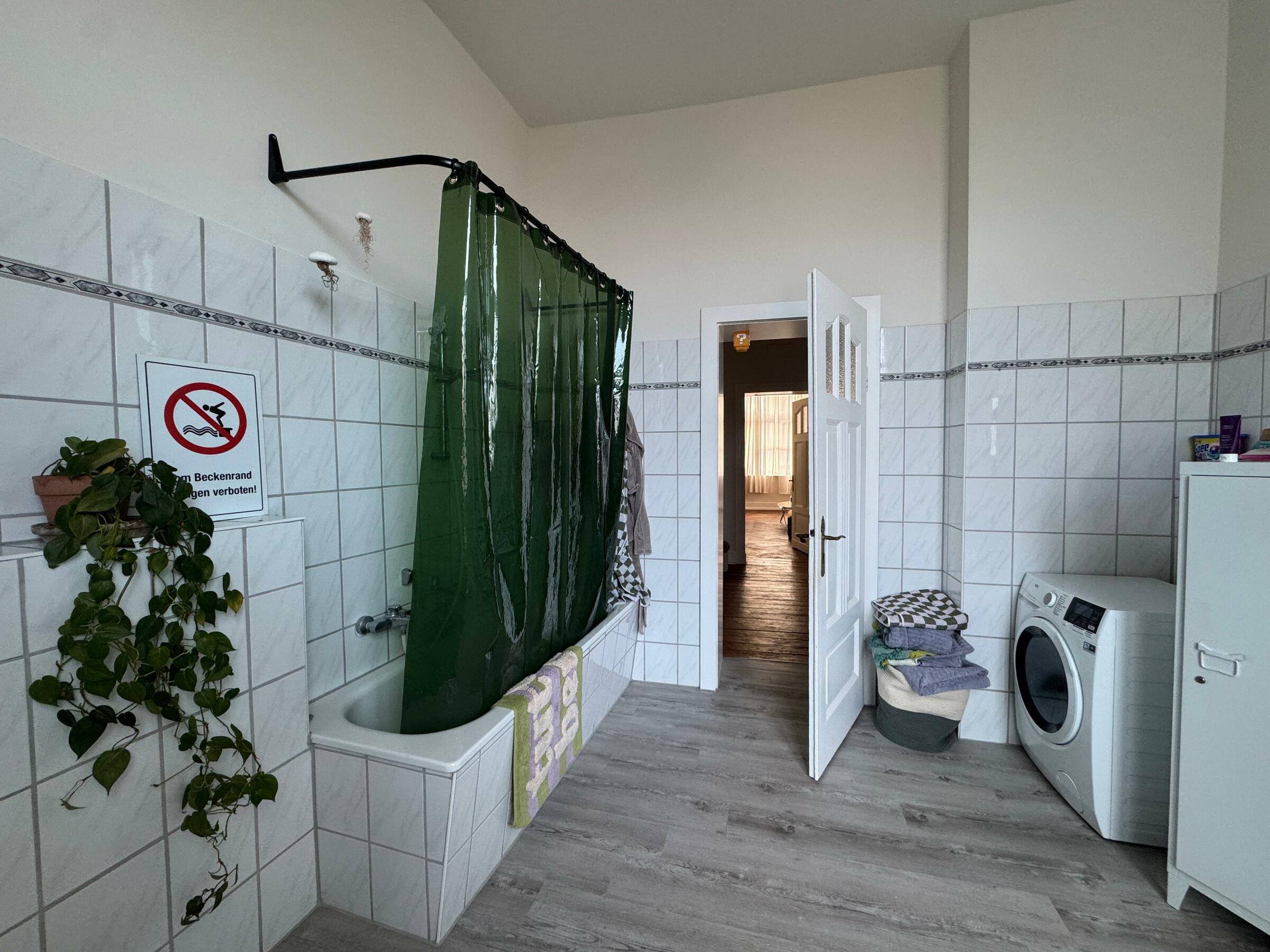 Die Altbauwohnung befindet sich im 3. Obergeschoss eines Wohnhauses in einer ruhigen Umgebung. Die Räume sind zeitgemäß und funktional möbliert und bieten hohe Decken, die teilweise mit Stuck verziert sind. Auf den Böden der Wohnräume ist hochwertiges Fischgrät-Parkett, im Flur Dielen und im Badezimmer Laminat verlegt worden. Die Räume haben große Fenster, die mit Hilfe von Vorhängen verdunkelt werden können. Die Räume dürfen nach Absprache umgestaltet werden. Parkplätze lassen sich an der am Haus vorbeiführenden Einbahnstraße oder im 4 min entfernten öffentlichen Parkhaus finden.