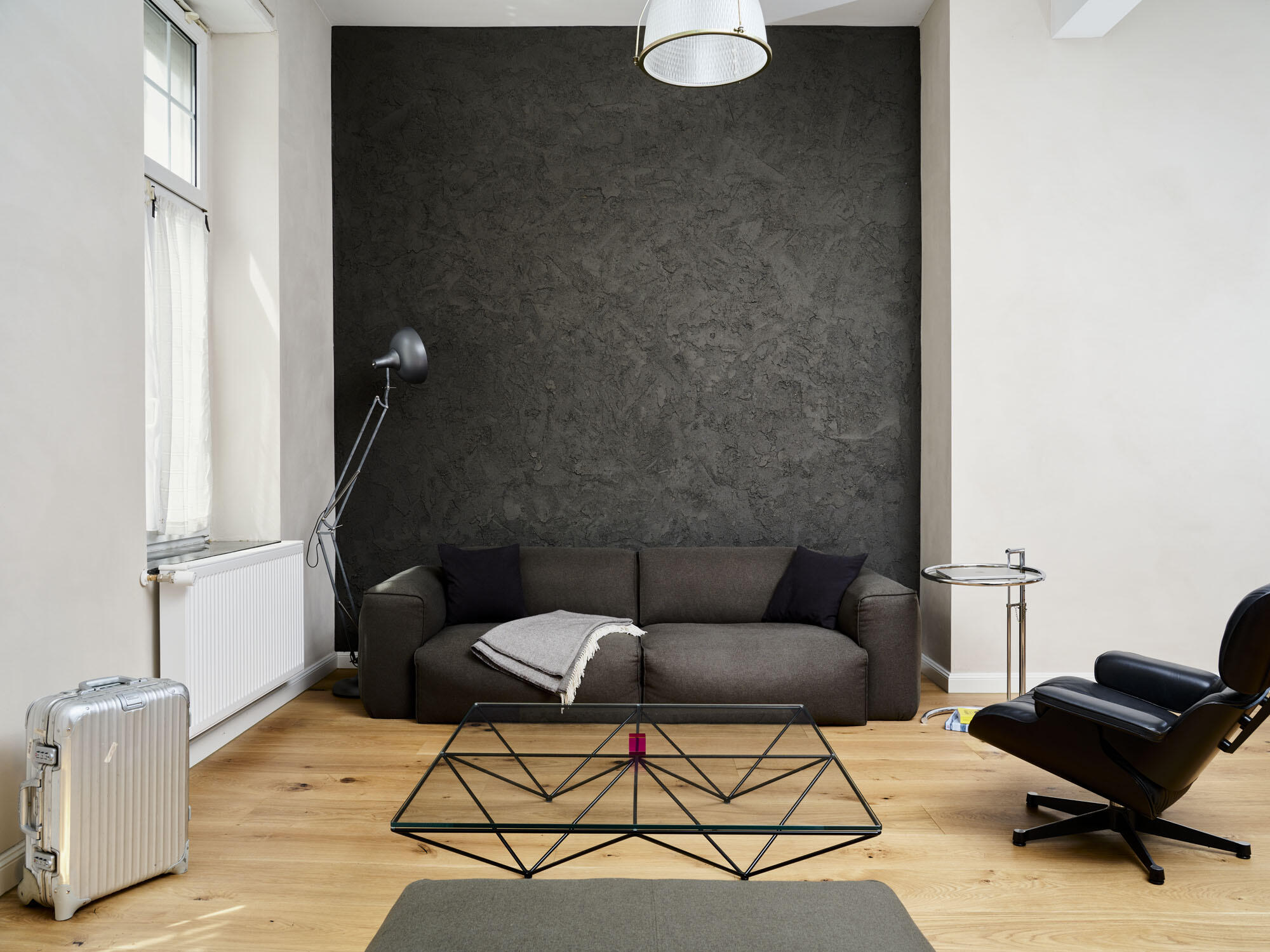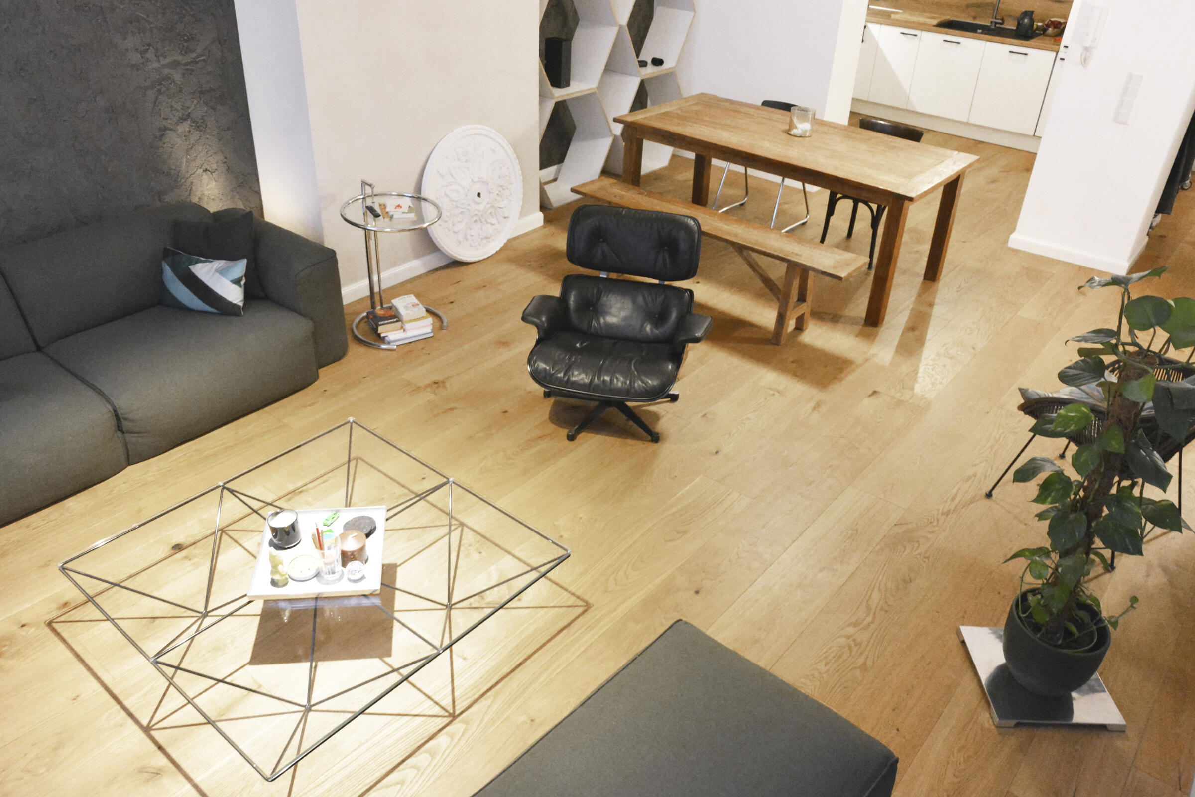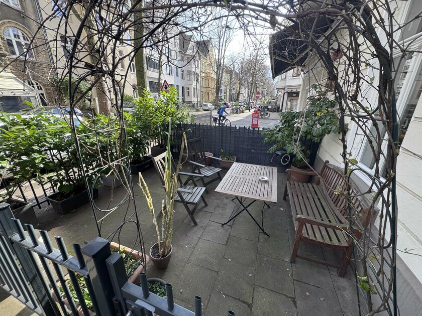 Die Wohnung befindet sich an einer wenig befahrenen Straße im Stadtteil Neuehrenfeld. Die Räume sind modern, hochwertig und minimalistisch eingerichtet. Auf den Böden ist Parkett verlegt. Die großen Fenster ermöglichen viel Tageslicht in den Räumen und können mit Hilfe von Vorhängen verdunkelt werden. Die Wohnung darf nach Absprache umgestaltet werden. Im Außenbereich der Erdgeschosswohnung steht ebenfalls eine Terrasse, die sich direkt an der Straße befindet, für Produktionen zur Verfügung. Öffentliche und kostenfreie Parkplätze gibt es vor dem Haus und in der näheren Umgebung.
