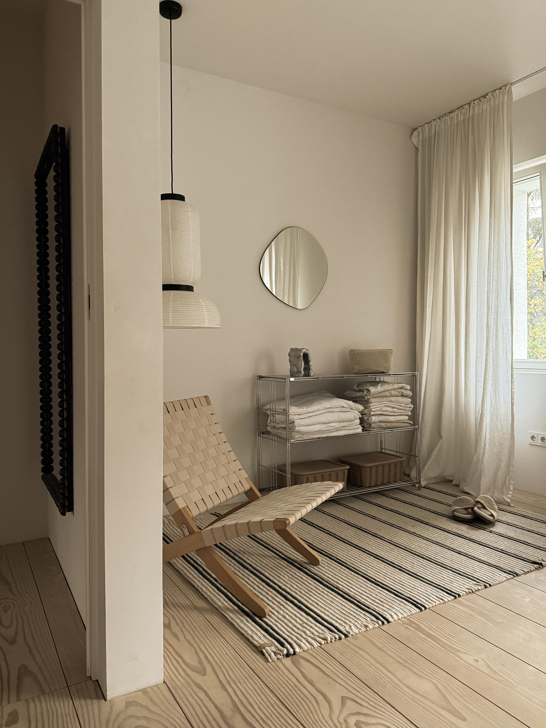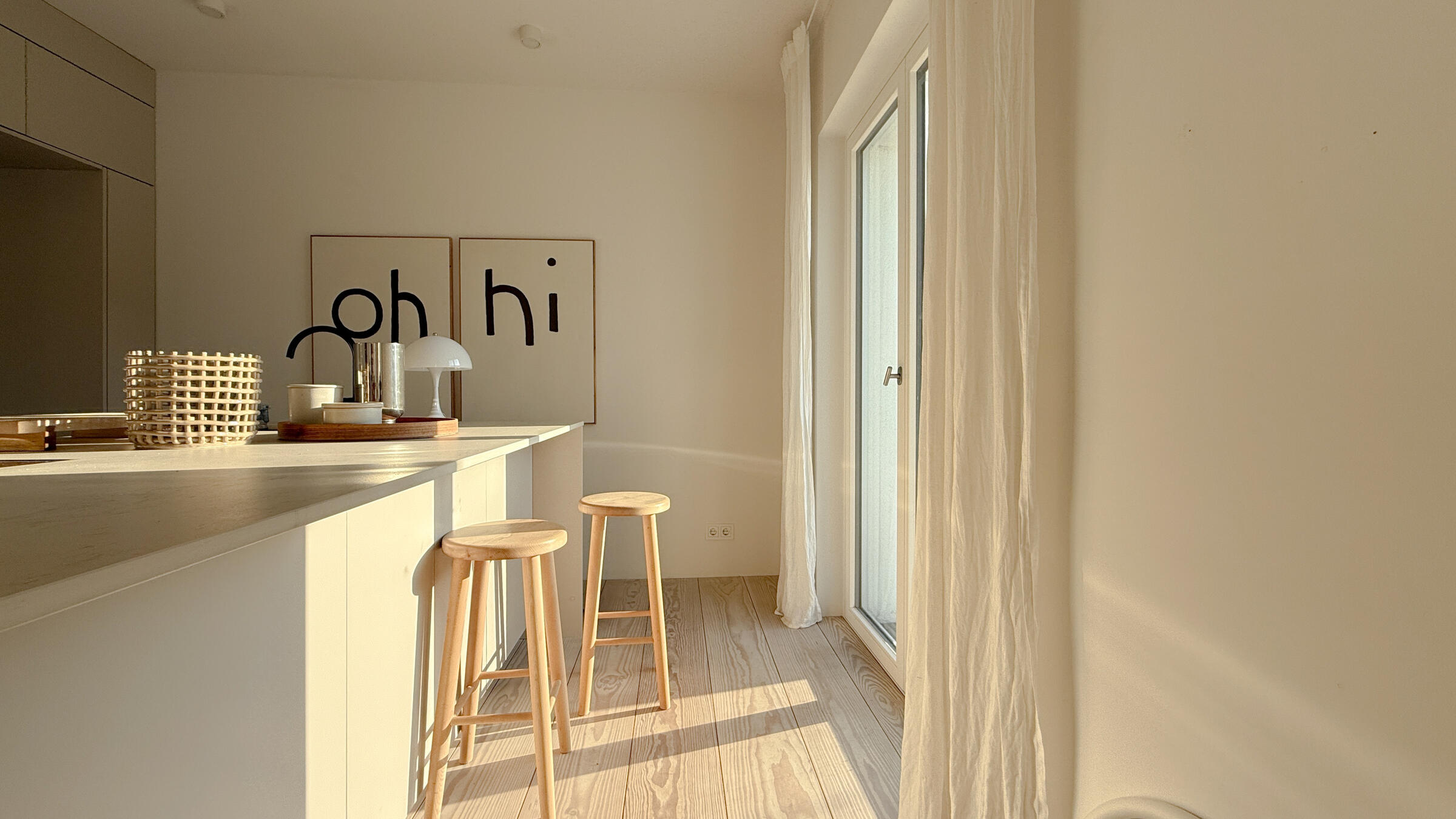 Meine helle Wohnung befindet sich im Kölner Stadtteil Neuehrenfeld, im 1. Obergeschoss eines Wohnhauses. Die Räume der Wohnung sind mit hochwertigen Möbeln modern und funktional im Japandi Stil eingerichtet. In allen Räumen, außer den Badezimmern, die gefliest sind, ist Douglasien Dielenboden verlegt. Die moderne Küche bietet eine große Kochinsel. Die teilweise bodentiefen Fenster haben lichtdurchlässige Vorhänge und können somit nur bedingt abgedunkelt werden. Im Außenbereich steht ein großer Garten zur Verfügung. Parkplätze gibt es vor dem Eckhaus auf der vorbeiführenden Einbahnstraße.