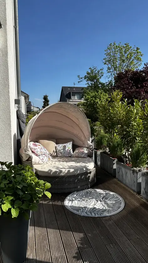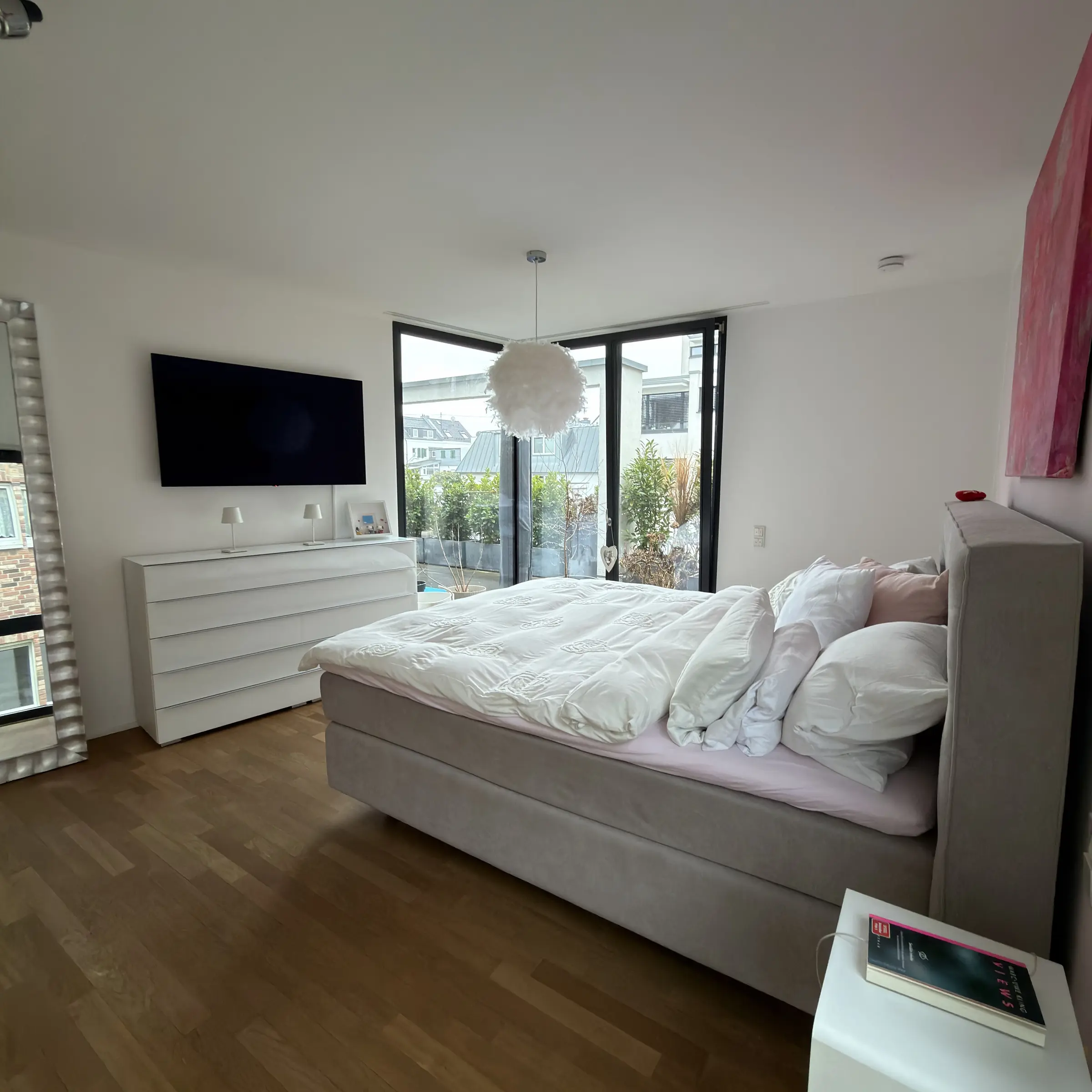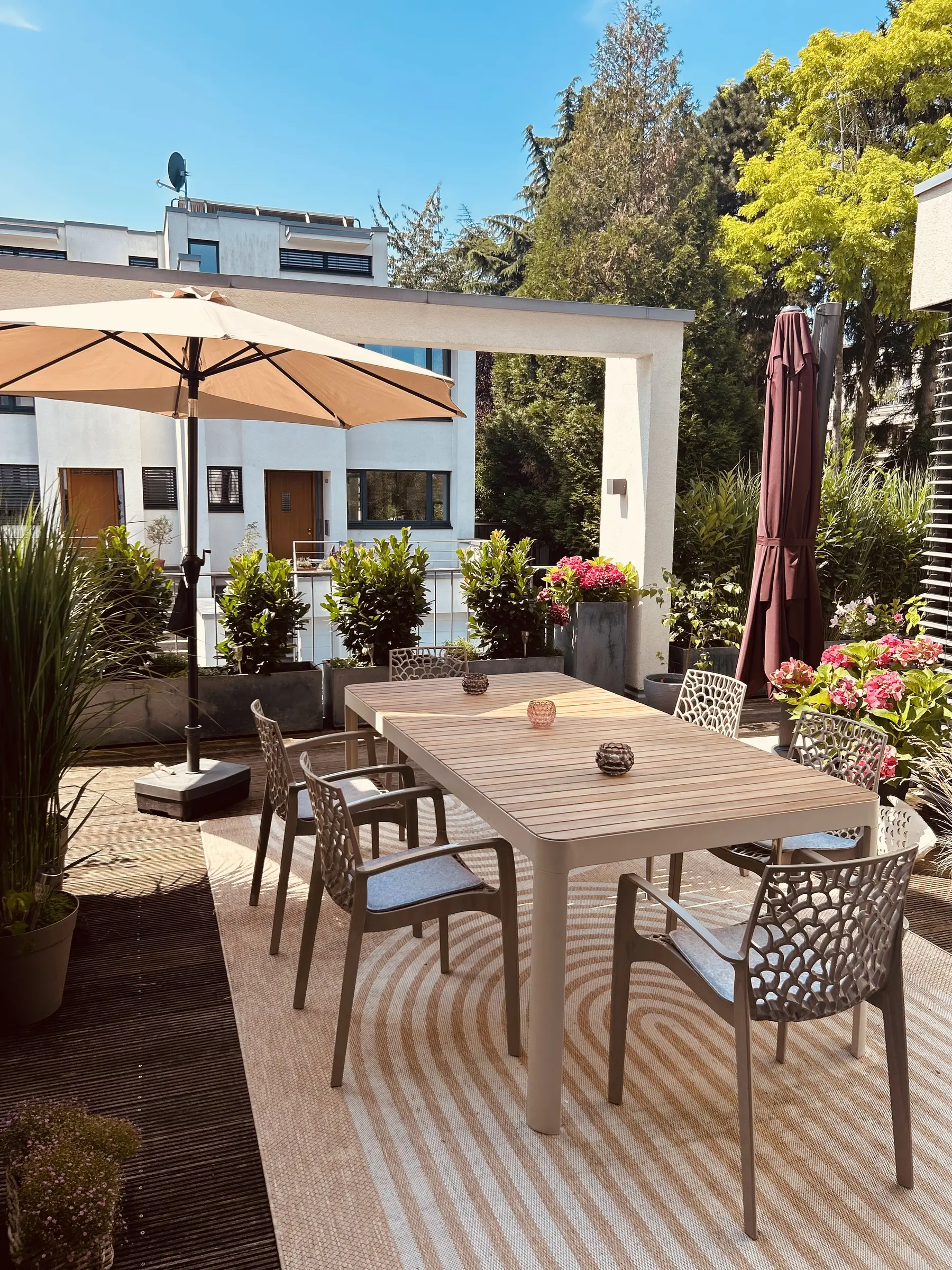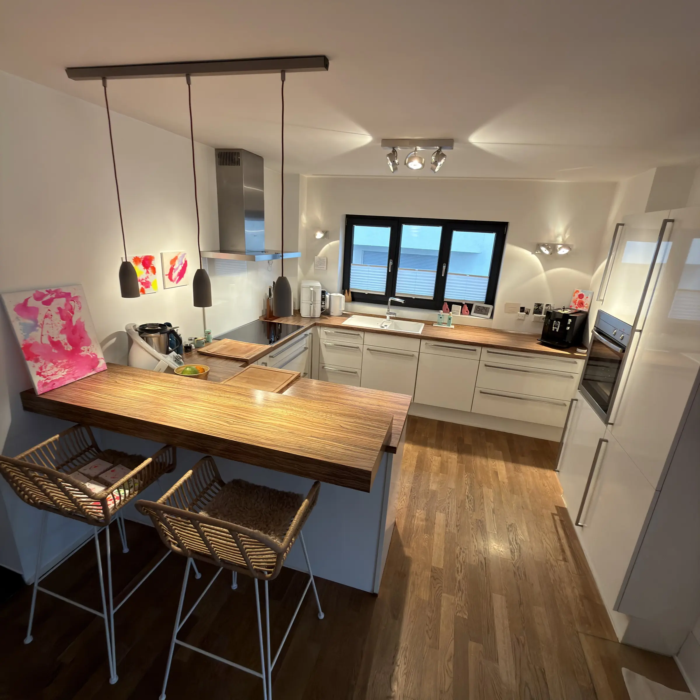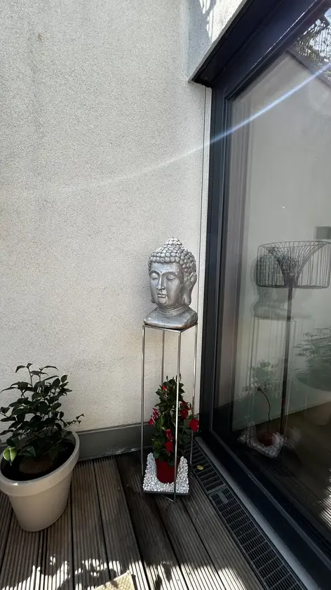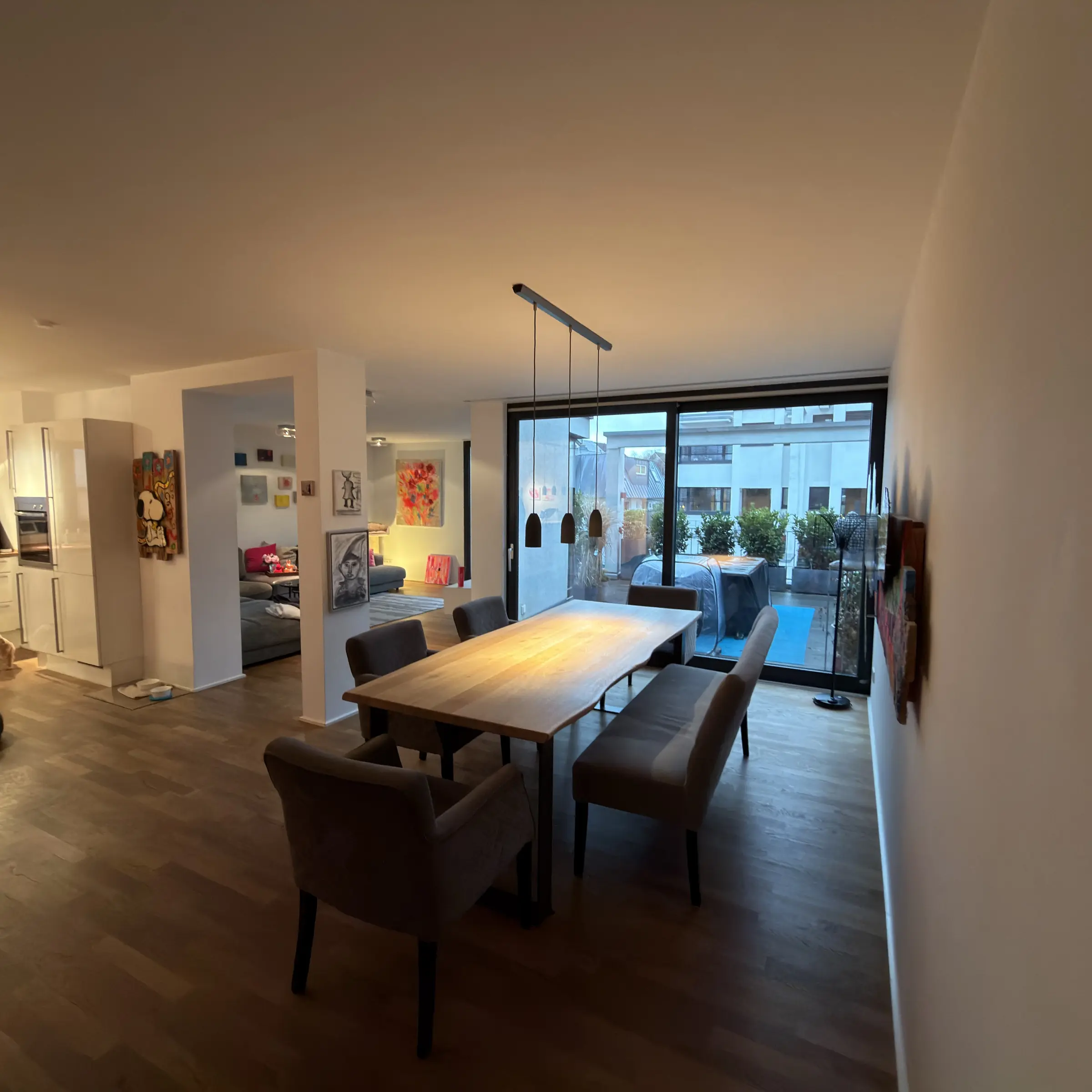 Meine Wohnung befindet sich in einem Wohnhaus im Kölner Süden, in Rheinnähe. Die Wohnung ist modern und hell eingerichtet und gestaltet. Die offene Wohnküche geht fließend in den Essbereich über. Durch die teilweise bodentiefen Fenster fällt viel Tageslicht in die Räume. Die Fenster können mit Jalousien abgedunkelt werden. Das große Bad bietet eine Badewanne und Gäste-WC. Ein Ankleideraum ist ebenfalls vorhanden. Die Räume dürfen nach Absprache umgestaltet werden. Die Wohnung liegt in Hochparterre, mit nur fünf Stufen, was den Transport von Equipment erleichtert. Im Außenbereich steht eine große Terrasse zur Verfügung. Parkplätze gibt es direkt vor dem Haus.