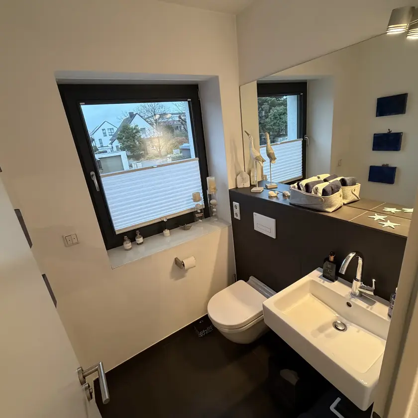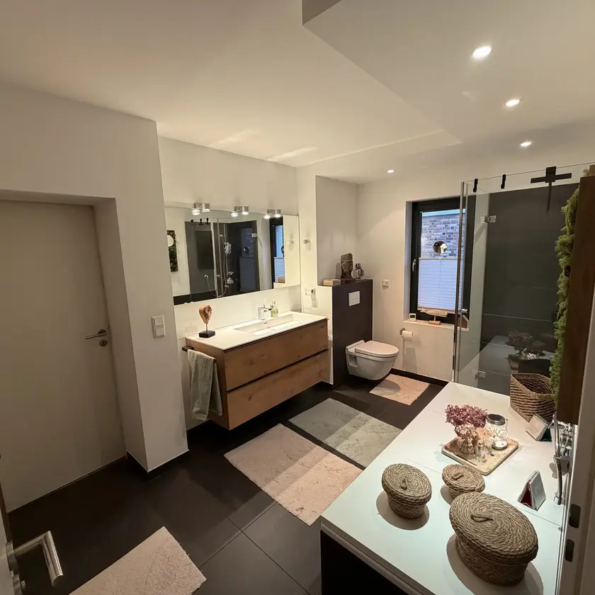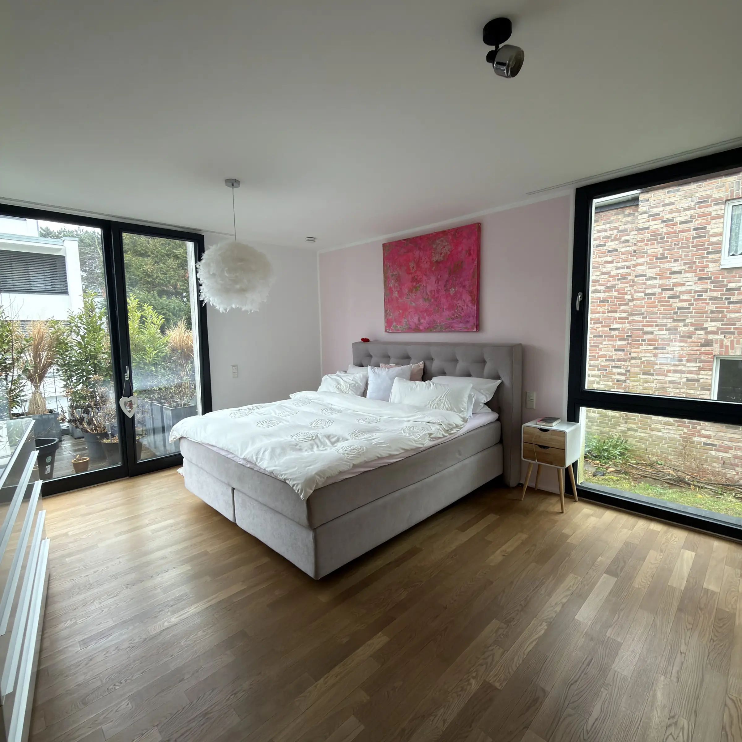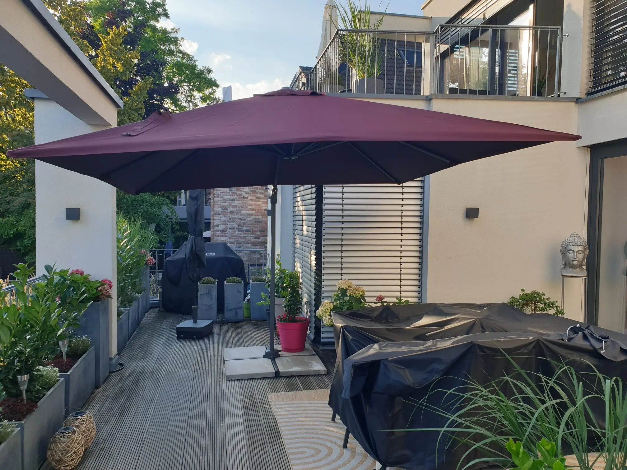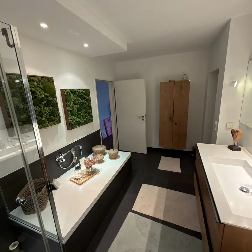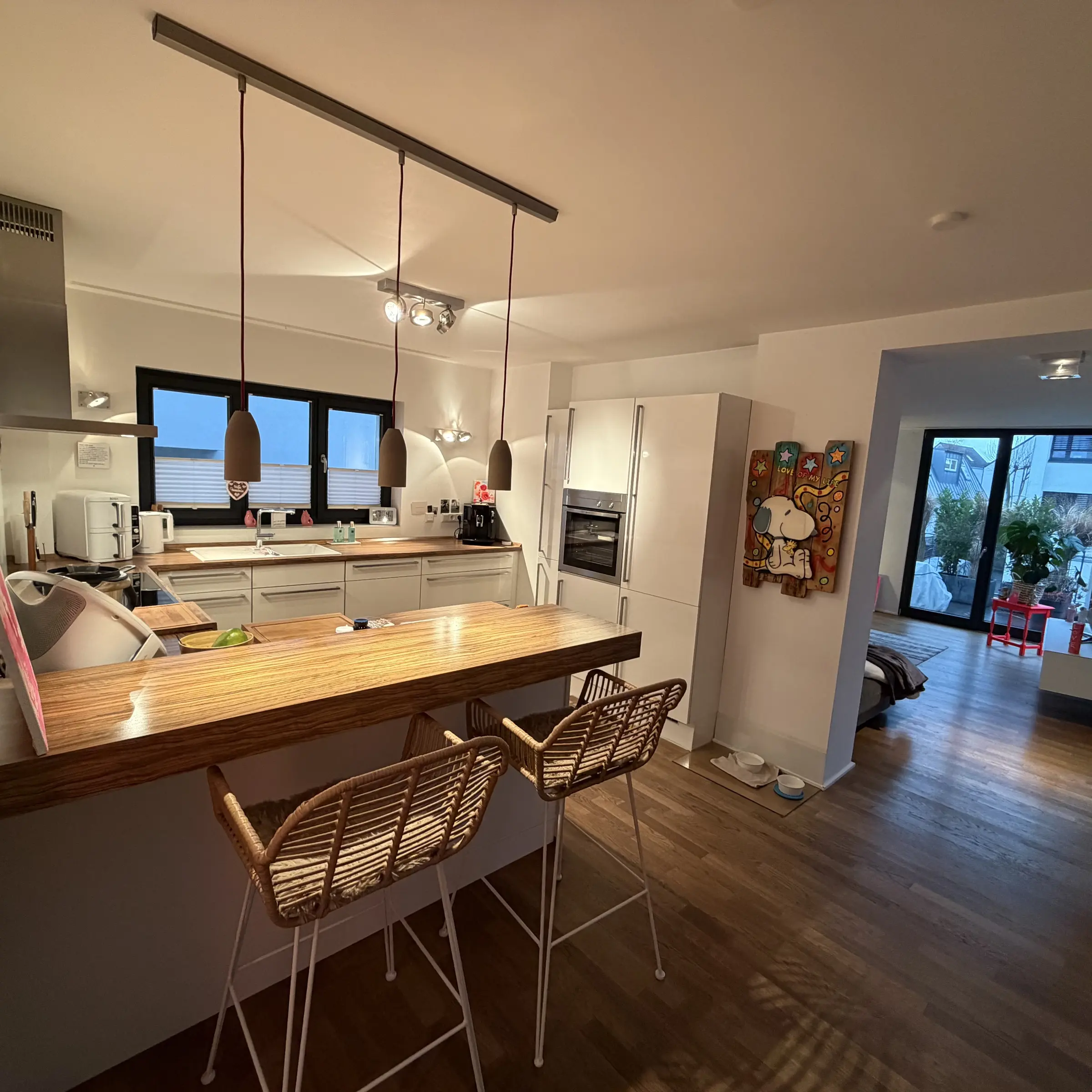 Meine Wohnung befindet sich in einem Wohnhaus im Kölner Süden, in Rheinnähe. Die Wohnung ist modern und hell eingerichtet und gestaltet. Die offene Wohnküche geht fließend in den Essbereich über. Durch die teilweise bodentiefen Fenster fällt viel Tageslicht in die Räume. Die Fenster können mit Jalousien abgedunkelt werden. Das große Bad bietet eine Badewanne und Gäste-WC. Ein Ankleideraum ist ebenfalls vorhanden. Die Räume dürfen nach Absprache umgestaltet werden. Die Wohnung liegt in Hochparterre, mit nur fünf Stufen, was den Transport von Equipment erleichtert. Im Außenbereich steht eine große Terrasse zur Verfügung. Parkplätze gibt es direkt vor dem Haus.