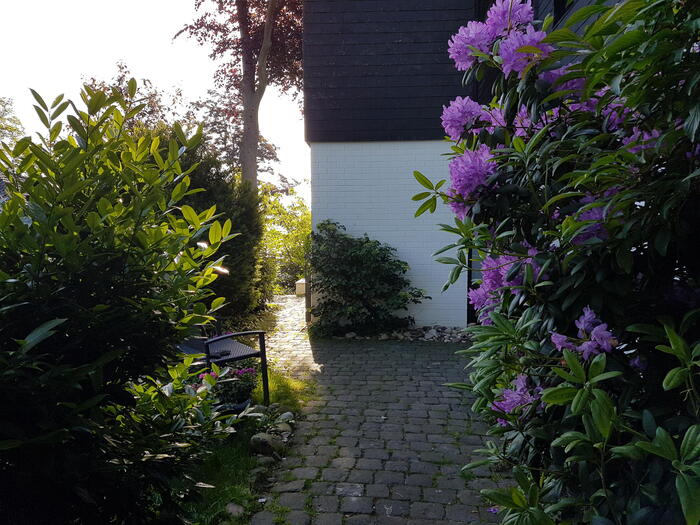 Unser Architektenhaus liegt nicht weit vom Oelberg im Siebengebirge entfernt. Unser Grundstück hat ca. 1000 m² und verfügt über 3 Terrassen. Eine Terrasse liegt direkt an unserem Teich, in dem Kois schwimmen. Die zweite Terrasse liegt direkt neben der Küche und verfügt über einen großen Webergrill. Die dritte Terrasse gehört zu einem Apartment, in dem sich eine Küchenzeile und eine Sitzecke befinden. Wir haben sowohl außen als auch innen im Haus einen Kamin. Das Wohnzimmer hat durch die Dachschrägen sehr hohe Wände. Das Esszimmer bzw. der Essbereich ist Teil des Wohnzimmers und oberhalb des Wohnzimmers befindet sich eine Galerie, die als Büro genutzt wird. In einem Badezimmer befindet sich eine im Boden eingelassene Badewanne. Drei Seiten vom Wohnzimmer sind komplett verglast, daher ist es immer hell und man hat das Gefühl, man würde im Garten wohnen. Die Wände sind alle mit Gemälden versehen. Im Haus befindet sich im Keller ein Fitnessraum mit Sauna und Ruheraum. Unser Wohnzimmer, aber auch die anderen Räume, so wie unsere Gartenanlage bieten viele Möglichkeiten, Kulissen und Motive für Film- und Fotoproduktionen. Das Haus liegt verkehrsgünstig zur A3 und zur A59 in den Regierungsbezirken Köln und Bonn.