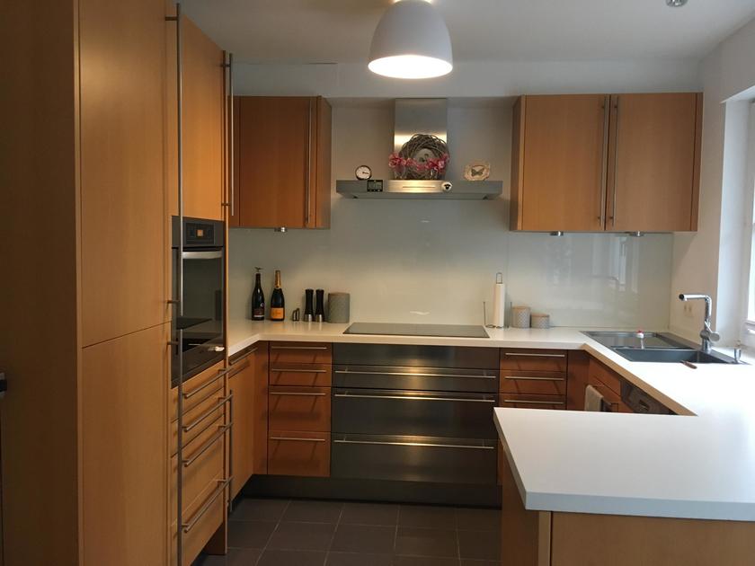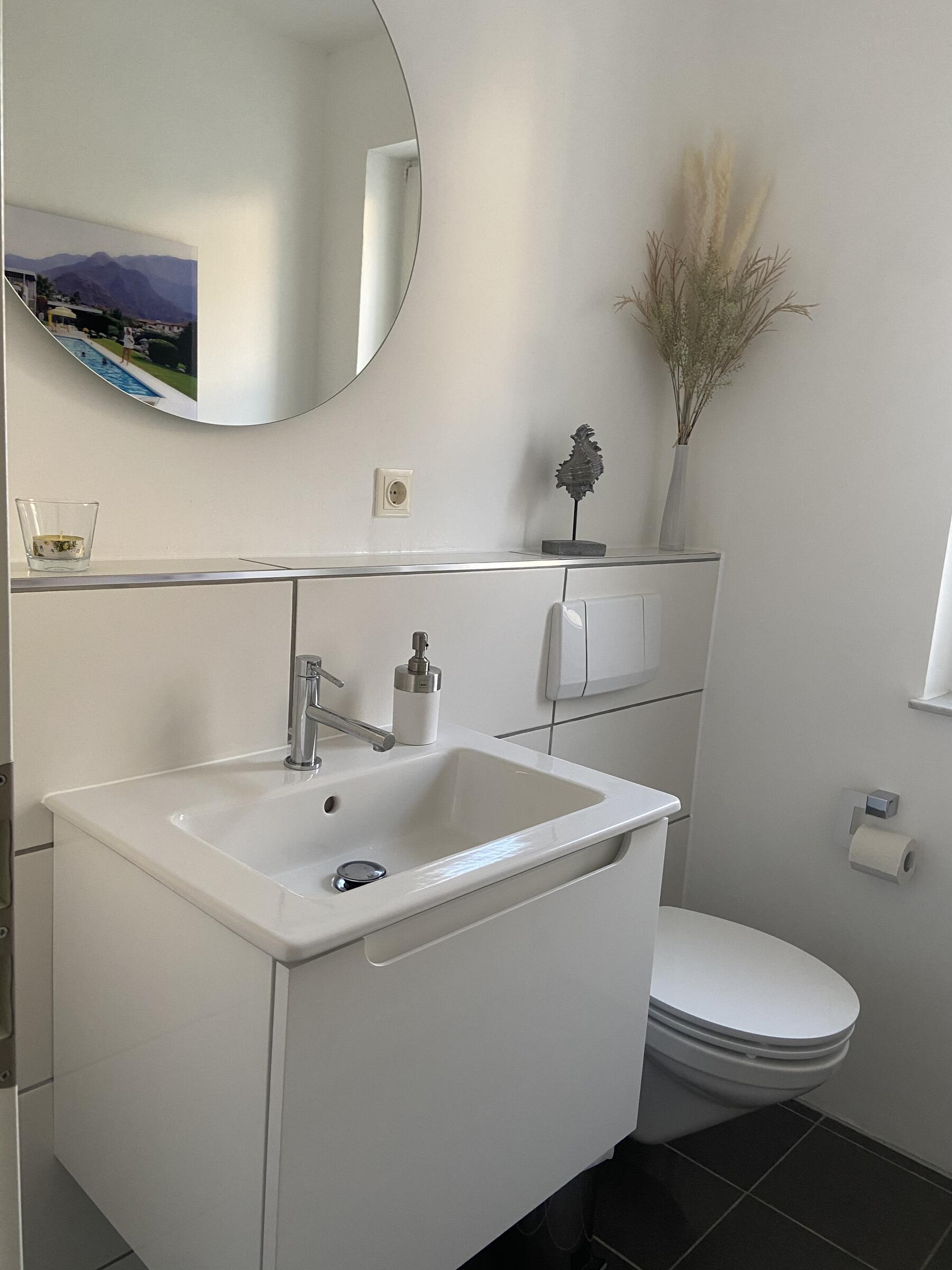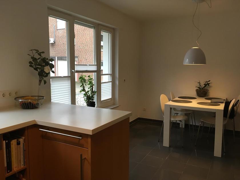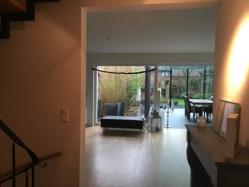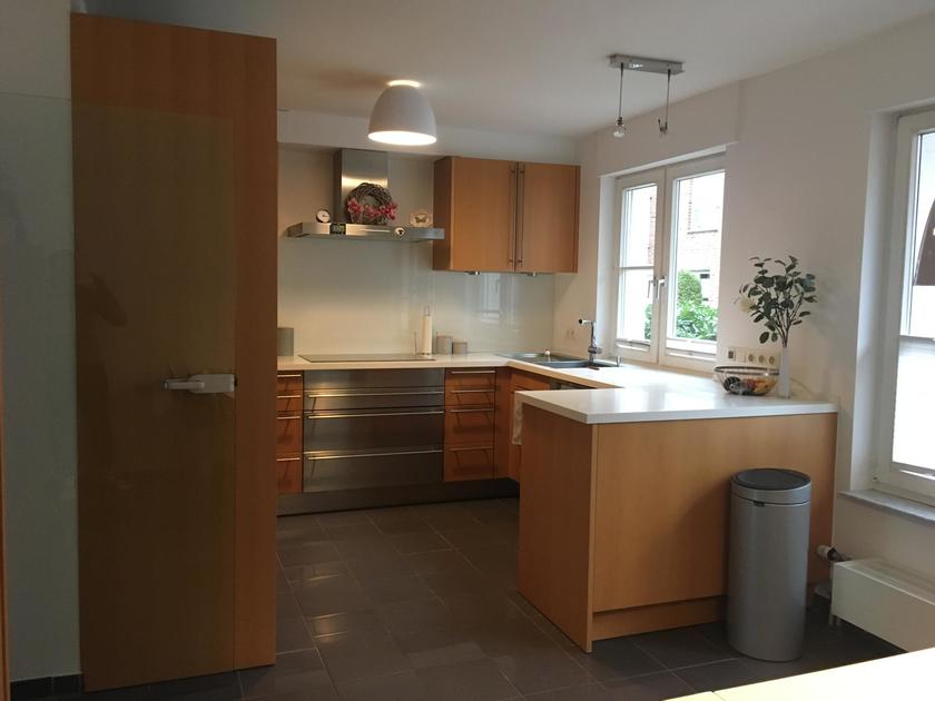 Freistehendes, zweigeschossiges Einfamilienhaus in einer ruhigen Einbahnstraße mit ausgebautem Dachgeschoss, sowie ausgebautem Keller und einem großen wunderschönen Glas-Wintergarten. Im geräumigen und hellen Eingangsbereich des Hauses befindet sich ein Einbauschrank als Garderobe. Ein geräumiges Gäste-WC, mit einem Fenster zum Vorgarten ist ebenfalls vom Eingangsbereich zu erreichen. Die Küche verfügt über eine eingebaute Bulthaupt-Küche die U-förmig eingebaut ist und etwas in den Raum hineinragt und ihn damit optisch vom Essbereich abgrenzt. Hier kann das Team kochen und bis zu 10 Personen als Essensbereich/ Teamaufenthalt verwenden. Im Obergeschoss befinden sich ein leer stechendes Zimmer und ein Kinderzimmer mit großen Fenstern und Blick in den Garten. Diese Räume können für Teamaufenthalt, Maske und Garderobe benutzt werden. Das Schlafzimmer ist mit einem hellen Boxspringbett und leicht rosafarbener Wand hell gestaltet und durch die große Fensterfront des Erkers (Eckfenster) sehr hell. Das anliegende Ankleidezimmer verfügt über Nolteschränke die baugleich sind. Falls gewünscht können hier die Garderobe untergebracht werden. In der ersten Etage befindet sich auch ein Bad mit zwei Waschbecken und einer Badewanne und einer offenen Dusche (Glas).