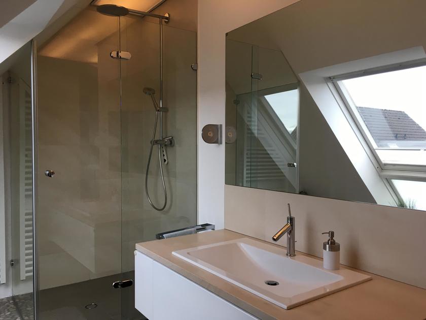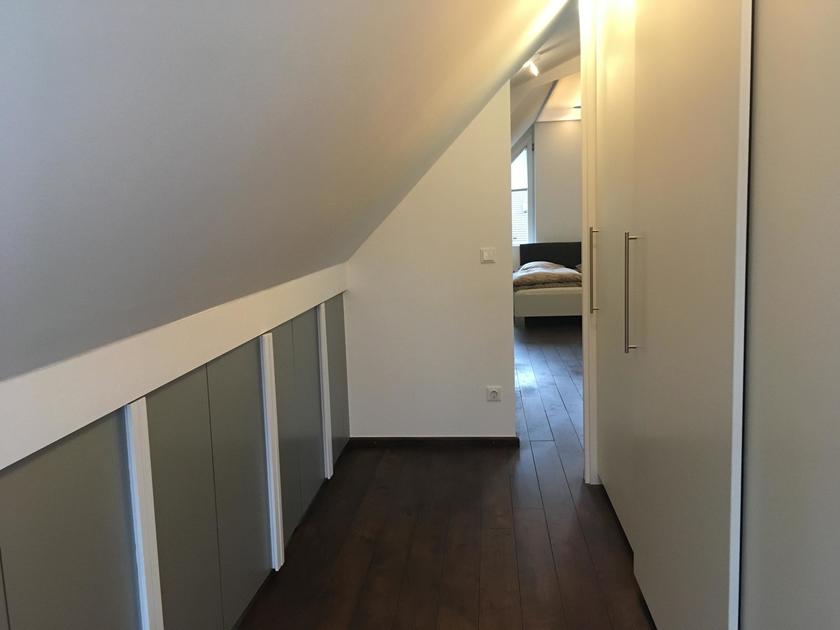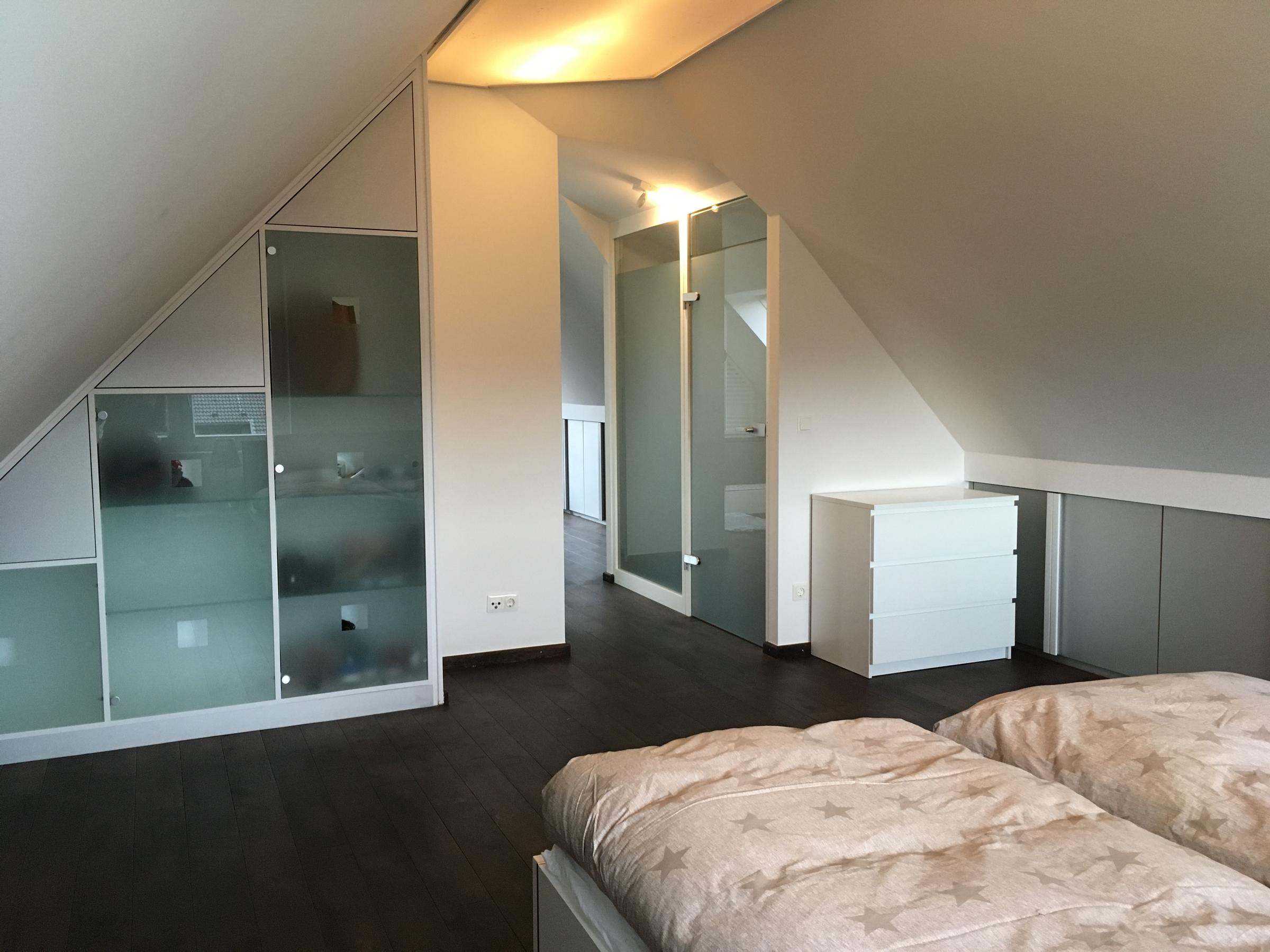 Im exklusiv ausgebauten Dachgeschoss befindet ein großzügiger Schlafbereich zur Gartenseite, der auch zur Maske und Garderobe verwendet werden kann. Hier gibt es auch einen Ankleidebereich mit Einbauschränken, die als Stauraum für die Garderobe benutzt werden kann. Das Dachgeschoss bietet auch ein modernes offenes Bad (Dusche) mit separatem WC. Der Garten ist abwechslungsreich bepflanzt und im Sommer sehr farbenreich. Falls gewünscht können auch Möbelstücke entfernt werden.