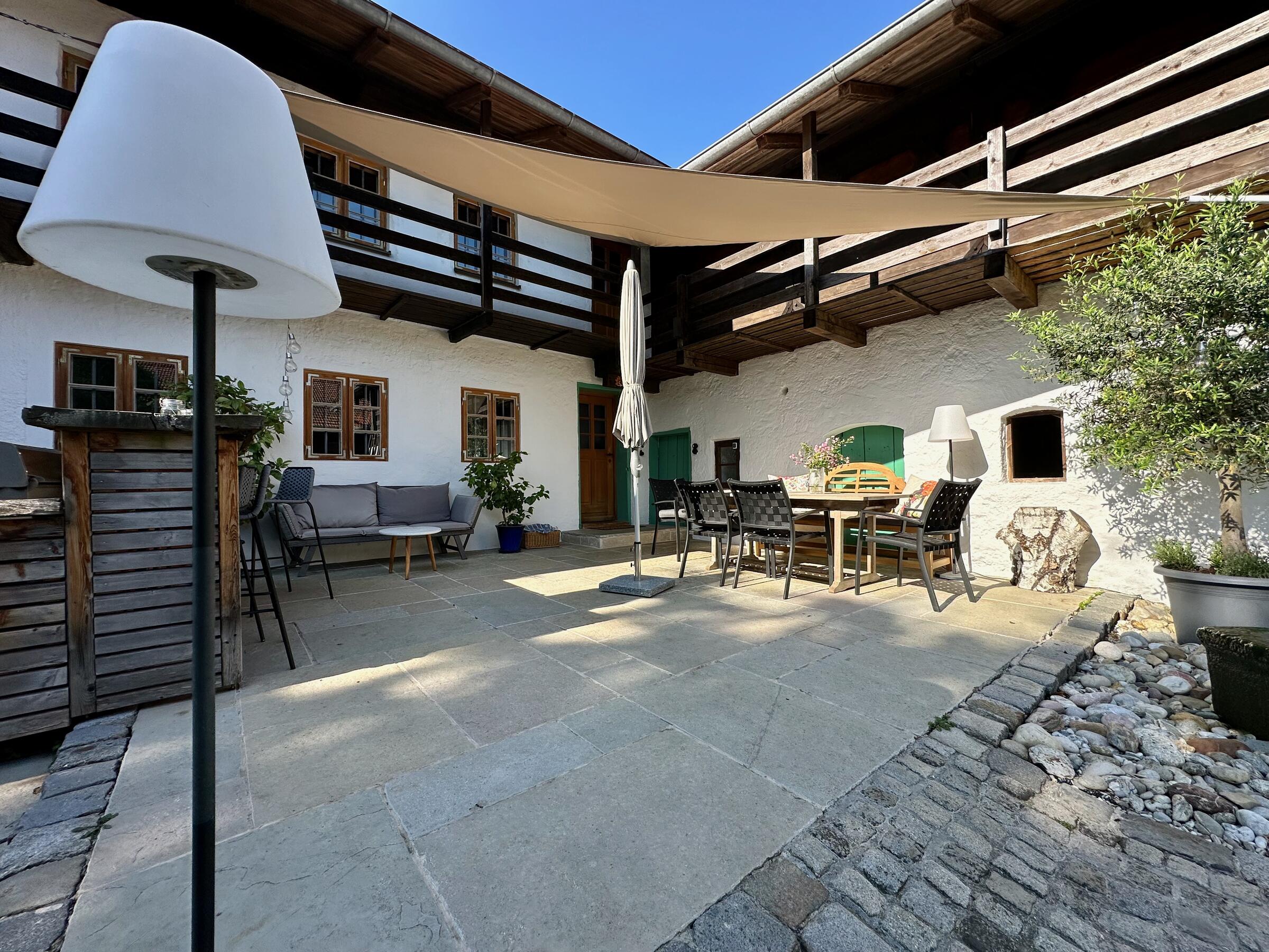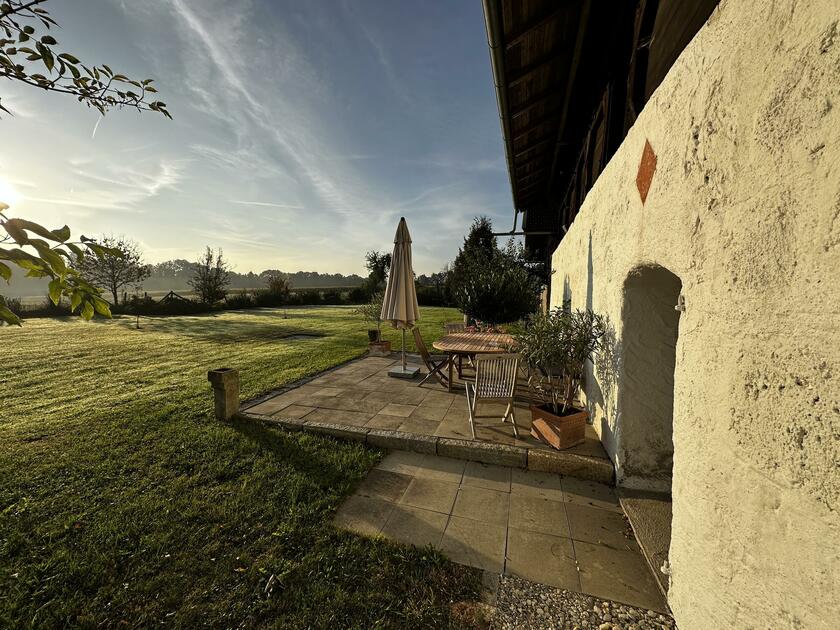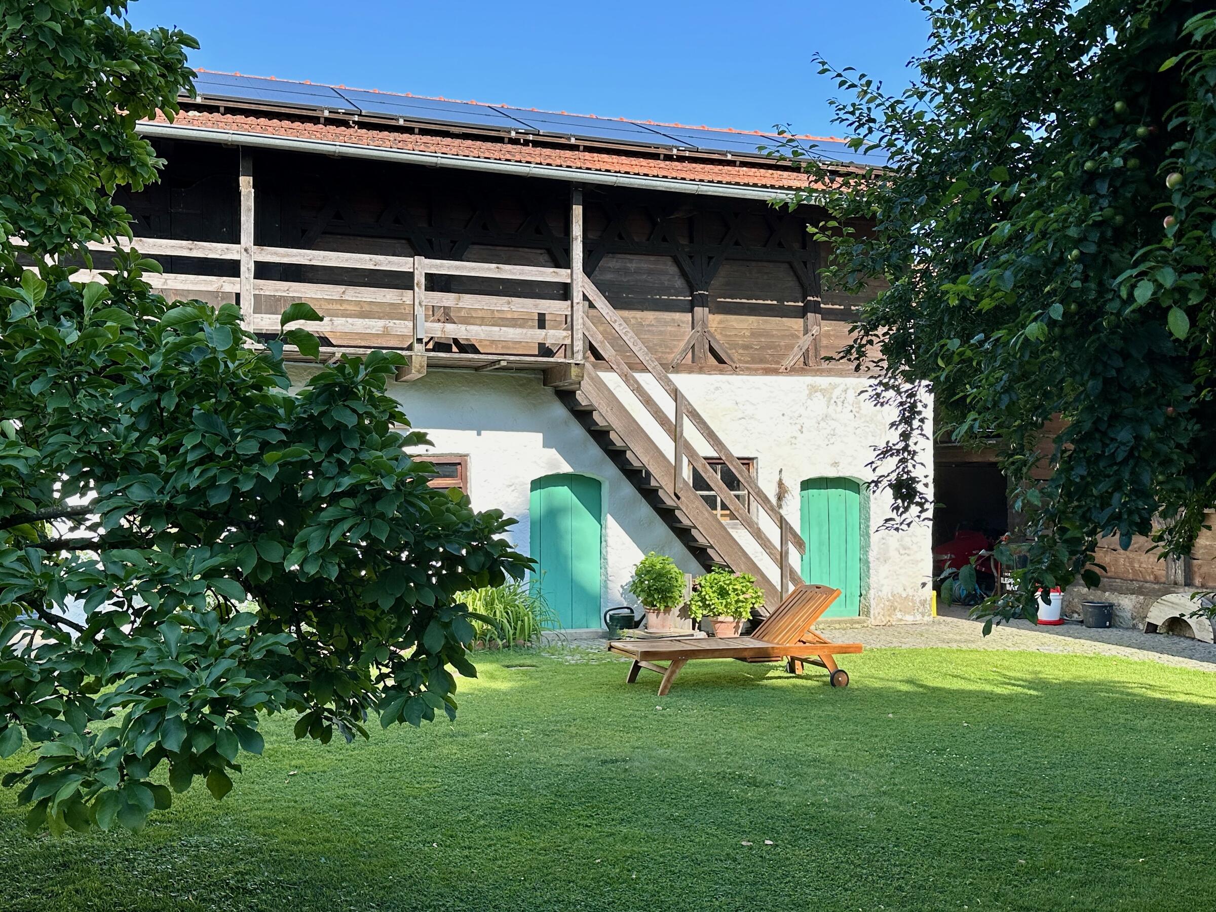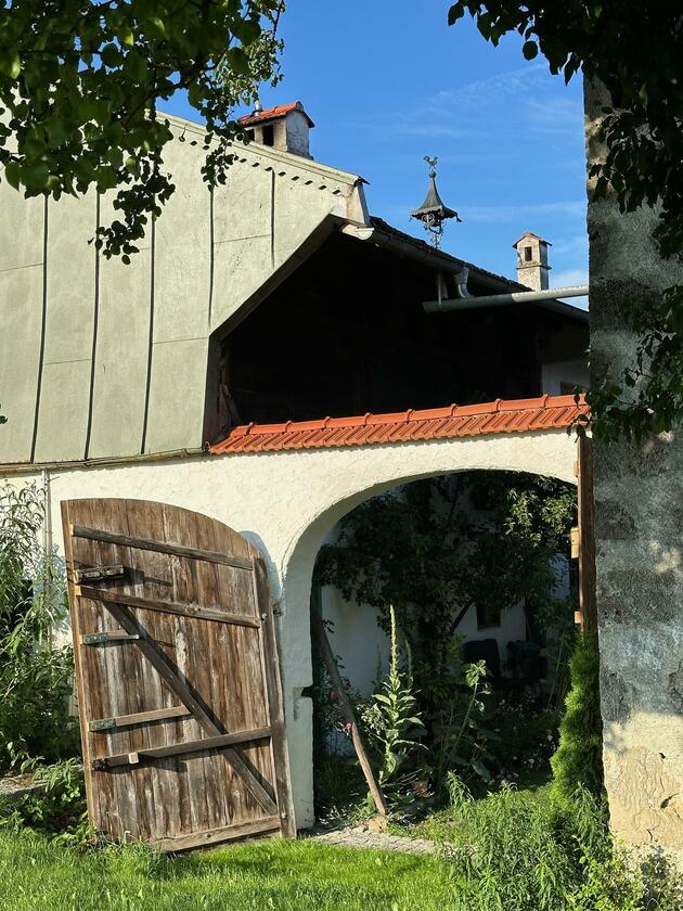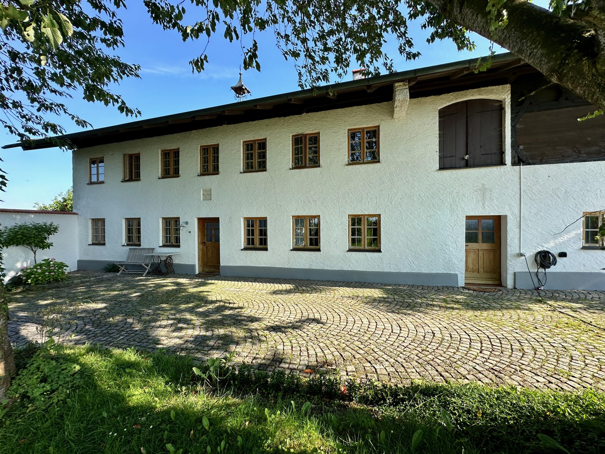 Unser wunderschöner Vierseithof ist nahezu vollständig renoviert und befindet sich fast in Alleinlage. Das Haupthaus bietet ca. 240 m² Wohnfläche. Hinzu kommen ca. 600 m² Nutzflächen. Die Stube mit Kachelofen ist gemütlich, aber nicht zu bäuerlich. Das Wohnzimmer hat einen offenen Kamin. Das große Bad mit großer Badewanne ist stylisch-gemütlich. Der idyllische Innenhof bietet eine großzügige Terrasse und einem Grillplatz mit L-förmiger Theke. Auf der Ostseite ist eine weitere Terrasse, daneben ein Bienenstand und auf der anderen Seite ein Hühnerauslauf. Im Hühnerstall haben 22 Hühner ihr Zuhause. Wir haben auch einen ca. 200 m² großen Bauerngarten. Es gibt noch einige zusätzlichen Räume, unter anderem eine großzügige Werkstatt mit ca. 20 m². Ein Gästezimmer mit 13 m² und ein Büro mit 25 m². Im Erdgeschoss des Stallstadels könnte auf 60 m² ein regengeschütztes Crew-Catering eingerichtet werden. Unser Hof ist mit einer 1Gbit/s Glasfaseranbindung ausgestattet und hat eine sehr gute WiFi-Abdeckung. Es sind zwei 16 A Drehstromanschlüsse vorhanden. Einer davon vor dem Haus, welcher sich auch zum Laden von Elektroautos nutzen lässt. Die Wiese vor der Scheune ist auch von LKW bis 12 t befahrbar. Dort finden ebenfalls bis zu 10 Pkw einen Abstellplatz. Über die A94 kommend sind es von der Autobahnabfahrt Ampfing nur ca. 10 min bis zum Hof. Von München ist unser Hof ca. 50 Fahrminuten entfernt. Da ich 10 Jahre lang als Kameramann tätig war habe ich viel Einsicht in die Filmproduktion gewonnen.