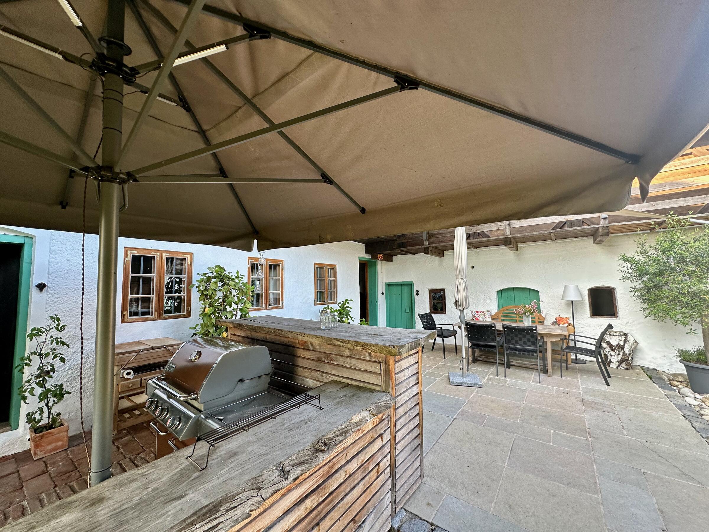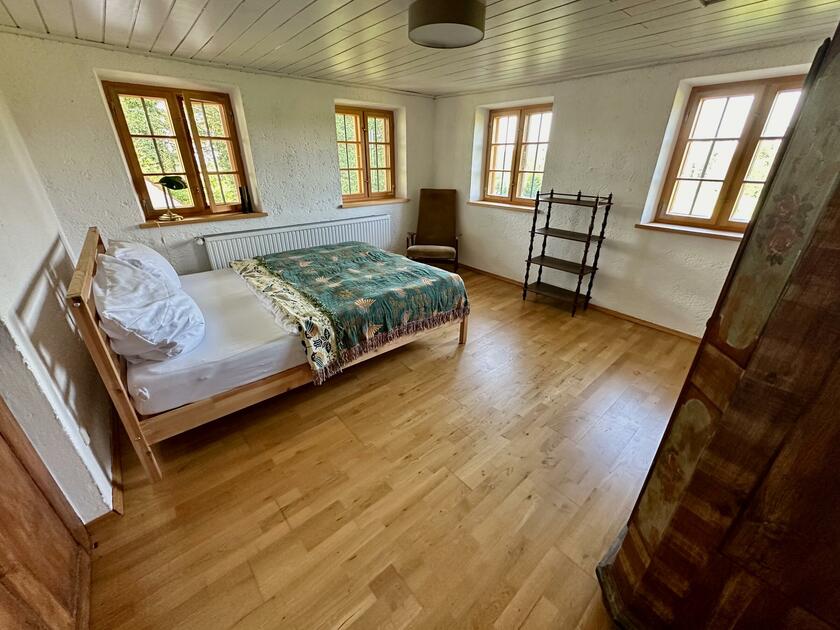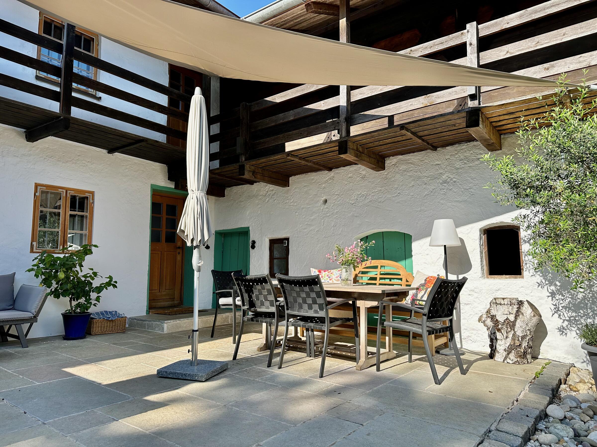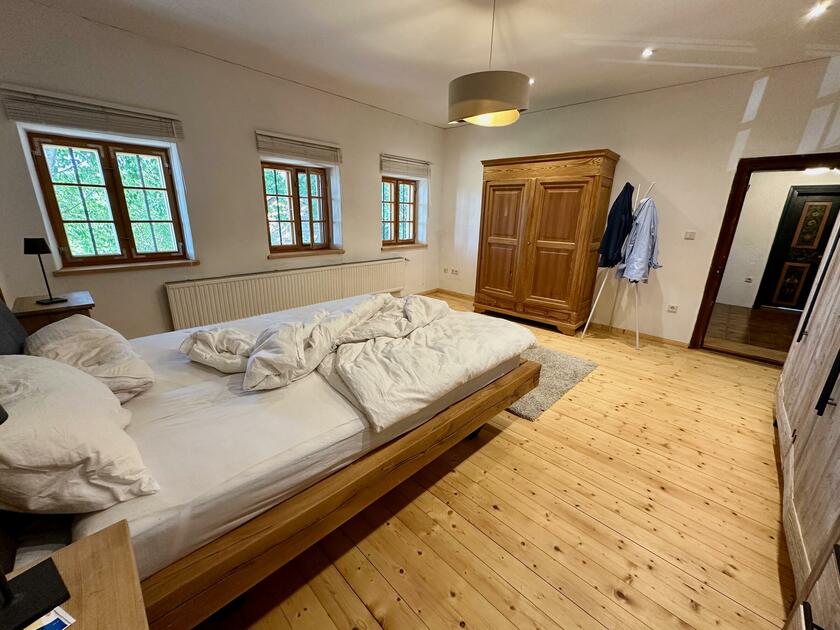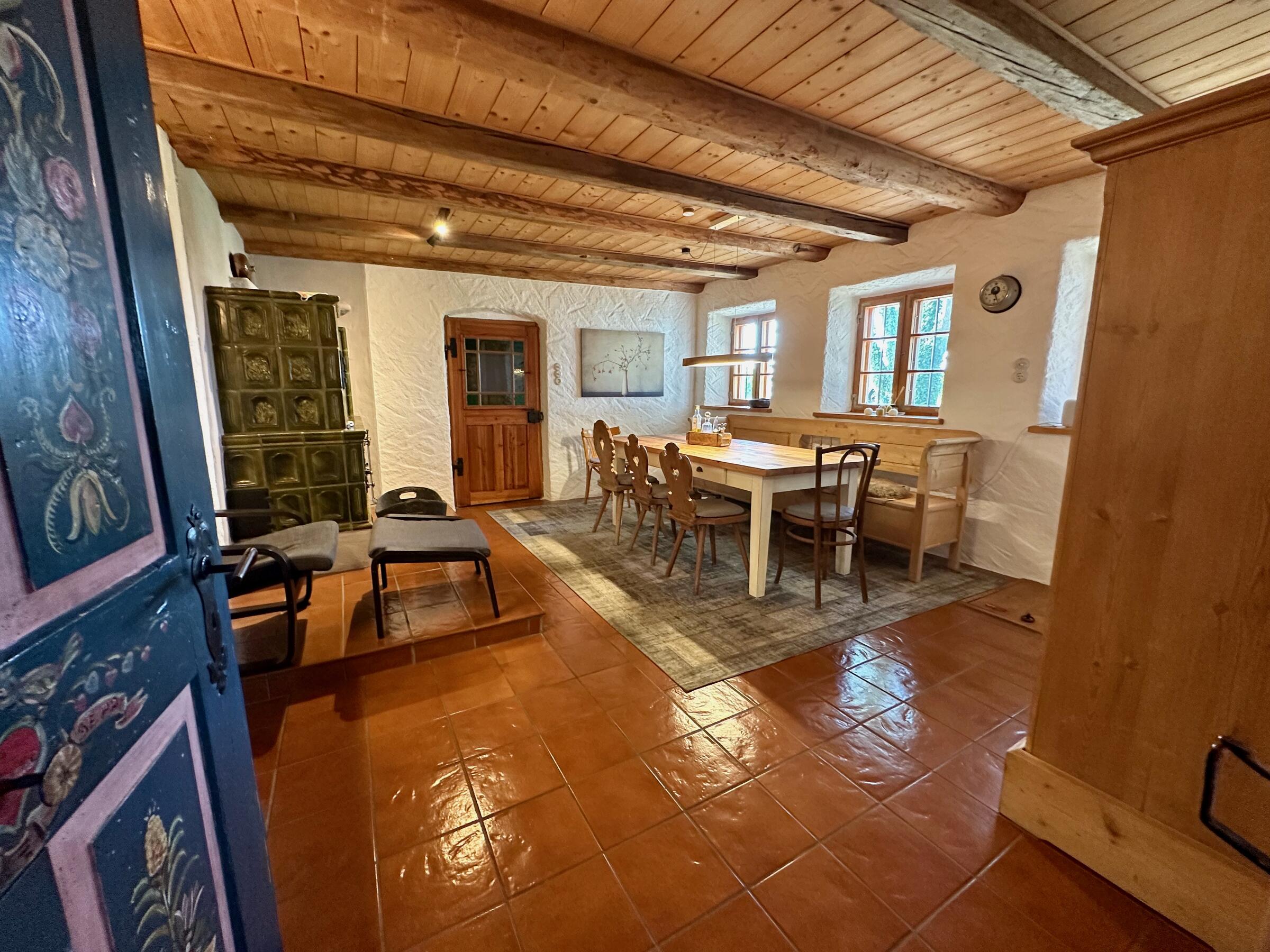 Unser wunderschöner Vierseithof ist nahezu vollständig renoviert und befindet sich fast in Alleinlage. Das Haupthaus bietet ca. 240 m² Wohnfläche. Hinzu kommen ca. 600 m² Nutzflächen. Die Stube mit Kachelofen ist gemütlich, aber nicht zu bäuerlich. Das Wohnzimmer hat einen offenen Kamin. Das große Bad mit großer Badewanne ist stylisch-gemütlich. Der idyllische Innenhof bietet eine großzügige Terrasse und einem Grillplatz mit L-förmiger Theke. Auf der Ostseite ist eine weitere Terrasse, daneben ein Bienenstand und auf der anderen Seite ein Hühnerauslauf. Im Hühnerstall haben 22 Hühner ihr Zuhause. Wir haben auch einen ca. 200 m² großen Bauerngarten. Es gibt noch einige zusätzlichen Räume, unter anderem eine großzügige Werkstatt mit ca. 20 m². Ein Gästezimmer mit 13 m² und ein Büro mit 25 m². Im Erdgeschoss des Stallstadels könnte auf 60 m² ein regengeschütztes Crew-Catering eingerichtet werden. Unser Hof ist mit einer 1Gbit/s Glasfaseranbindung ausgestattet und hat eine sehr gute WiFi-Abdeckung. Es sind zwei 16 A Drehstromanschlüsse vorhanden. Einer davon vor dem Haus, welcher sich auch zum Laden von Elektroautos nutzen lässt. Die Wiese vor der Scheune ist auch von LKW bis 12 t befahrbar. Dort finden ebenfalls bis zu 10 Pkw einen Abstellplatz. Über die A94 kommend sind es von der Autobahnabfahrt Ampfing nur ca. 10 min bis zum Hof. Von München ist unser Hof ca. 50 Fahrminuten entfernt. Da ich 10 Jahre lang als Kameramann tätig war habe ich viel Einsicht in die Filmproduktion gewonnen.