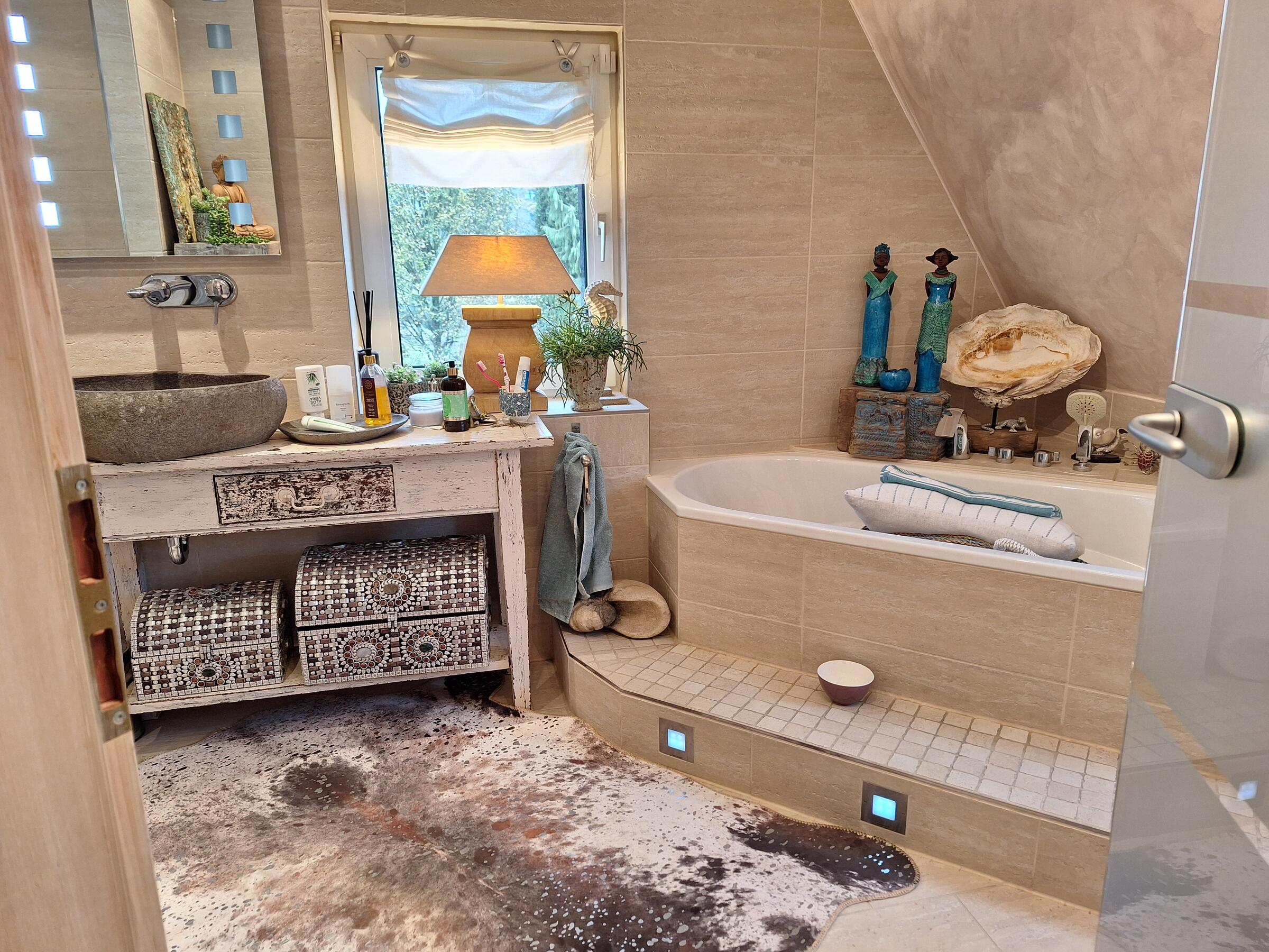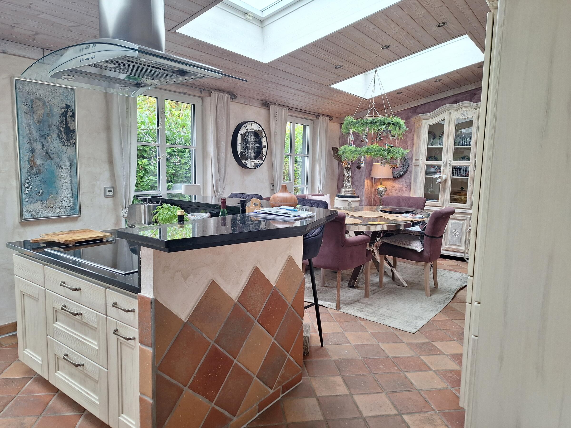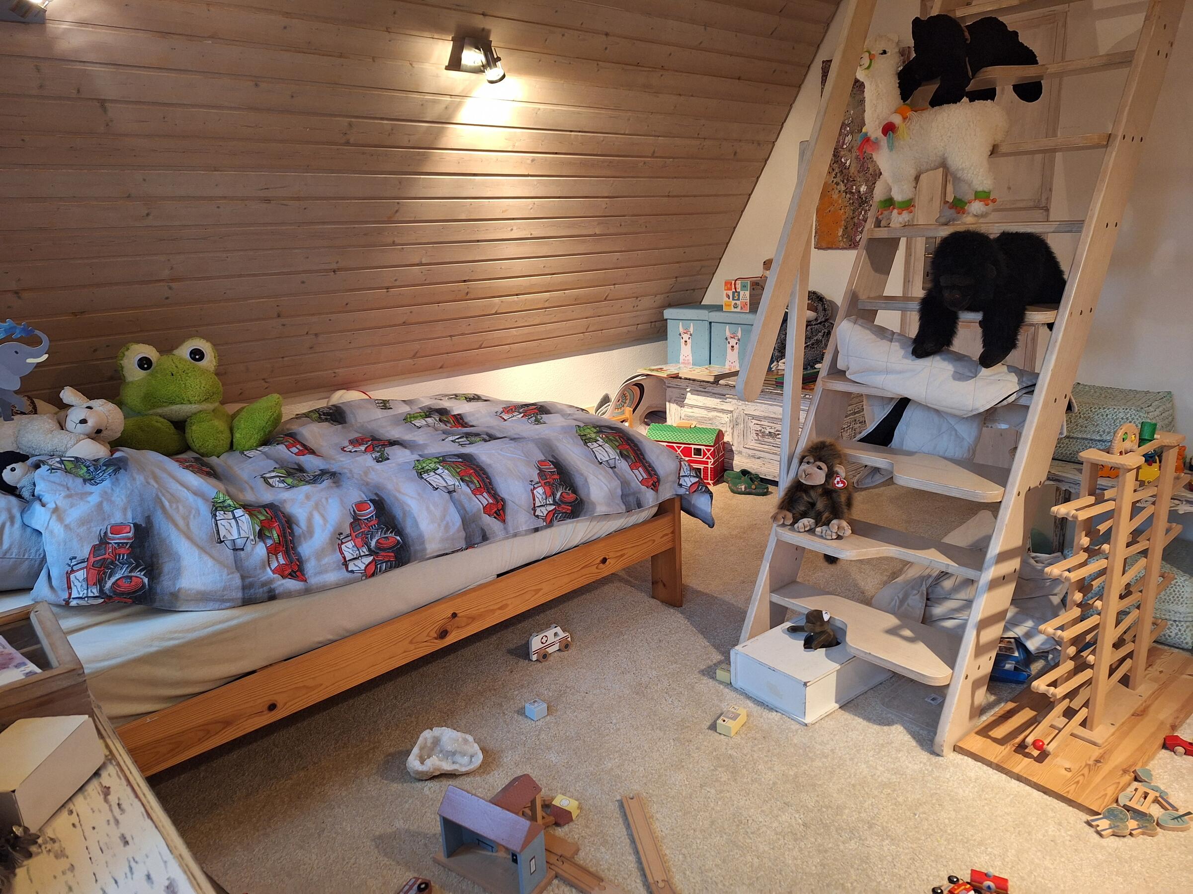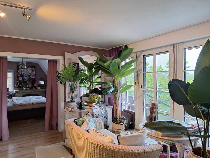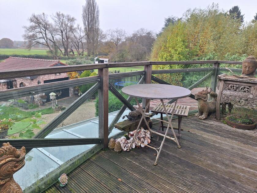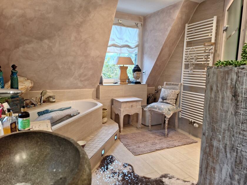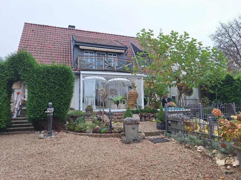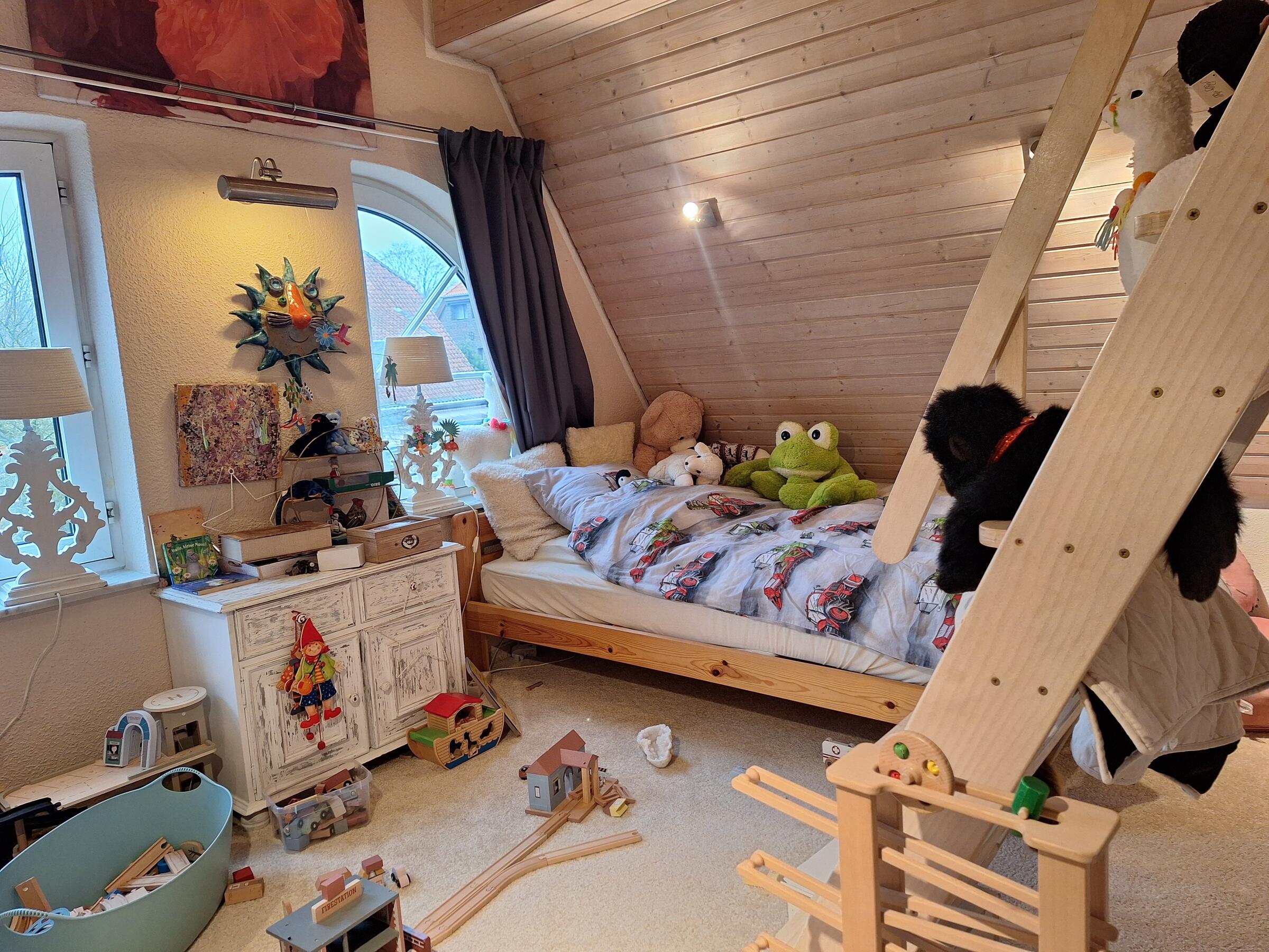Unser Landhaus befindet sich in einer ruhigen Wohngegend, an einem Landschaftsschutzgebiet und umgeben von Feldern. Durch die teilweise bodentiefen Fenster fällt viel Tageslicht in die Wohnräume. Die Böden der Räume sind gefliest. Die Fenster der Räume können mit Vorhängen und teilweise mit Fensterläden verdunkelt werden. Die Räume dürfen nach Absprache umgestaltet werden. Im Außenbereich stehen der große Garten und der Pool zur Verfügung. Die Auffahrt unseres Grundstückes kann mit Lkw bis zu 7,5 t befahren werden. Mehrere Pkw können ebenfalls auf unserem Grundstück geparkt werden.