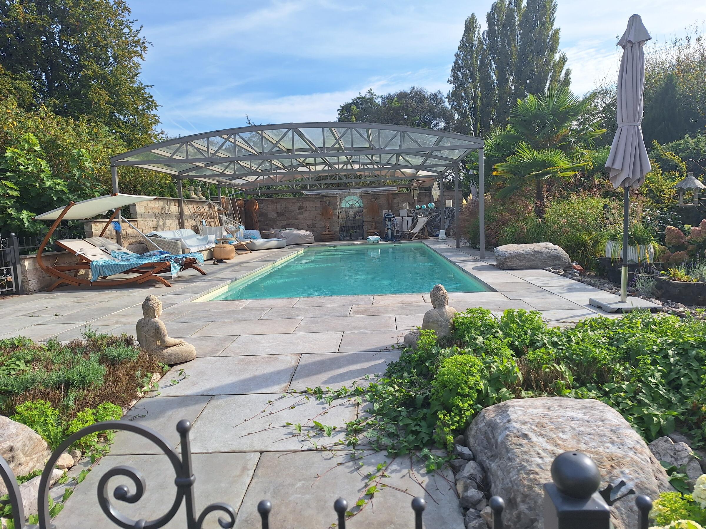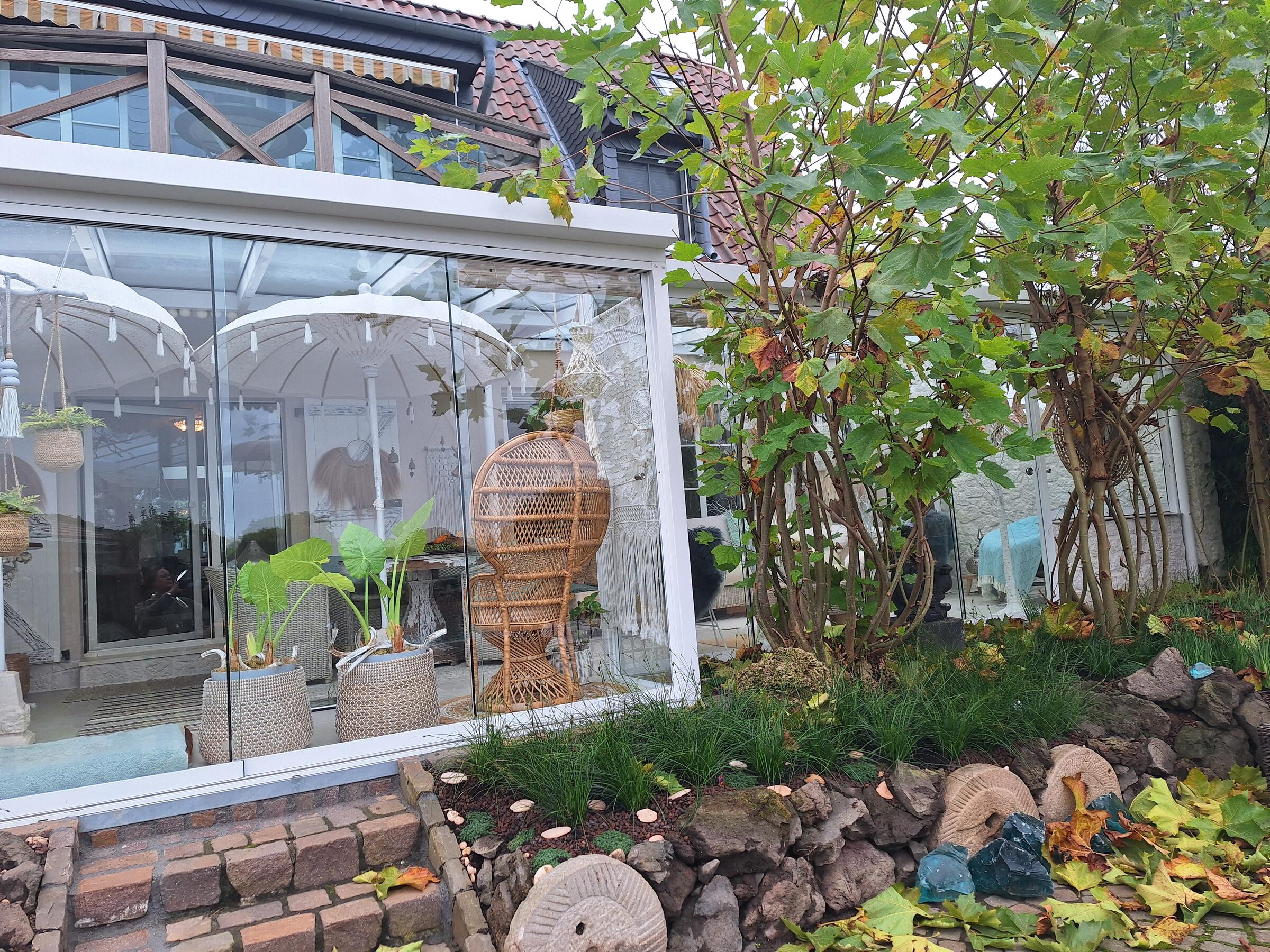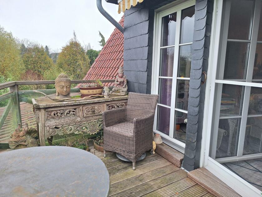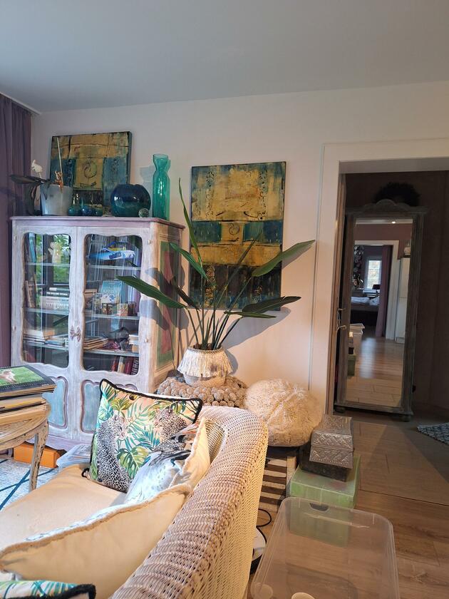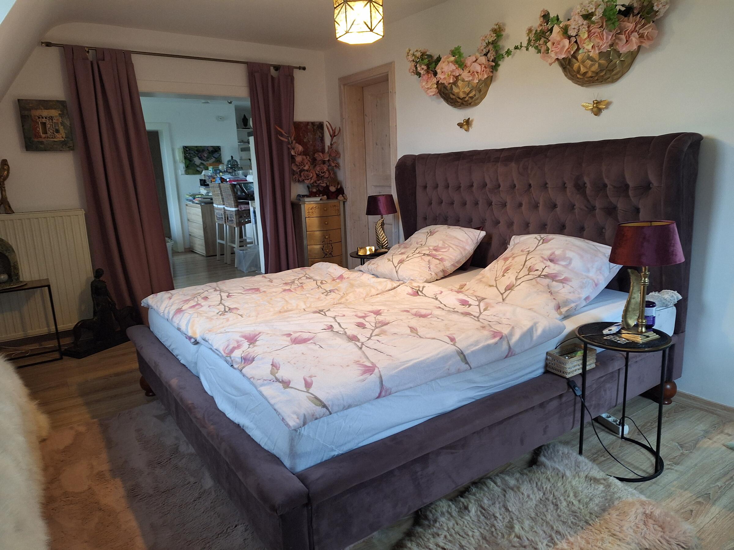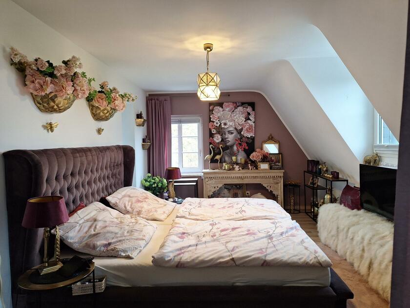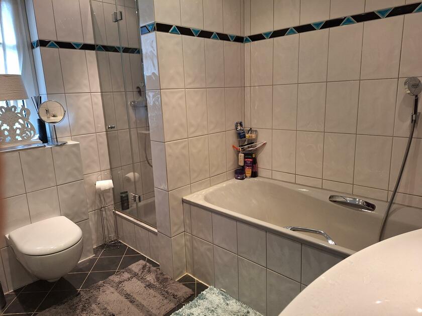 Unser Landhaus befindet sich in einer ruhigen Wohngegend, an einem Landschaftsschutzgebiet und umgeben von Feldern. Durch die teilweise bodentiefen Fenster fällt viel Tageslicht in die Wohnräume. Die Böden der Räume sind gefliest. Die Fenster der Räume können mit Vorhängen und teilweise mit Fensterläden verdunkelt werden. Die Räume dürfen nach Absprache umgestaltet werden. Im Außenbereich stehen der große Garten und der Pool zur Verfügung. Die Auffahrt unseres Grundstückes kann mit Lkw bis zu 7,5 t befahren werden. Mehrere Pkw können ebenfalls auf unserem Grundstück geparkt werden.