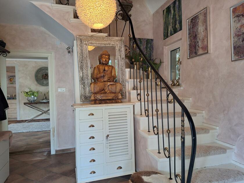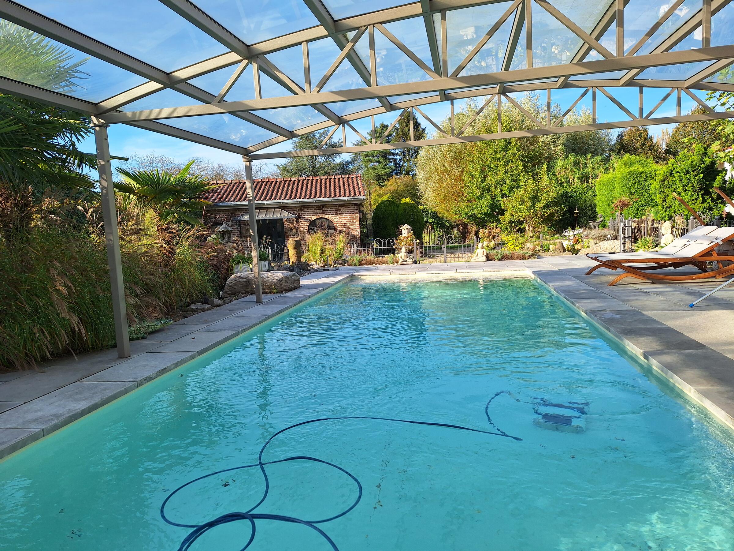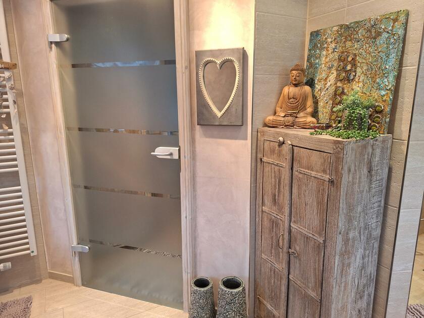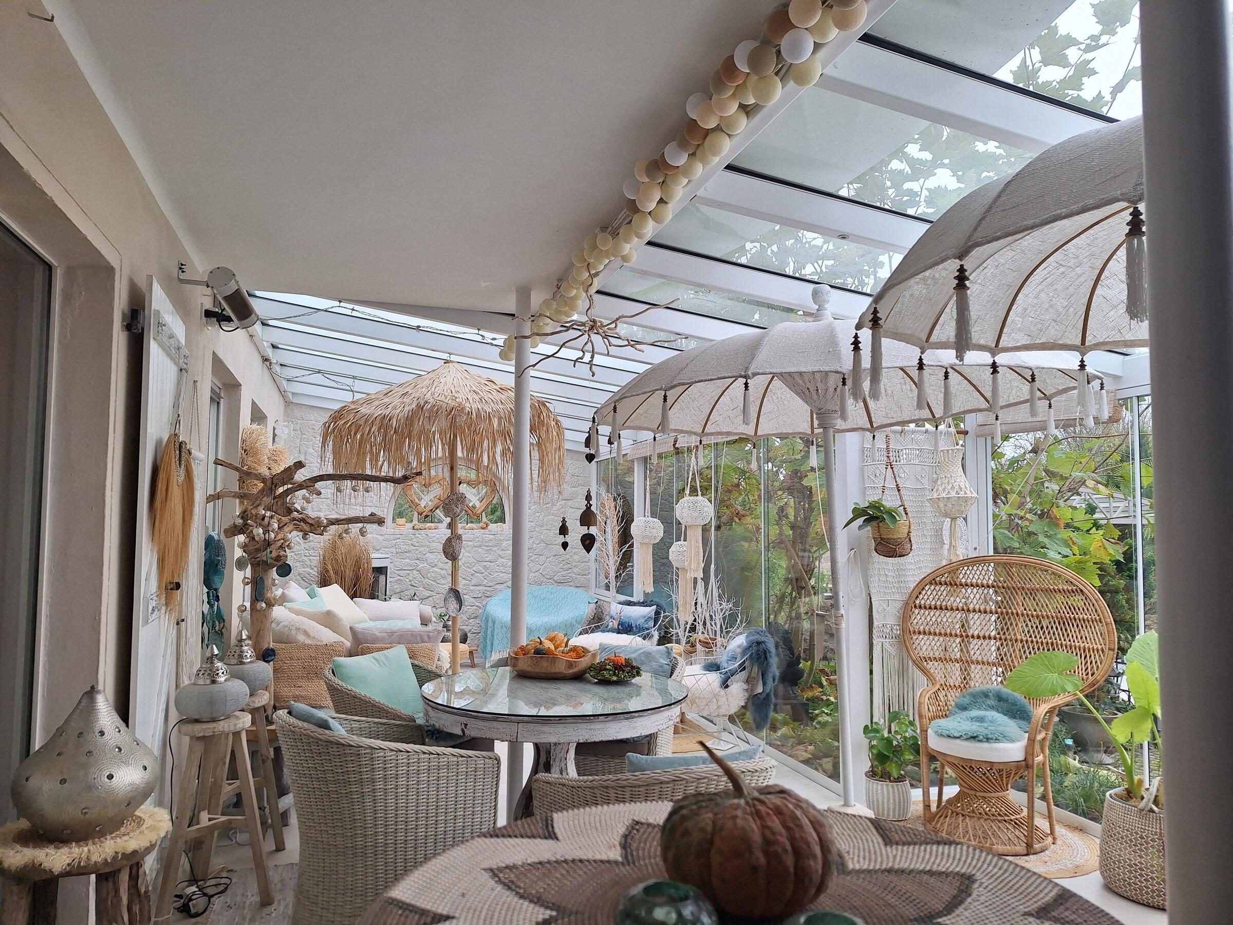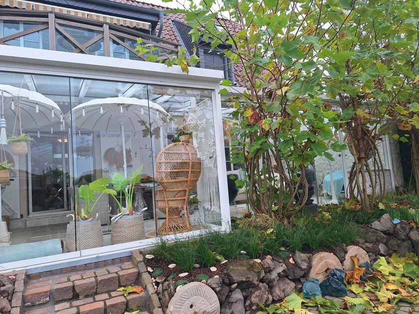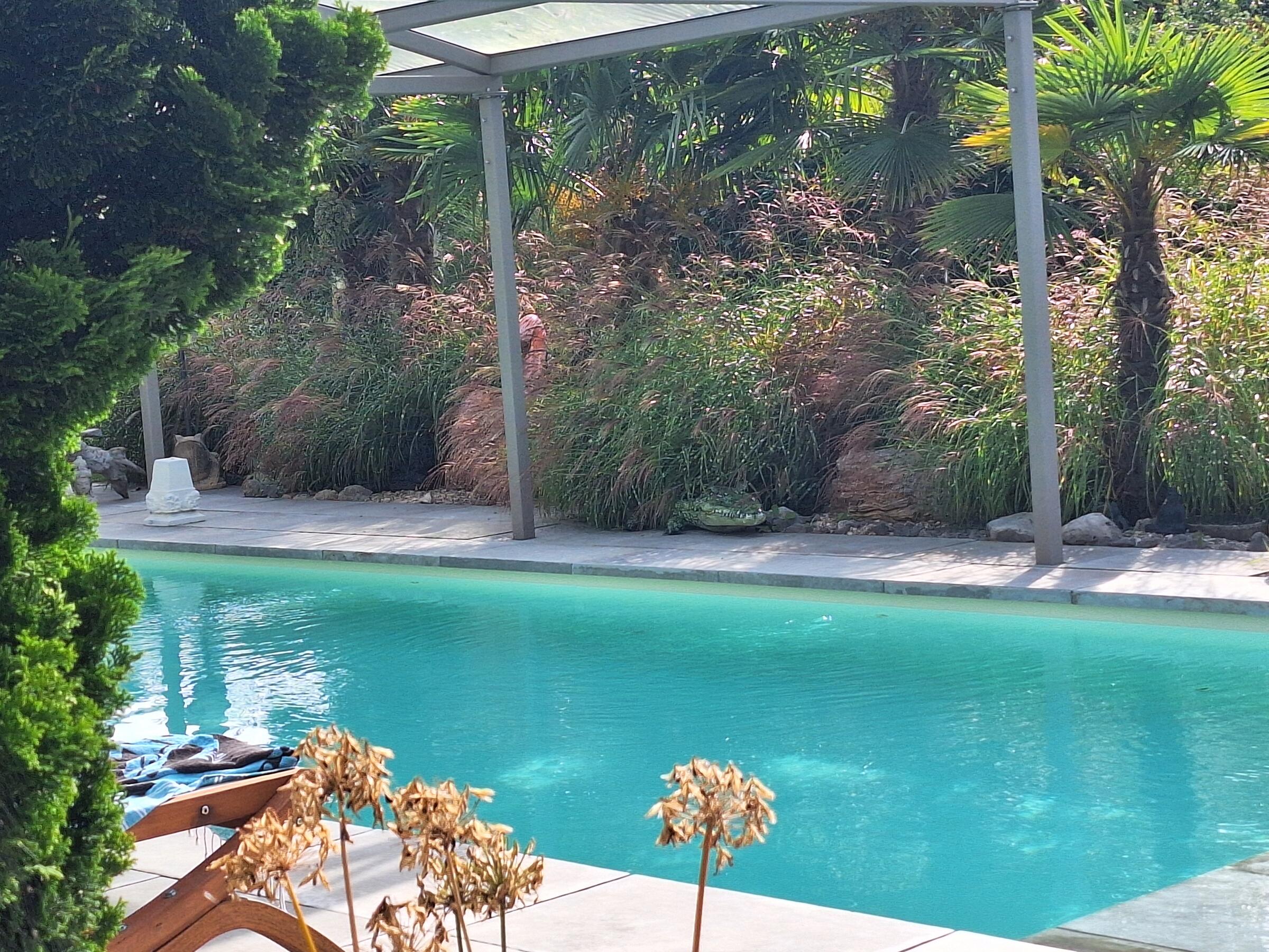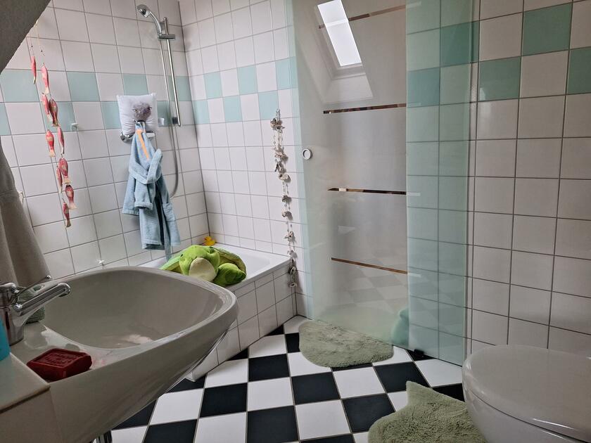 Unser Landhaus befindet sich in einer ruhigen Wohngegend, an einem Landschaftsschutzgebiet und umgeben von Feldern. Durch die teilweise bodentiefen Fenster fällt viel Tageslicht in die Wohnräume. Die Böden der Räume sind gefliest. Die Fenster der Räume können mit Vorhängen und teilweise mit Fensterläden verdunkelt werden. Die Räume dürfen nach Absprache umgestaltet werden. Im Außenbereich stehen der große Garten und der Pool zur Verfügung. Die Auffahrt unseres Grundstückes kann mit Lkw bis zu 7,5 t befahren werden. Mehrere Pkw können ebenfalls auf unserem Grundstück geparkt werden.