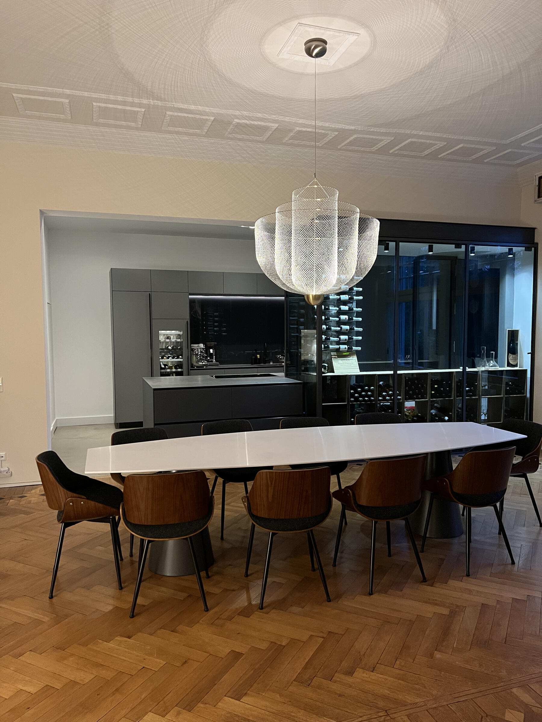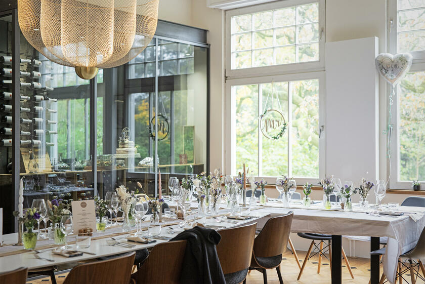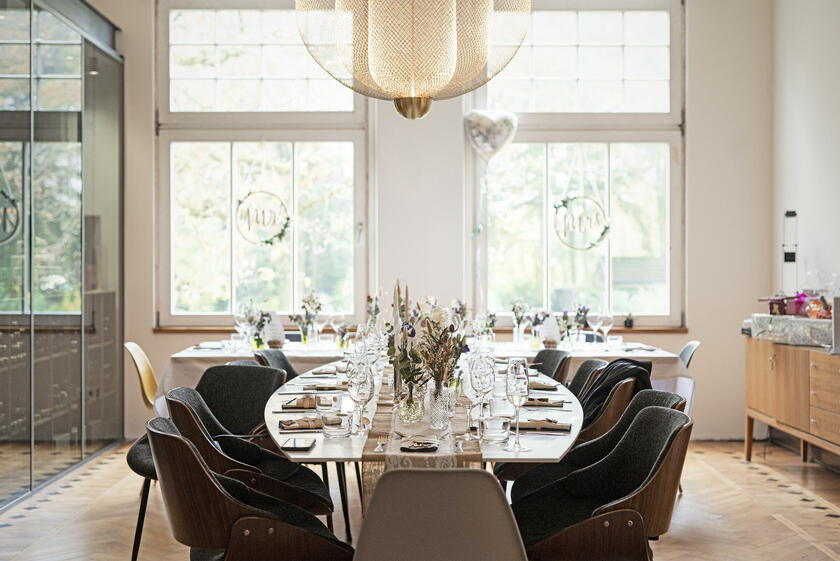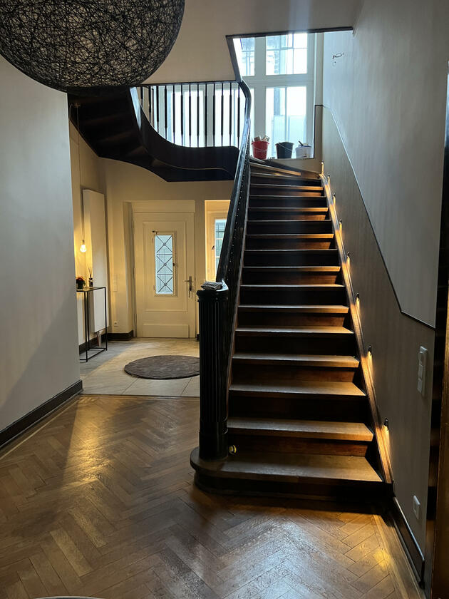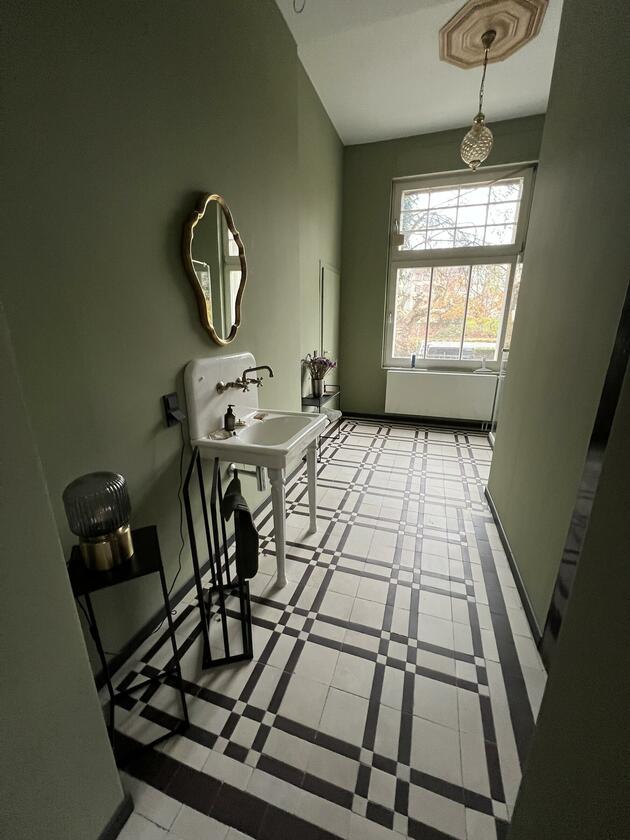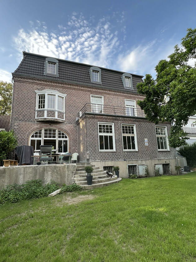 Die kernsanierte ehemalige Fabrikantenvilla wurde in den Jahren 1914 und 1915 erbaut. Der Architekt der Villa war vermutlich Friedrich August Breuhaus de Groot. Für Produktionen steht das ca. 185 m² große Erdgeschoss der Villa zur Verfügung. Das Haus besticht durch seine historischen, intarsienverzierten Holzböden und Holztüren sowie historischen Stuckdecken und zugleich durch eine moderne Einrichtung mit einer Vielzahl von Designklassikern. Die großzügige Küche ist zum Esszimmer hin offen. Als extravaganter Raumtrenner wurde ein begehbarer Weinlagerschrank verbaut. An das Esszimmer schließen sich das durch Schiebetüren abtrennbare Wohnzimmer sowie das Fernsehzimmer an. Zudem steht ein Arbeits-/Gästezimmer, ein Badezimmer sowie ein großzügiger Eingangsbereich und eine kleine Garderobe zur Verfügung.