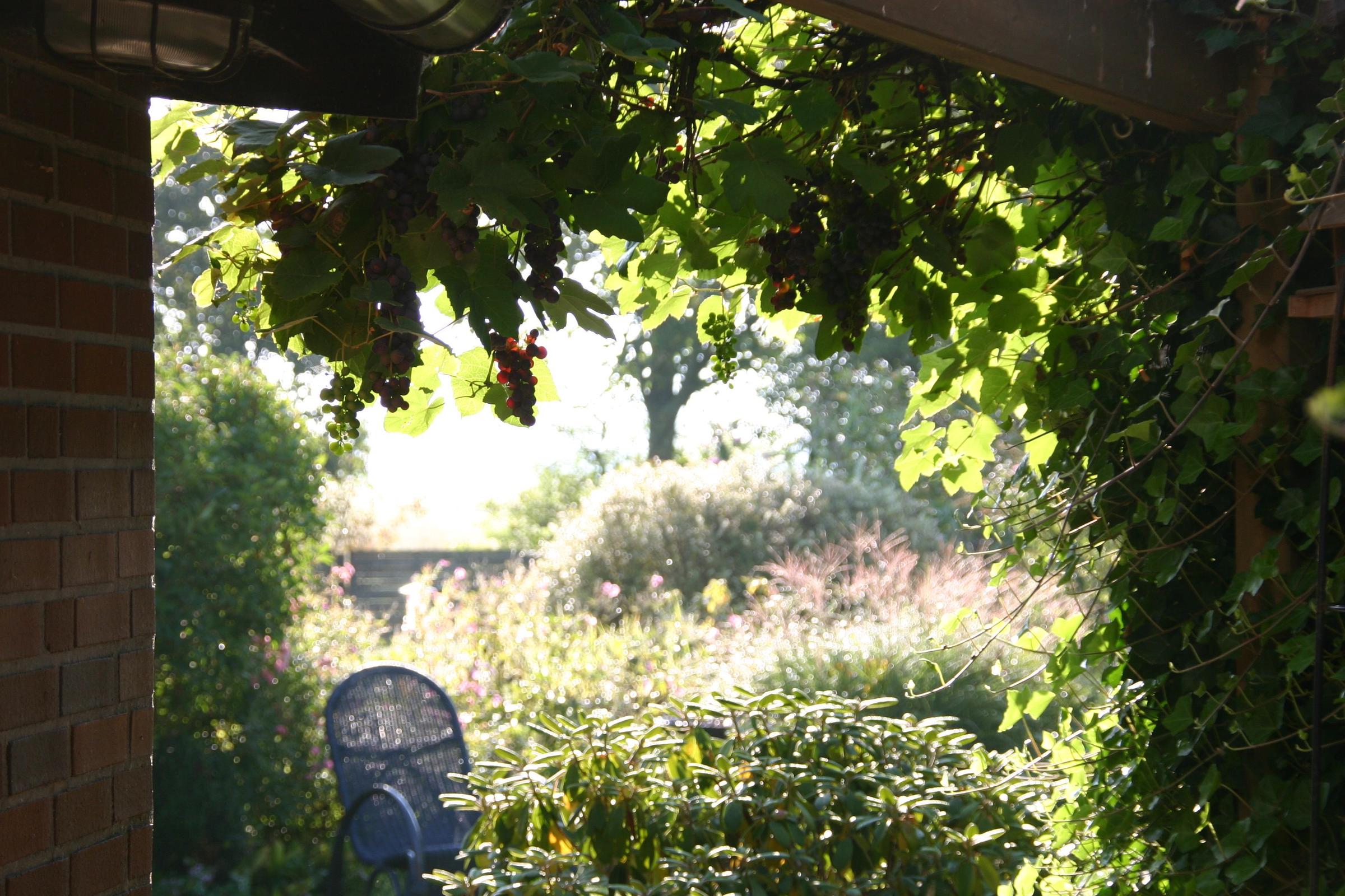 Vom Wohnzimmer aus kommt man auf eine Terrasse, hinterm Schlafzimmer nach Osten gerichtet gibt es eine kleine, überdachte Sitzgelegenheit. In der Hofeinfahrt wurde ein Carport für ein Fahrzeug errichtet. Hintereinander passen zwei Autos problemlos und evtl. sogar ein drittes auf den Hof.