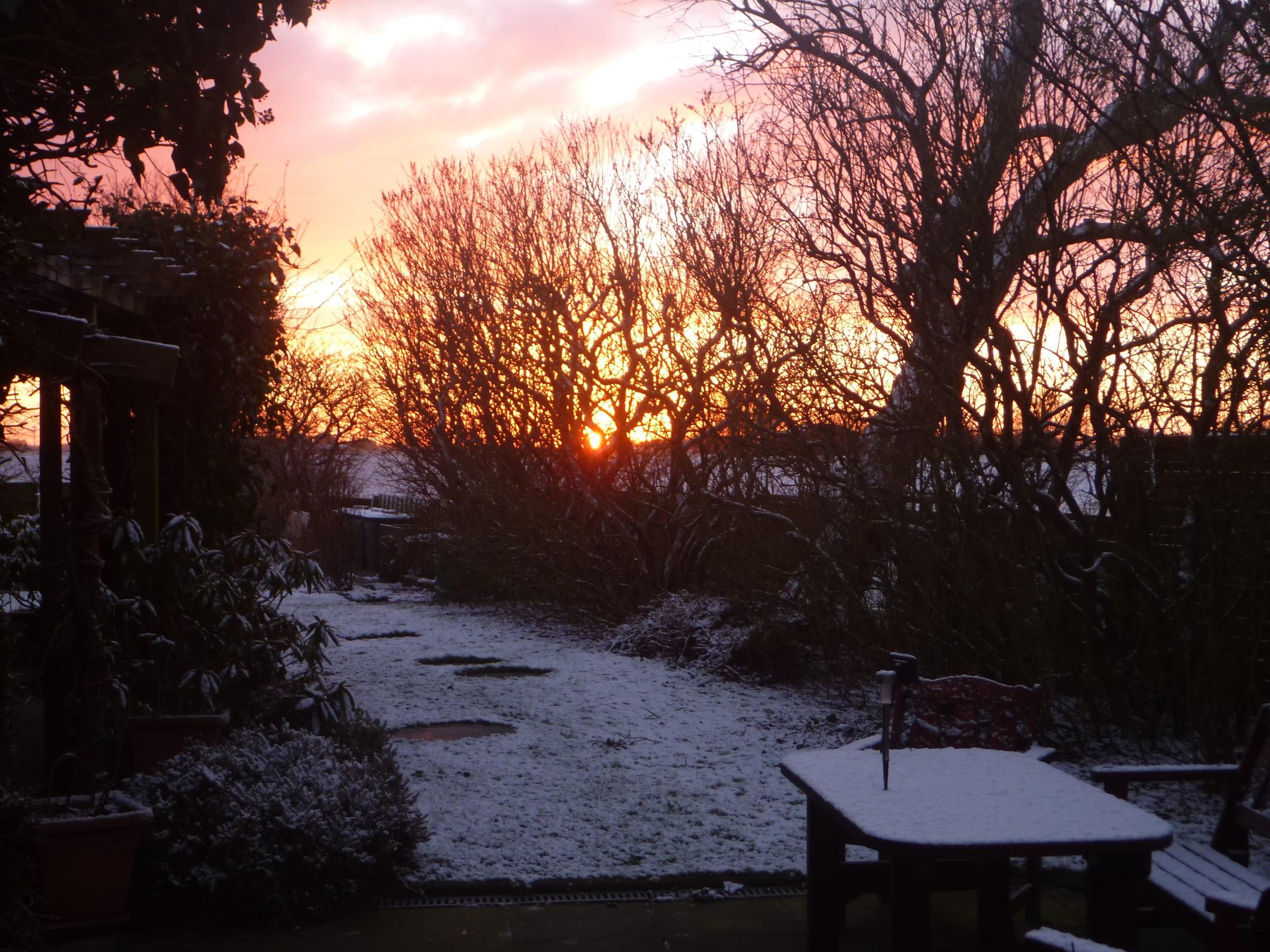 Die Straße liegt direkt am Deich und ist relativ schmal. Es gibt drei unmittelbare Nachbarhäuser, kaum Verkehr und rundherum Felder und Salzwiesen.